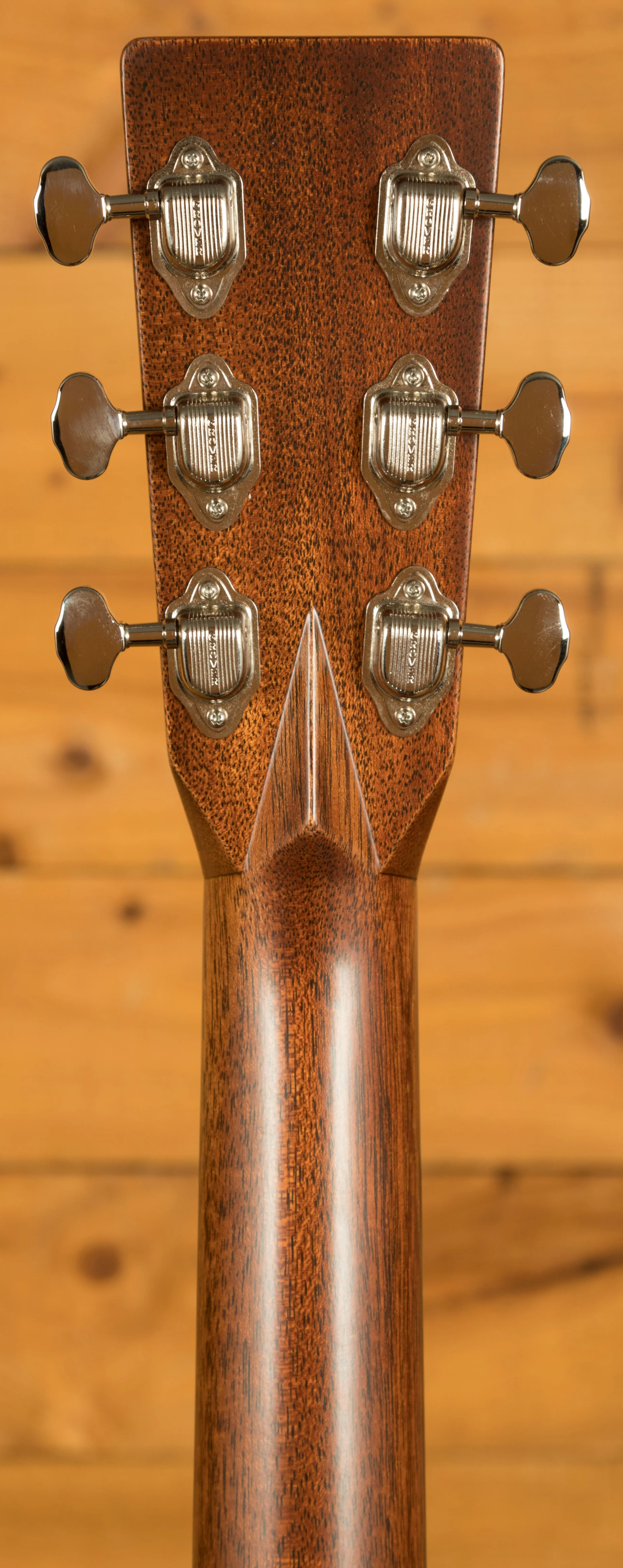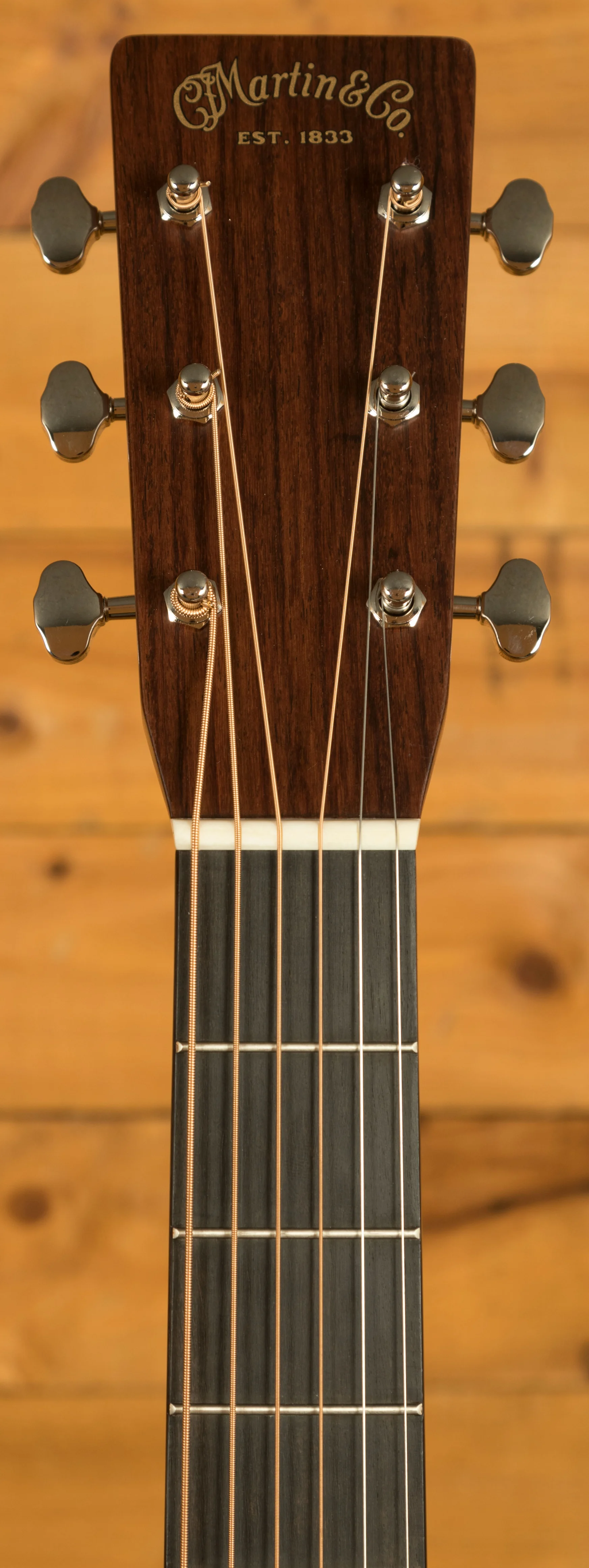 Further enhancing the guitar's performance are the nickel enclosed gear tuners, exclusive to Martin. These tuners provide precise and stable tuning, ensuring that the guitar stays in tune even during aggressive playing. The ebony fingerboard, adorned with abalone diamond and square inlays, not only looks stunning but also offers a smooth and responsive playing surface.