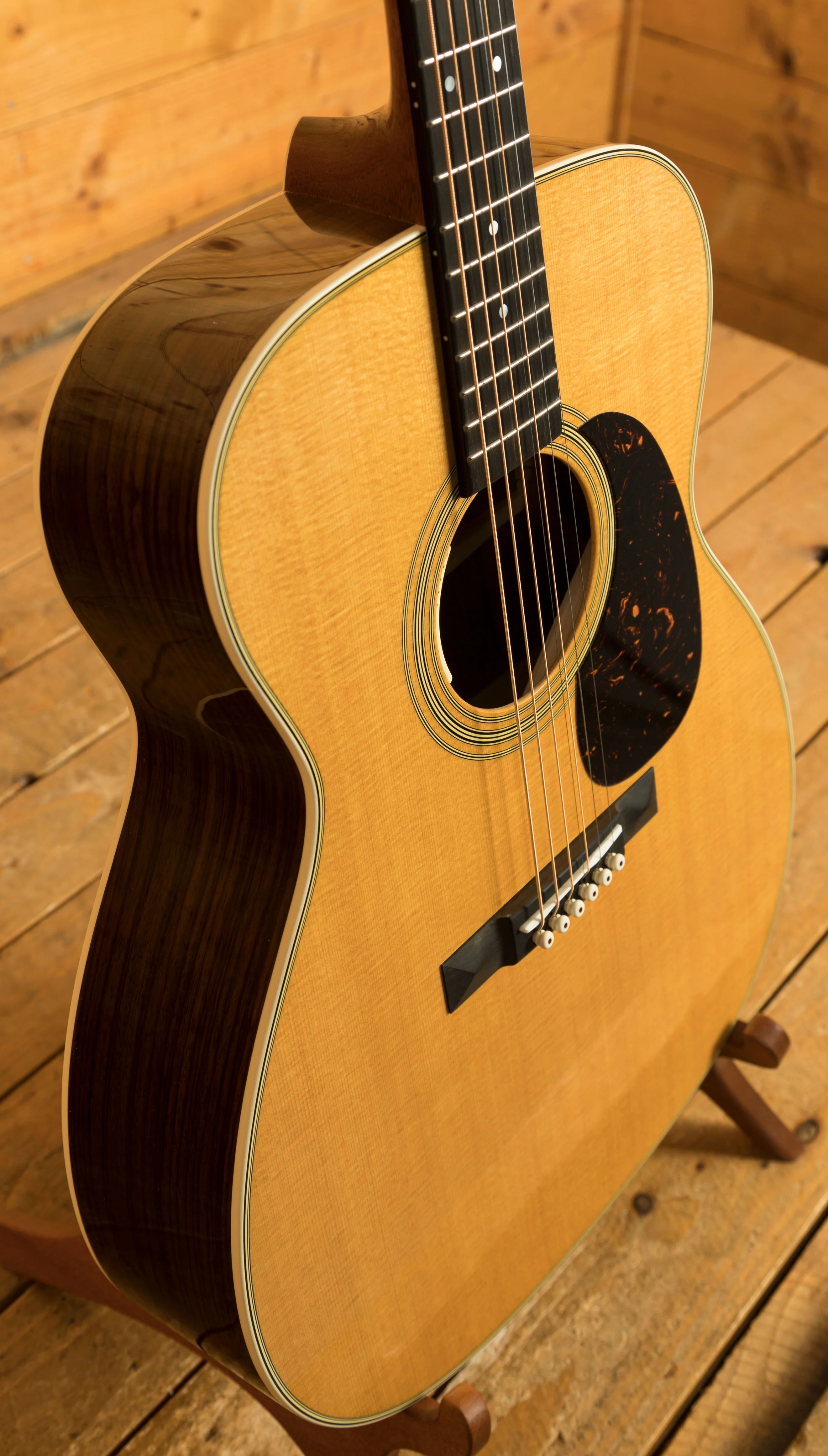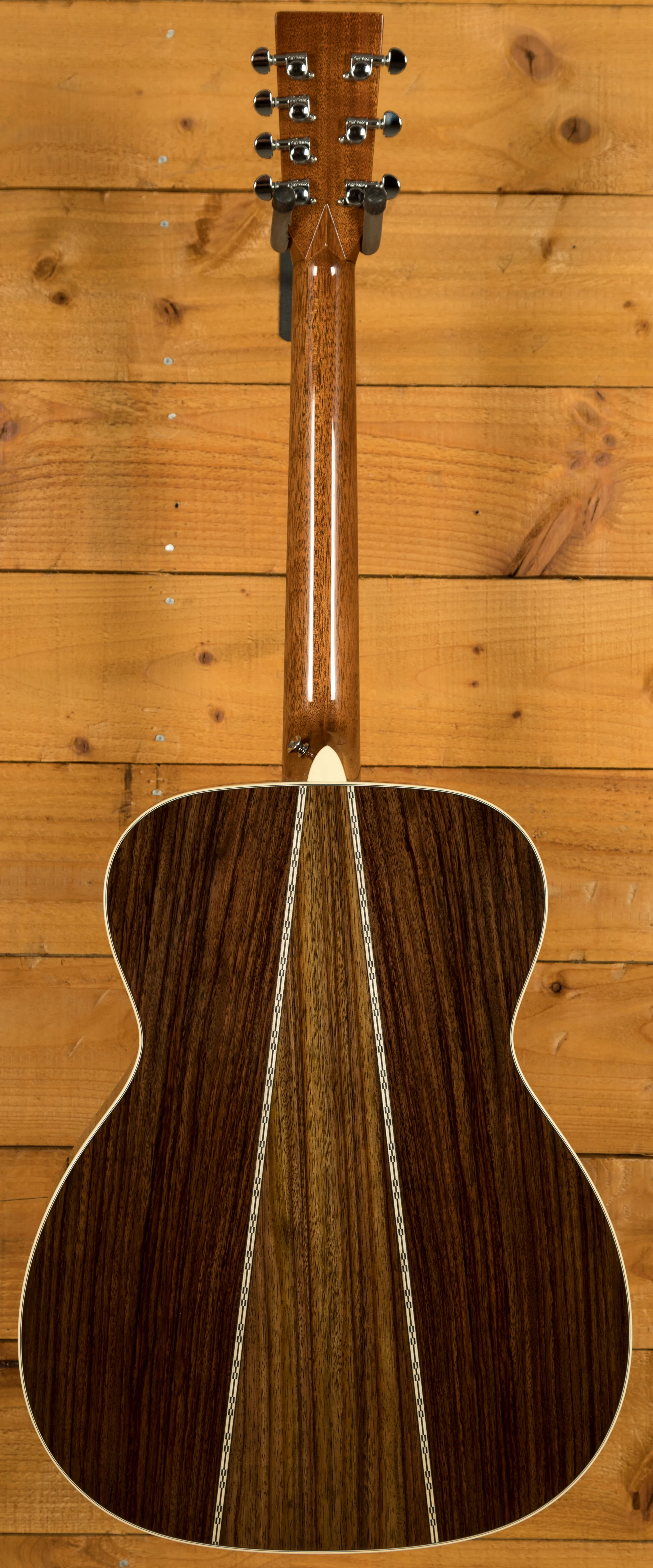 The M-7's standard taper mahogany neck and full-thickness profile give it a distinct feel, enhancing playability for complex chords and smooth transitions. An ebony fingerboard with a 25.4" scale length and 1 11/16" nut width offers an ideal balance between comfort and precision, while the Style 28 inlays add an elegant touch.