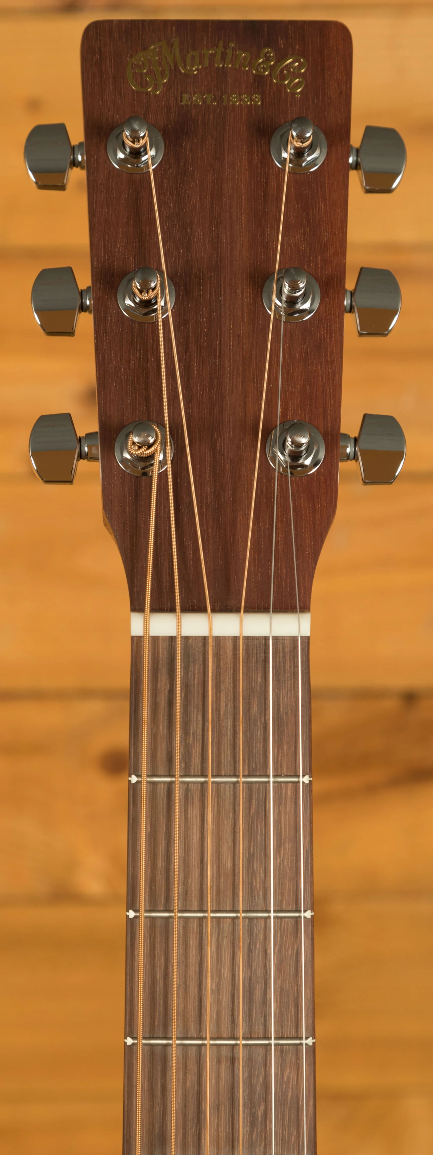 Additional features like chrome enclosed gear tuning machines, a white Tusq saddle, and a faux tortoise pickguard contribute to the guitar's professional look and reliable performance. The Martin 00-10E comes with a soft-shell case, ensuring it's ready to travel and protect your instrument in any environment.
