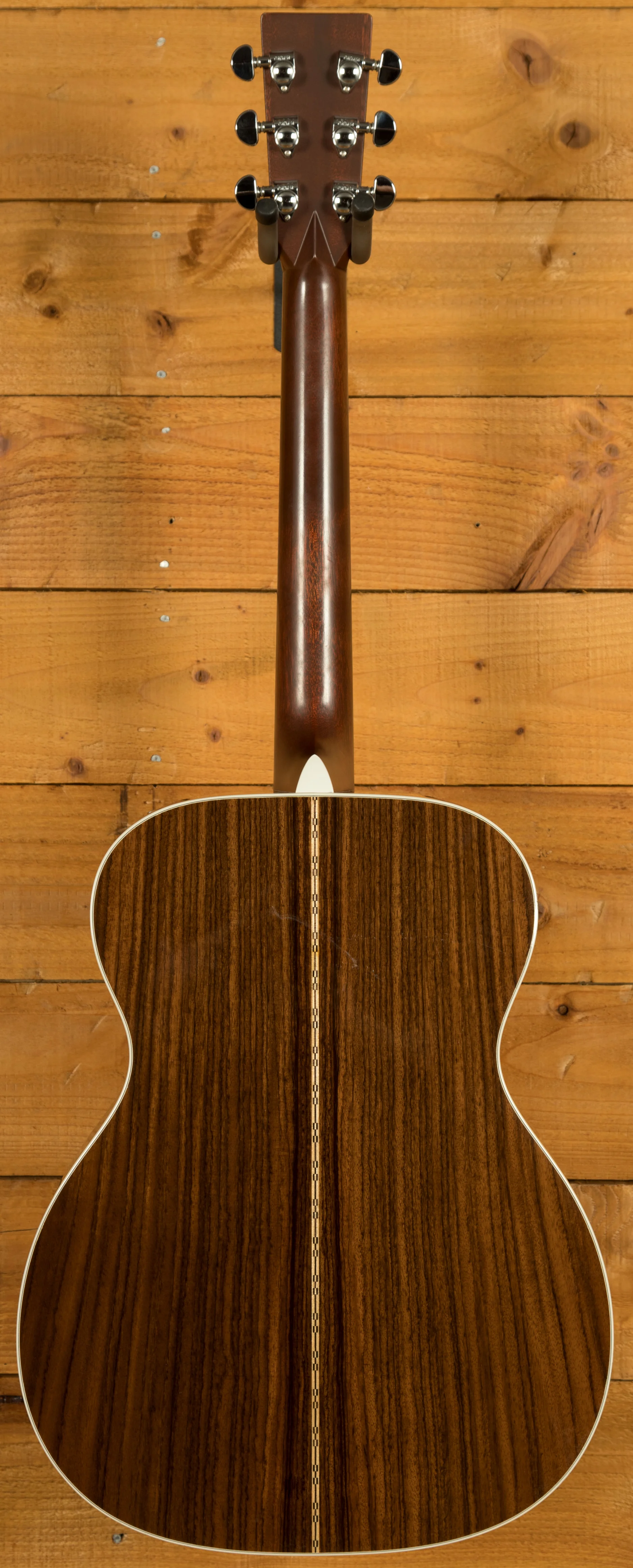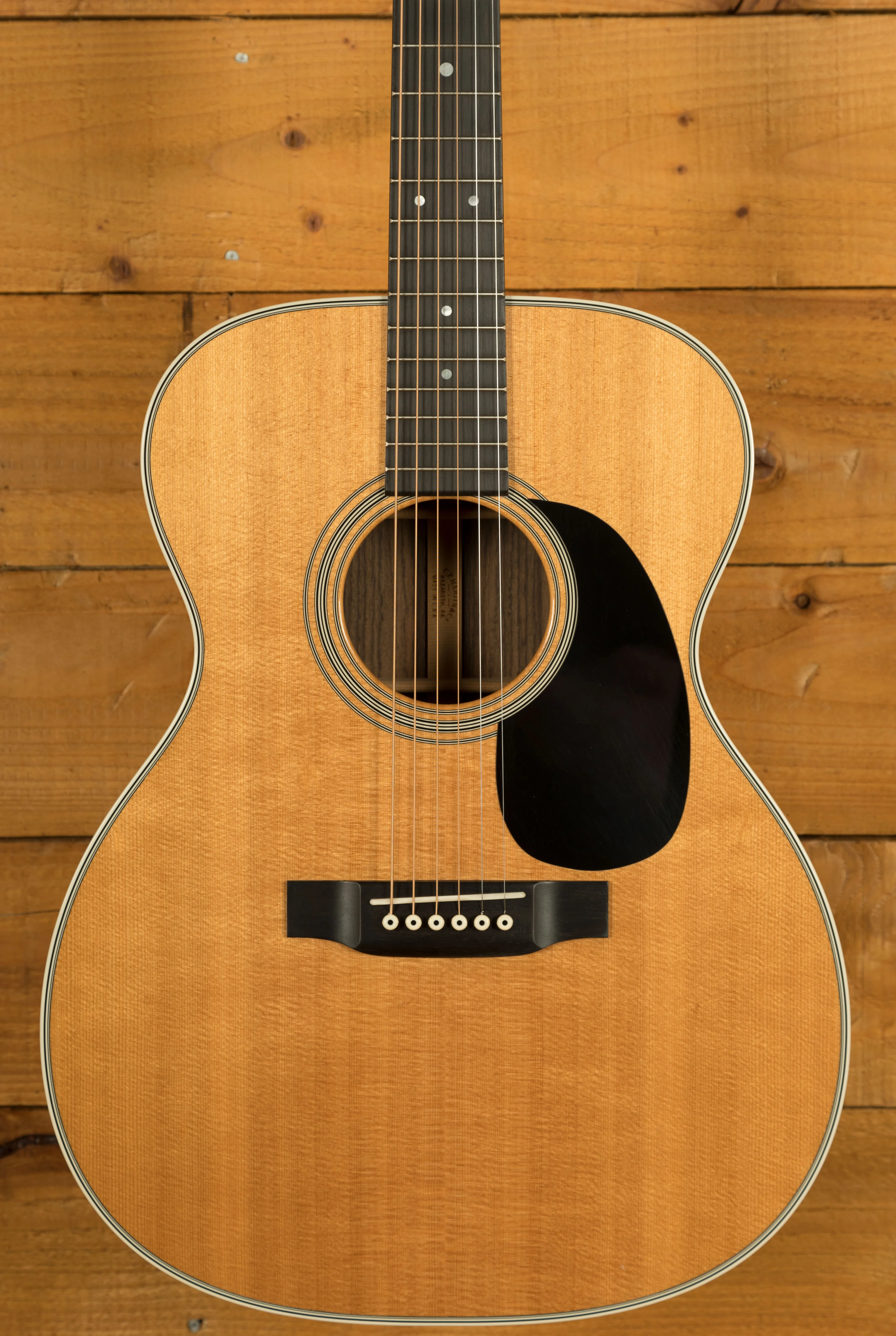 The Martin 000-28 is one of the most versatile models in the Standard Series. Its 000-14 fret body shape offers a comfortable feel for extended playing sessions while producing a balanced tonal response across the low, mid, and high frequencies. The solid Sitka spruce top with Standard "X" bracing provides excellent projection and responsiveness, making it equally suitable for fingerstyle, flatpicking, or strumming. The solid East Indian rosewood back and sides contribute warmth, clarity, and sustain, while the shorter 24.9" scale length reduces string tension for smoother playability and easier fretting. Premium components such as a compensated bone saddle, ebony fingerboard, and low-profile neck shape enhance intonation, comfort, and precision.