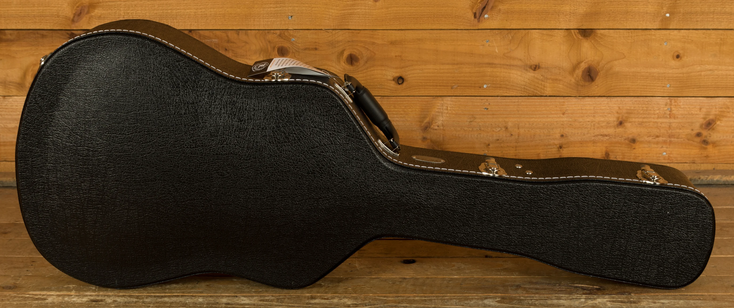 The D-18 also includes premium appointments, such as an ebony fingerboard, bridge, and bridge pins, paired with elegant abalone dot inlays for a timeless and understated style. Available in gloss or satin finishes, the guitar is built to both look and perform exceptionally well. Every D-18 comes with a durable hardshell case to protect your investment, making it a reliable choice for musicians of all levels.