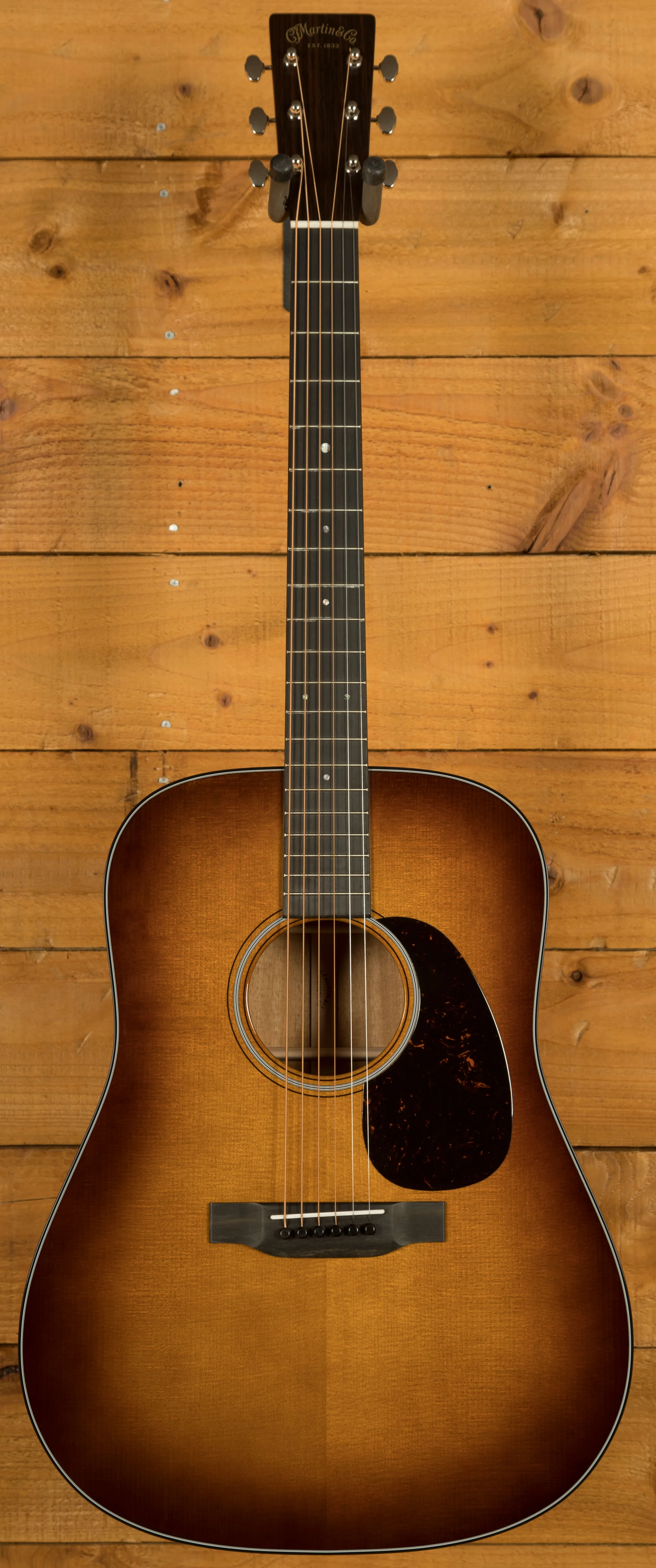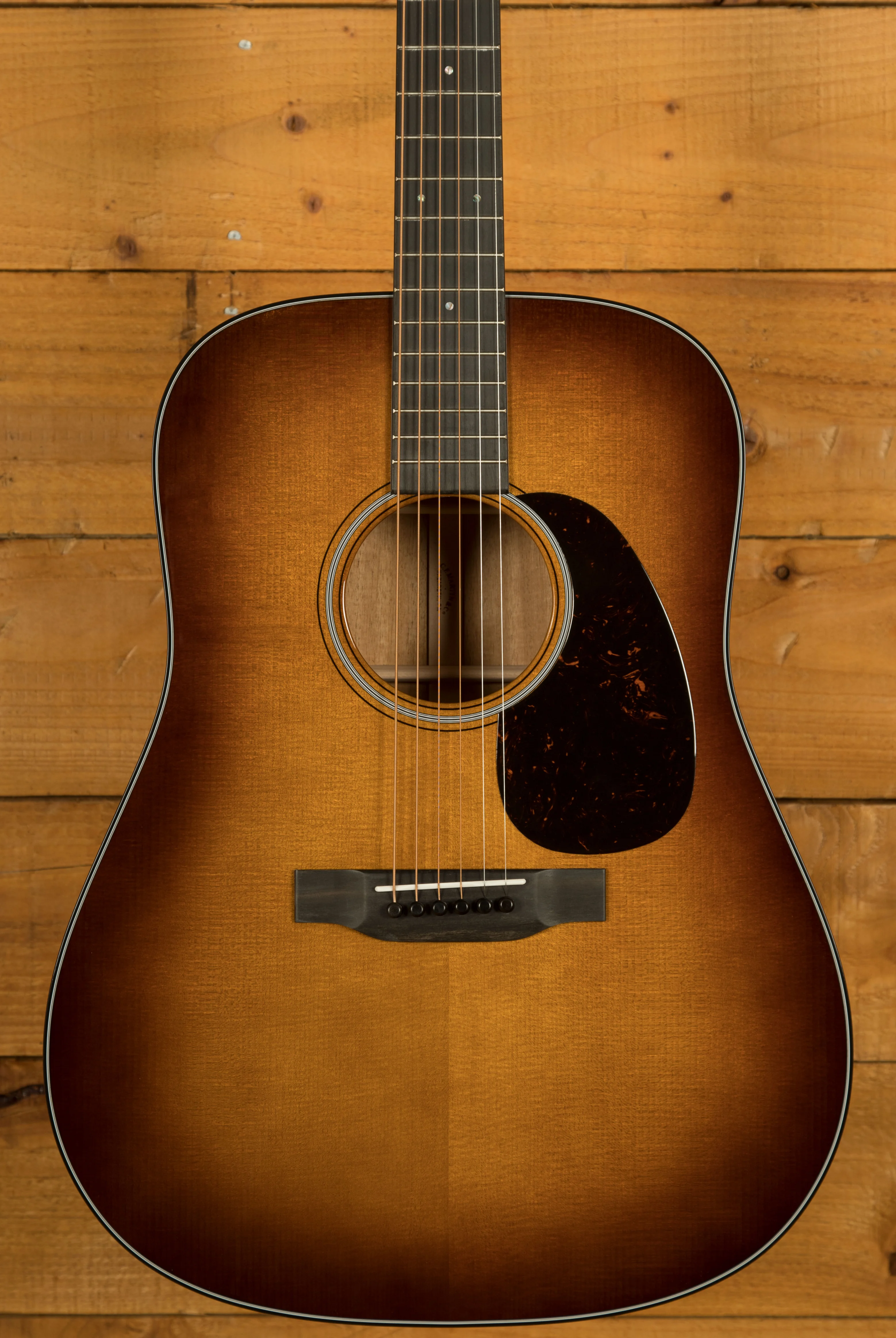 The Martin D-18 is a cornerstone of the Martin lineup, offering nearly a century of reliable performance and exceptional tone. Its Dreadnought body shape is designed for maximum projection and a bold, powerful voice, with a strong bass response and balanced tonal clarity. Crafted from a solid Sitka spruce top and solid mahogany back and sides, this guitar delivers a rich and dynamic sound that excels in a wide range of genres, from folk to bluegrass and beyond.