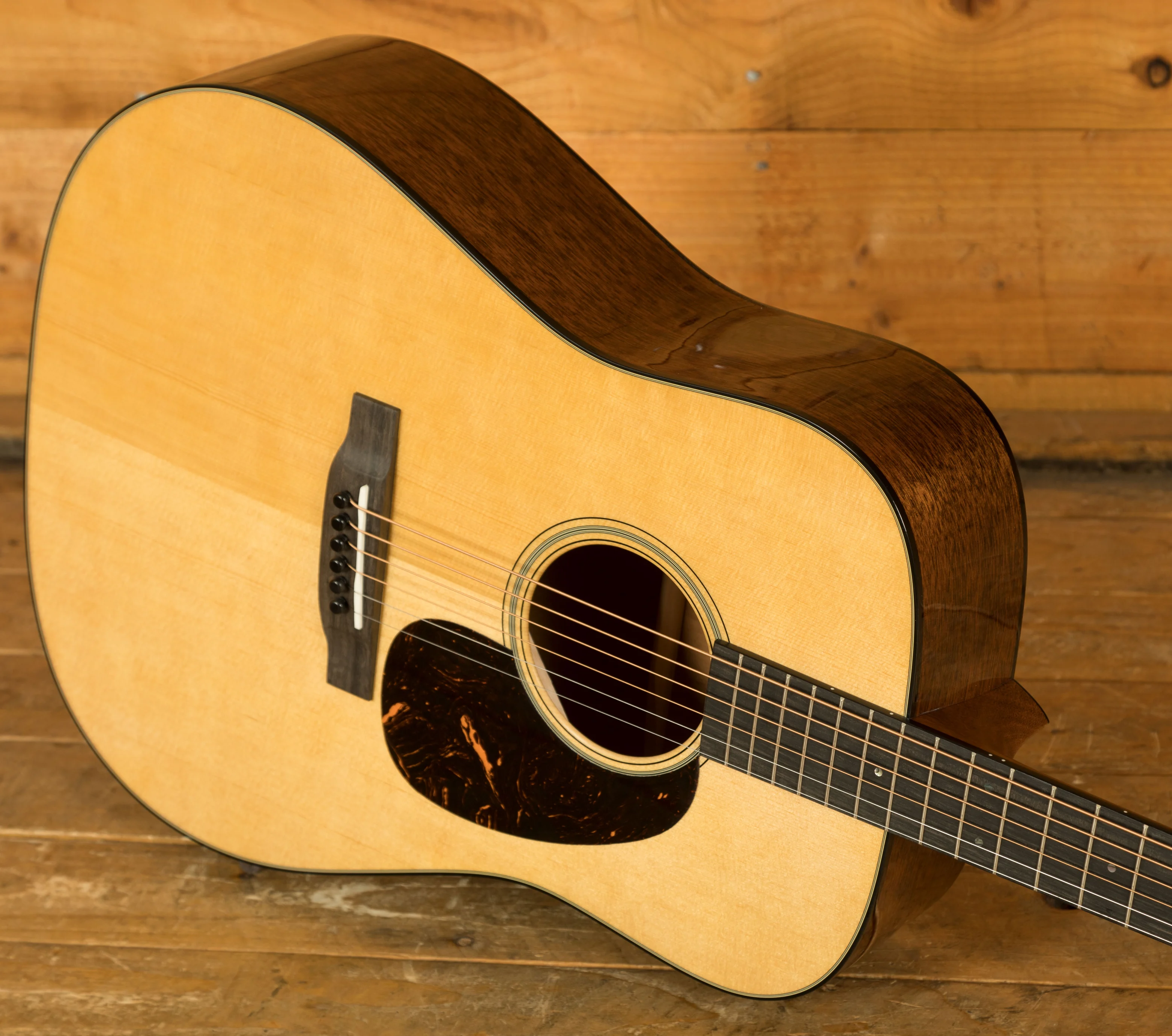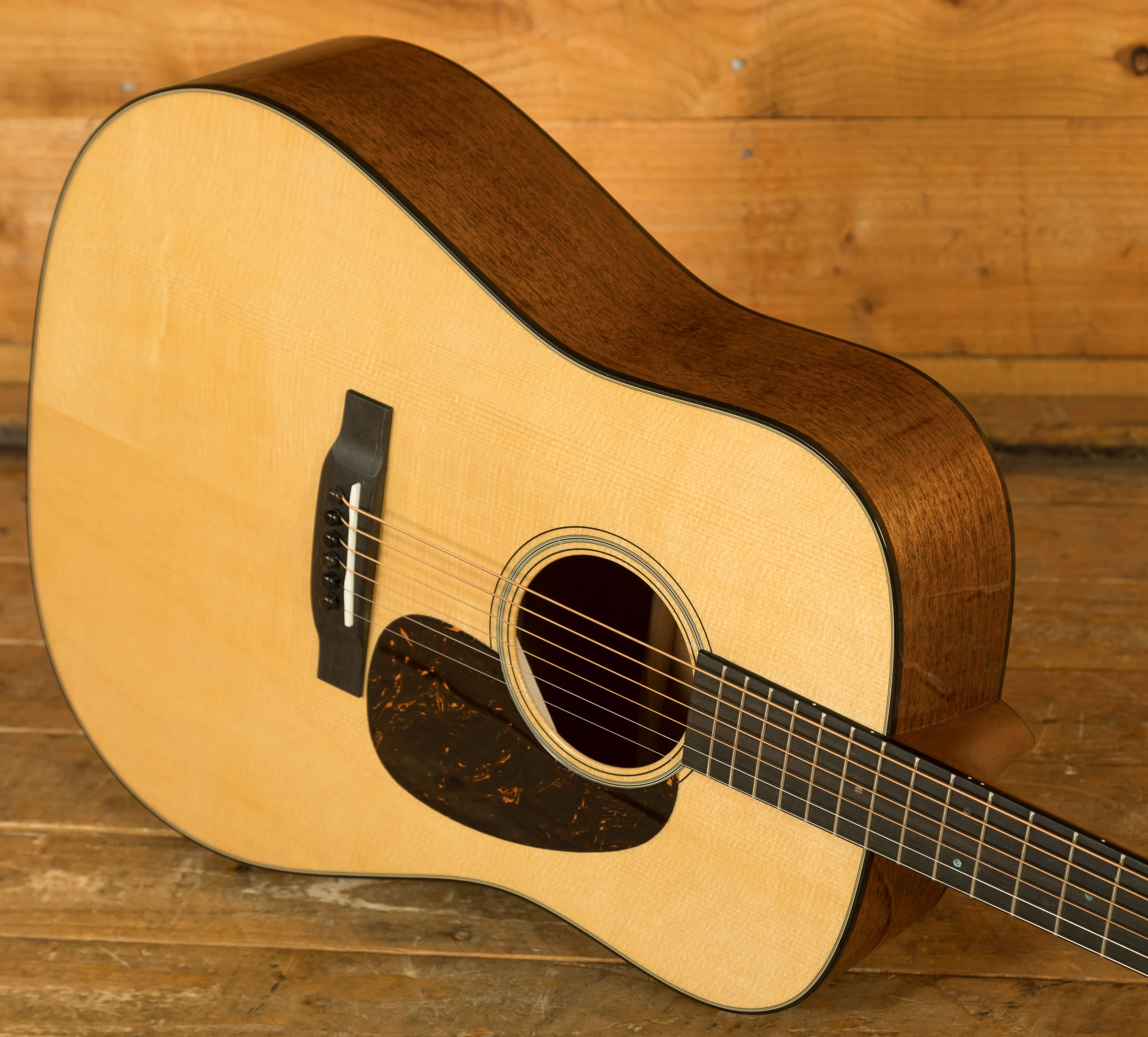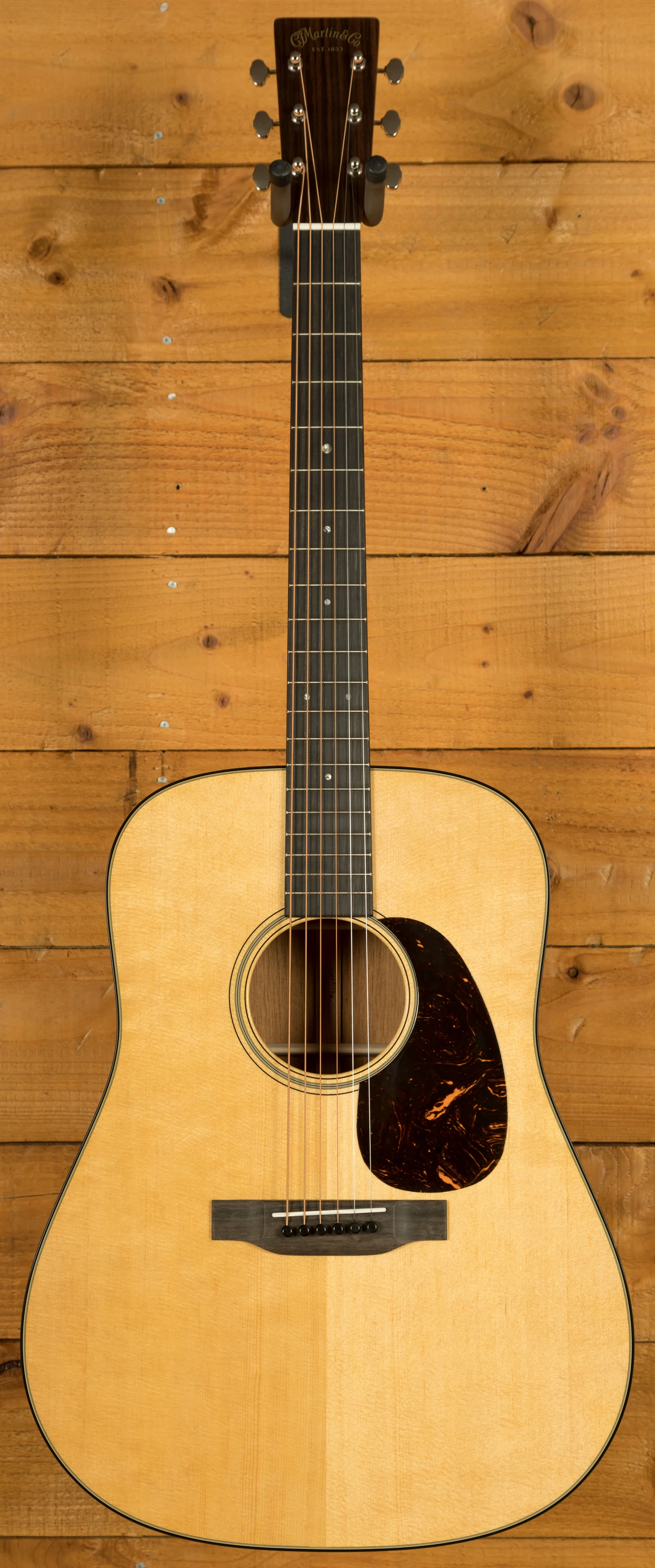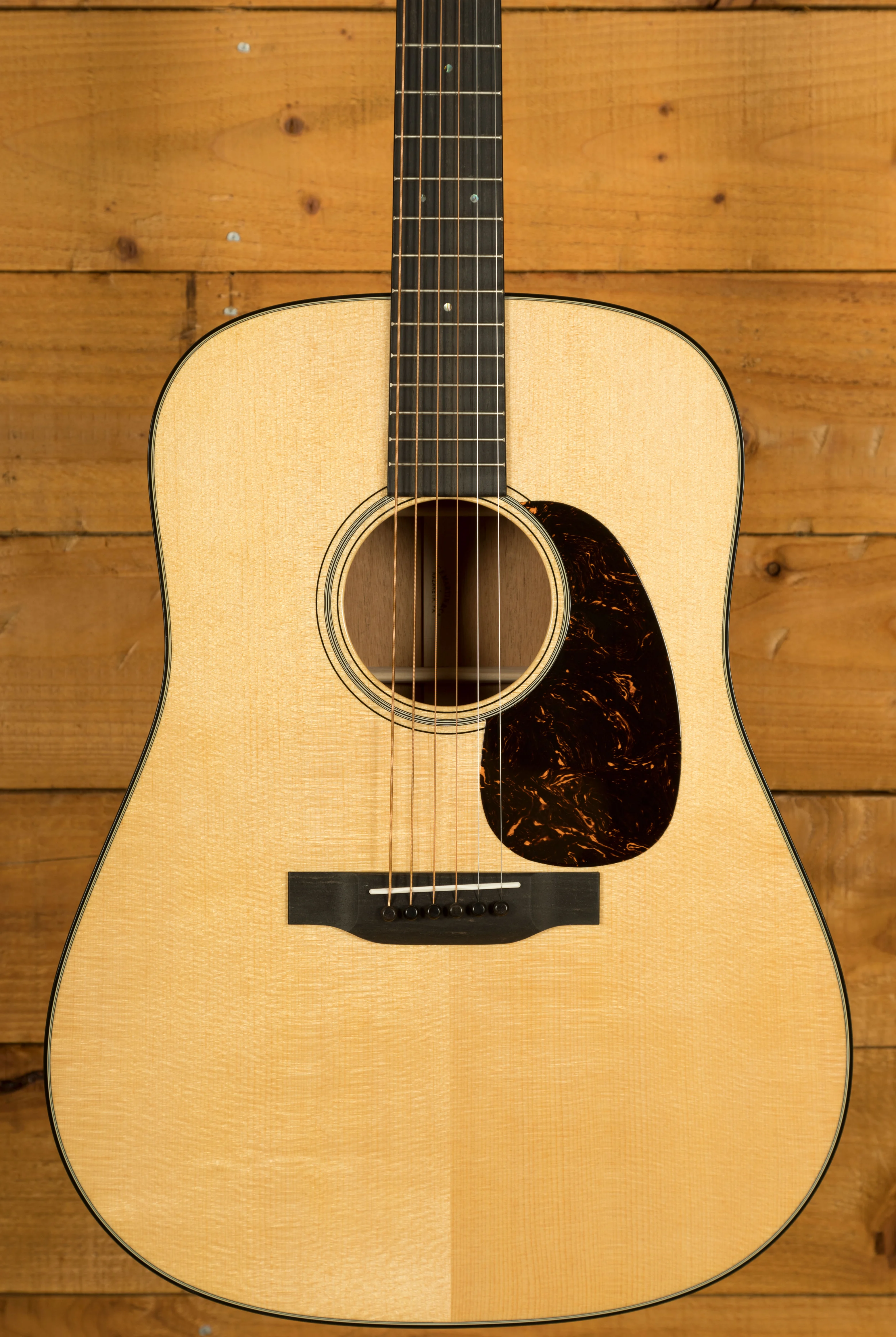 The D-18 features a satin-finished neck with a Golden Era (GE) Modified Low Oval profile and high-performance taper, designed to provide superior comfort and playability. The 25.4" scale length and 1 3/4" bone nut ensure smooth, precise fretting and excellent string spacing, while the compensated bone saddle improves intonation for consistent tuning and performance. These features make the D-18 an ideal choice for both studio recordings and live performances.