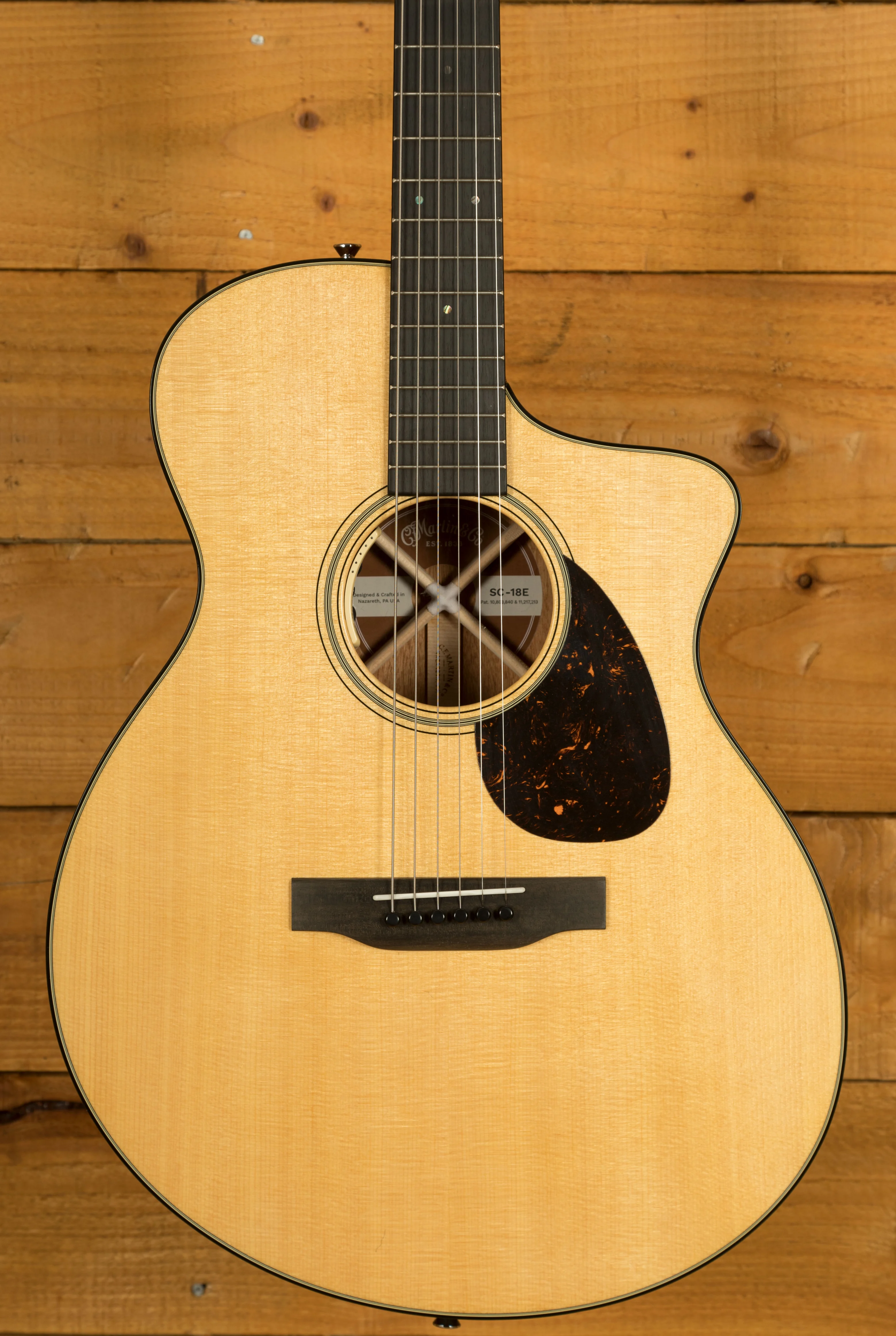 In the realm of acoustic guitars, Martin has consistently stood as a beacon of excellence, marrying innovation with tradition. The latest addition to their illustrious lineup, the SC-18E, seamlessly weaves together modern playability and classic aesthetics, embodying the perfect synergy of technology and timeless style. At the heart of this masterpiece lies the Sure Align neck system, a patented feature that facilitates effortless playing throughout the entire neck. Complementing this innovation is the low-profile velocity satin neck barrel, providing a comfortable grip for guitarists. The internal soundboard recurve, another proprietary element, enriches the bass response, elevating the SC-18E's tonal capabilities. Crafted with meticulous attention to detail, the guitar boasts a solid spruce top paired with solid mahogany back and sides, delivering a harmonious blend of volume, bright treble, and punchy midrange - a signature Martin sound. The gloss finish adds a touch of sophistication, while the inclusion of an ebony fingerboard and bridge, nickel open gear tuners, and LR Baggs Anthem electronics ensures a premium playing experience. Strung with Luxe Martin Kovar strings, the SC-18E comes encased in a moulded hardshell, safeguarding its exquisite craftsmanship. In essence, the SC-18E is not just an instrument; it's a testament to Martin's commitment to excellence, offering musicians a guitar that marries cutting-edge technology with the enduring allure of classic design.