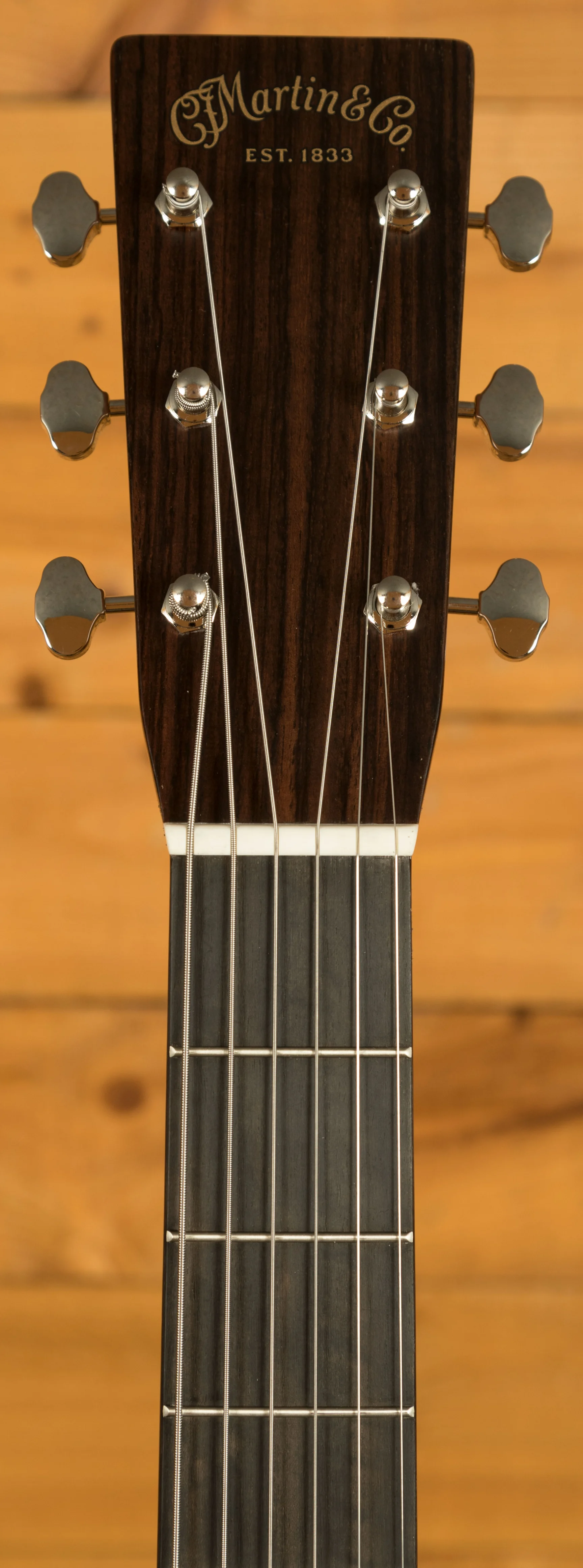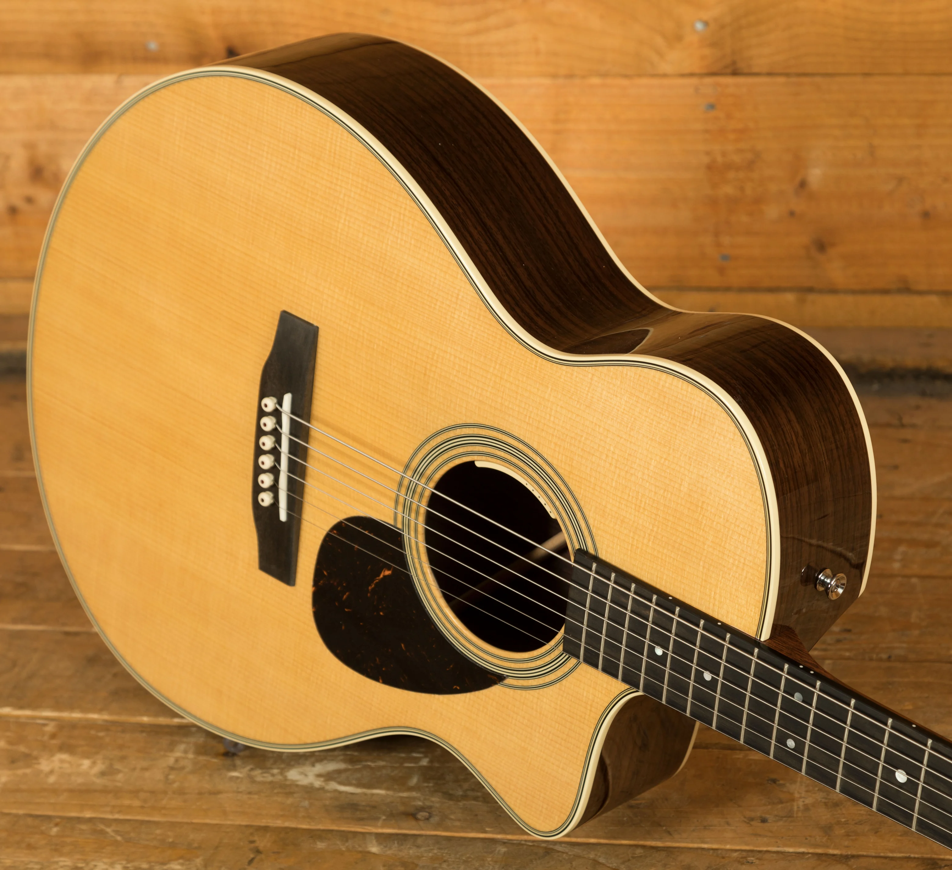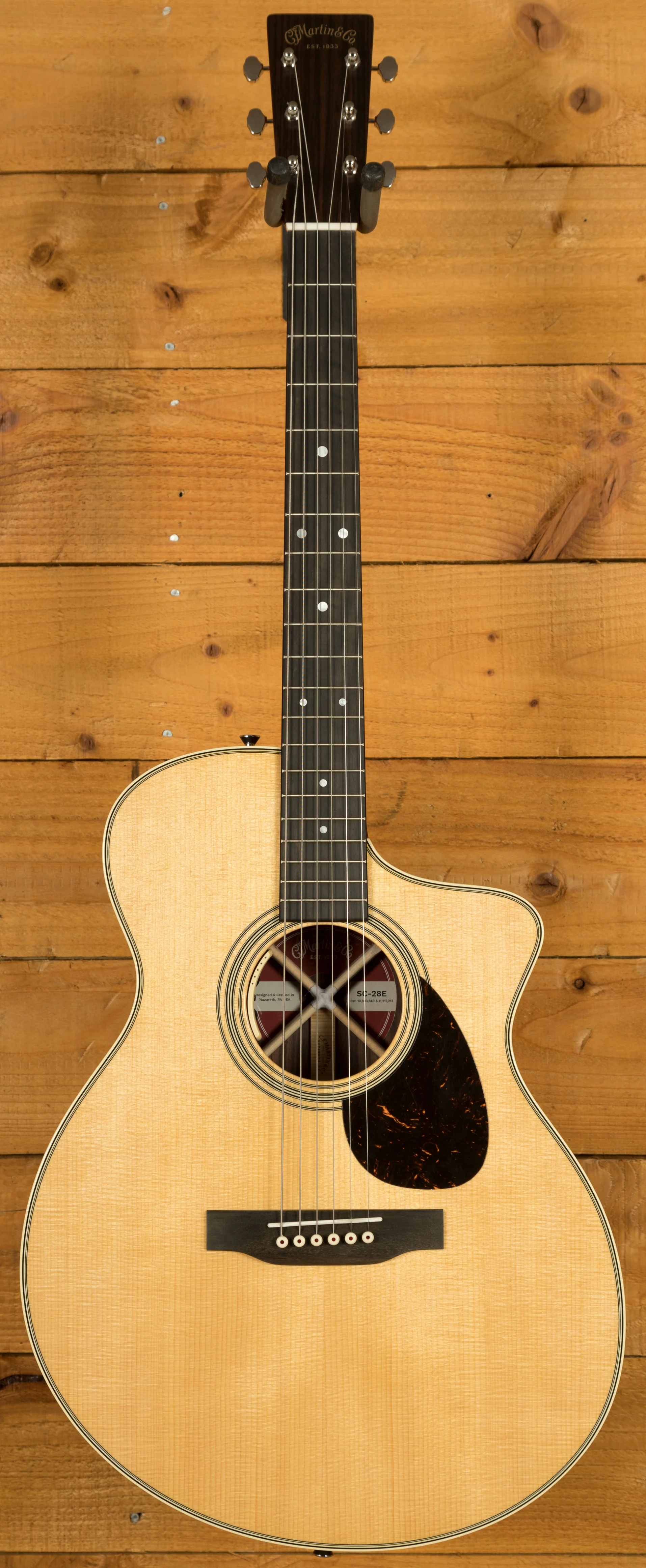 In the ever-evolving world of acoustic guitars, the Martin SC-28E stands as a testament to the seamless fusion of modern playability and timeless aesthetics. This exquisite instrument marries cutting-edge technology with the iconic style and tone that defines the Martin Standard Series. One of its standout features is the patented Sure Align neck system, designed to facilitate effortless playing throughout the entire neck. Complementing this innovation is the low-profile velocity satin neck barrel, ensuring a comfortable feel in the hands of any guitarist. The internal soundboard recurve takes the SC-28E a step further by enhancing bass response, adding depth to its already impressive sonic profile. The guitar boasts a gloss finish, showcasing a solid spruce top paired with solid and resonant East Indian rosewood back and sides. This combination delivers a classic Martin sound characterised by deep bass and rich overtones. The ebony fingerboard and bridge, antique white binding, nickel open gear tuners, and LR Baggs Anthem electronics contribute to the overall premium quality of the SC-28E. Strung with Luxe Martin Kovar strings, it ensures a consistently exceptional playing experience. As a finishing touch, this exceptional instrument comes complete with a moulded hardshell case, providing both protection and portability. The Martin SC-28E is not just a guitar; it's a masterpiece that seamlessly blends the best of tradition and innovation.