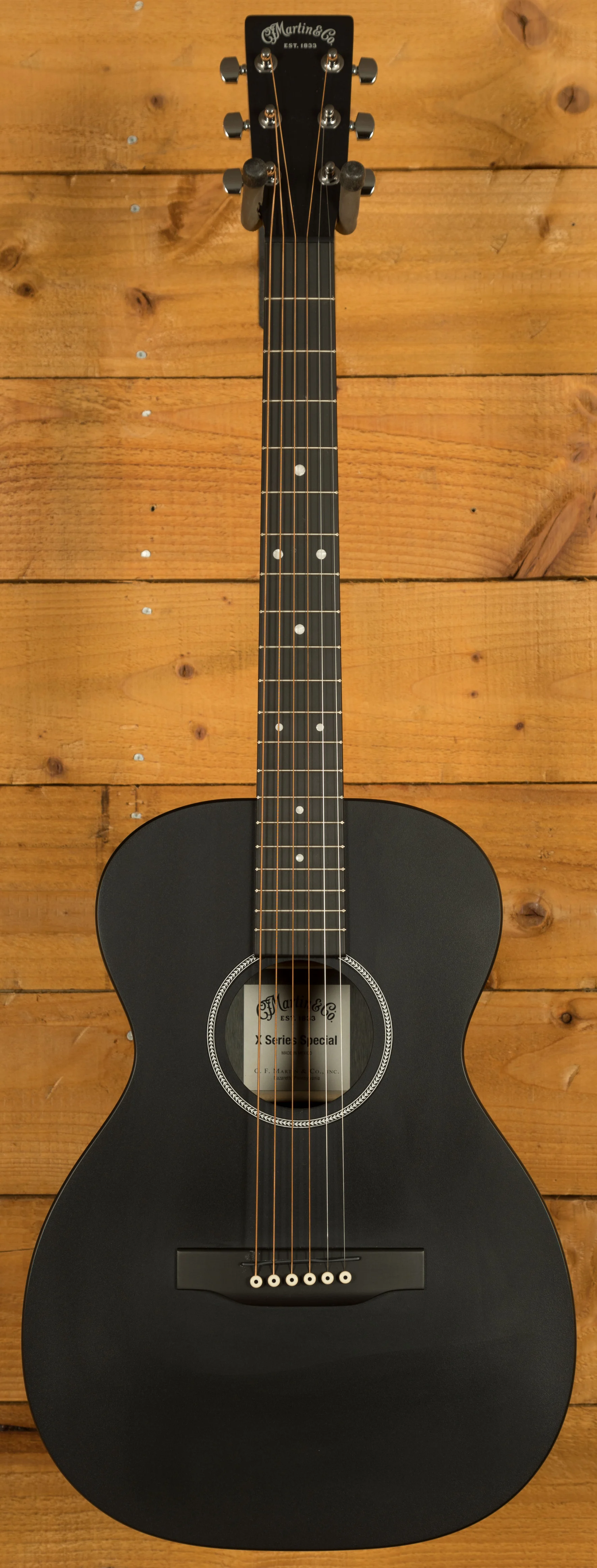At the heart of the 0-X1 Black lies a high-pressure laminate (HPL) top, back, and sides, meticulously designed to resonate with the classic Martin sound that musicians covet. The satin black finish not only makes a visual statement but is a testament to the guitar's uncompromising commitment to style and substance.