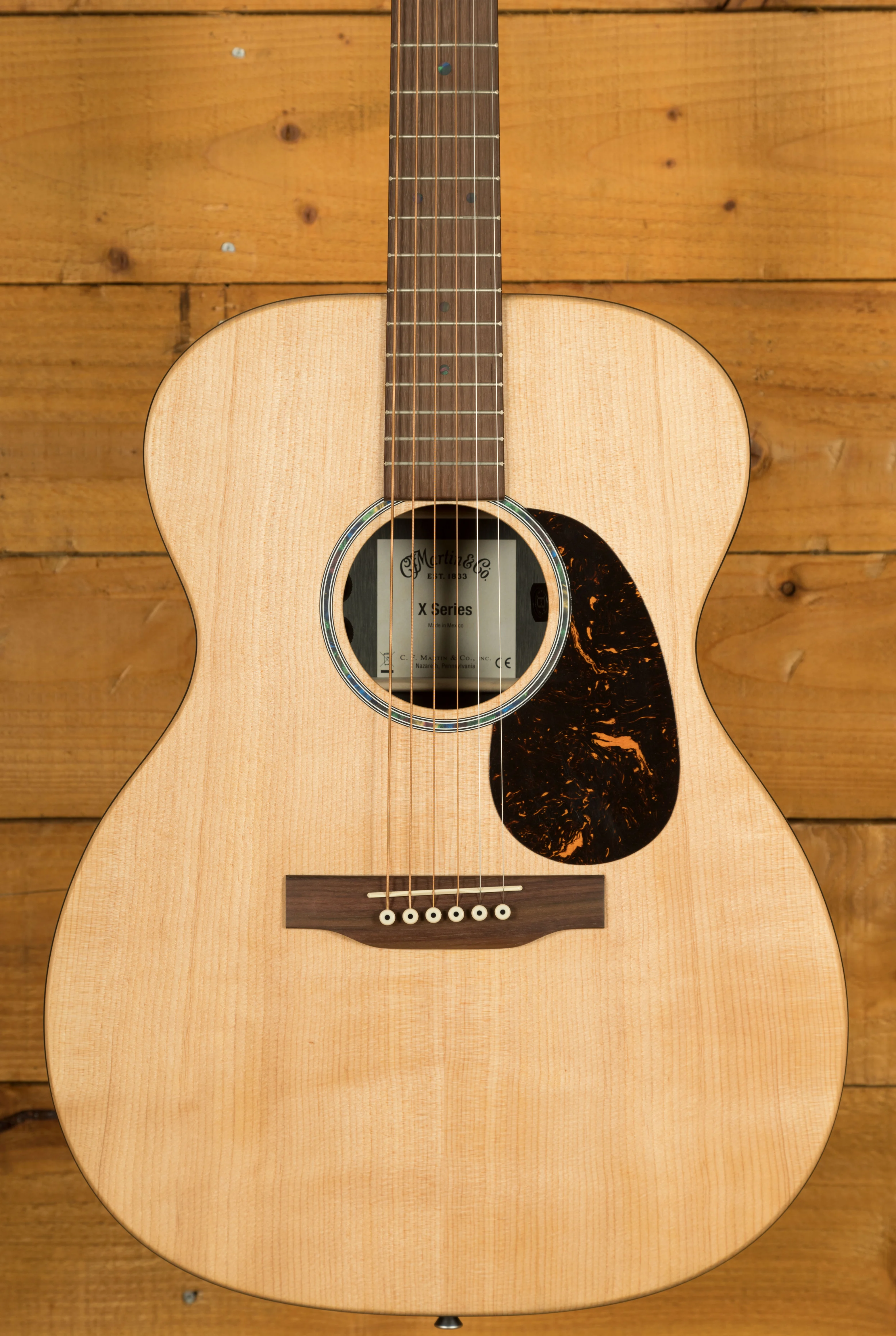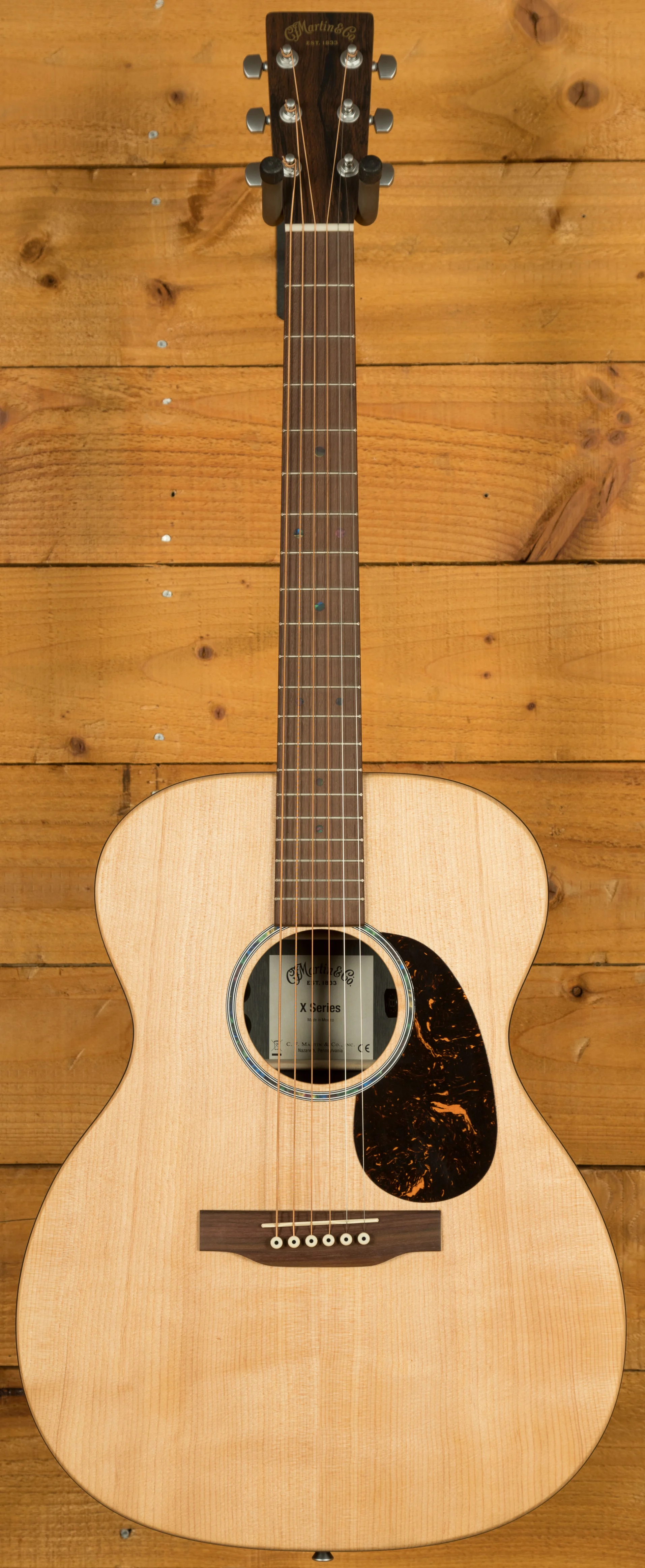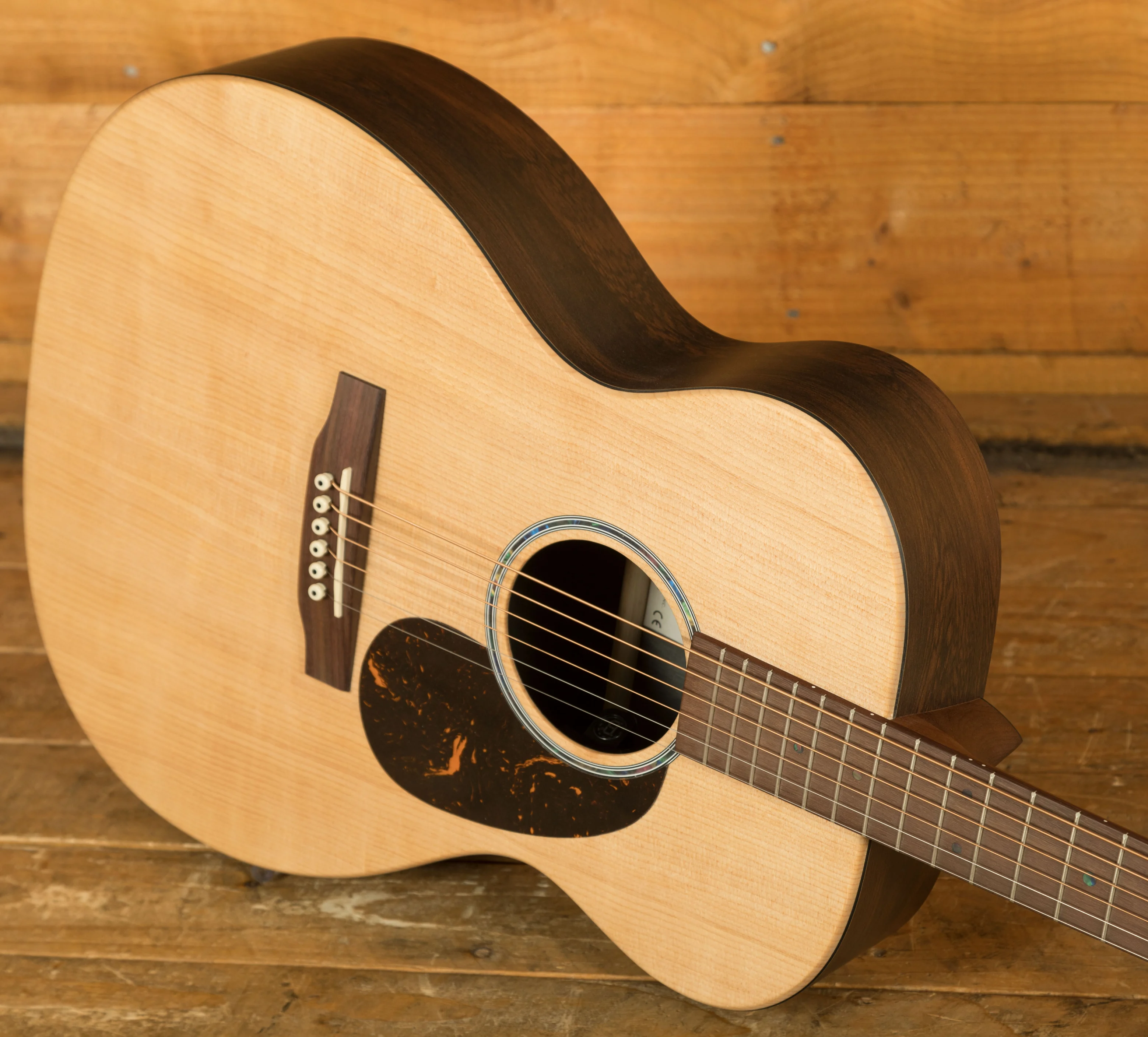 Equipped with Martin E-1 electronics, complete with a built-in chromatic tuner, volume, tone, and phase controls, this guitar offers versatility for both unplugged and plugged-in performances.