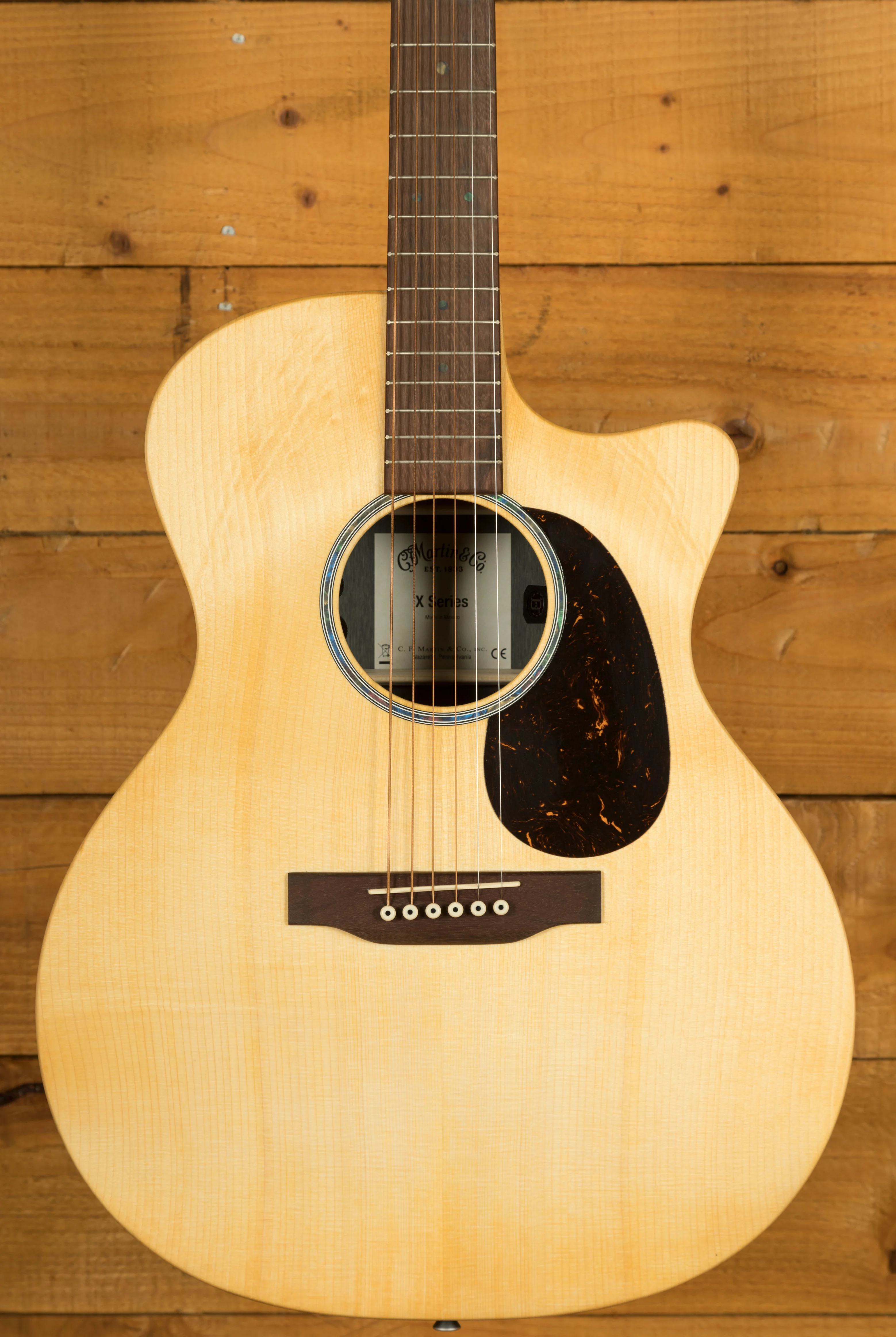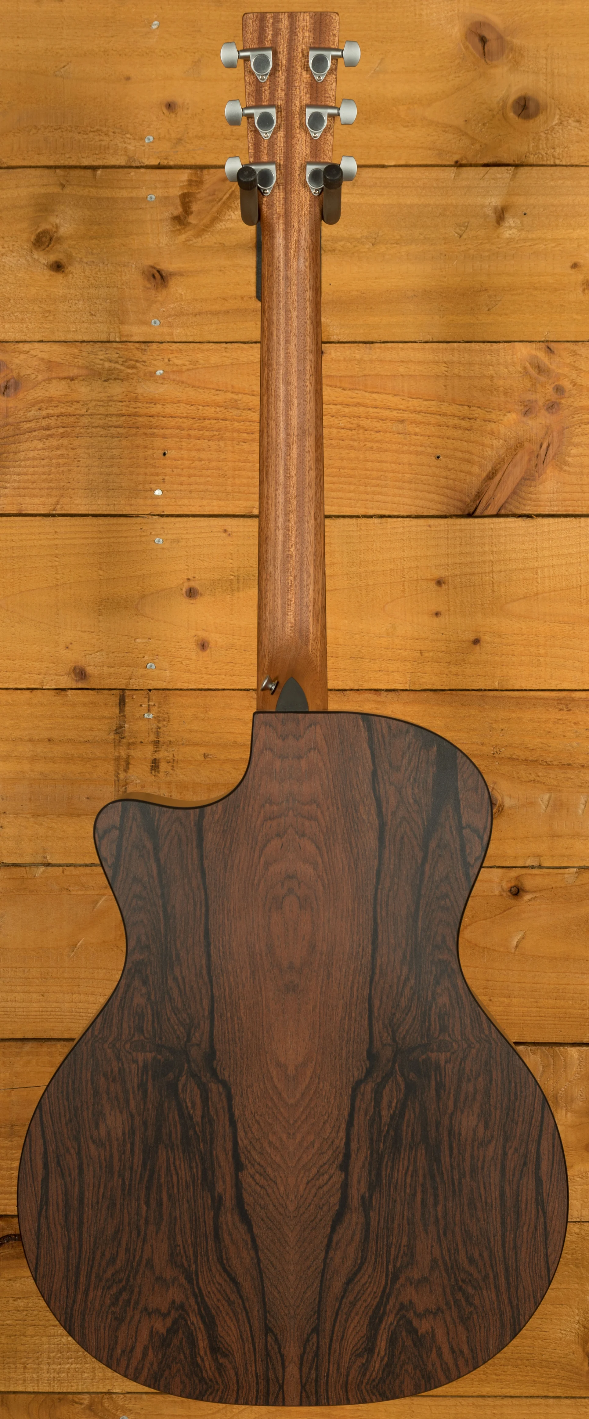 The GPC-X2E Cocobolo features a satin-finished spruce top adorned with an elegant abalone pattern rosette. The eye-catching cocobolo pattern high-pressure laminate (HPL) back and sides not only ensure durability but also elevate the guitar's aesthetic appeal without sacrificing the classic Martin sound. The Grand Performance body size provides a projective and balanced tone, enriched with added bass frequencies, delivering a sonic experience that is both versatile and captivating.