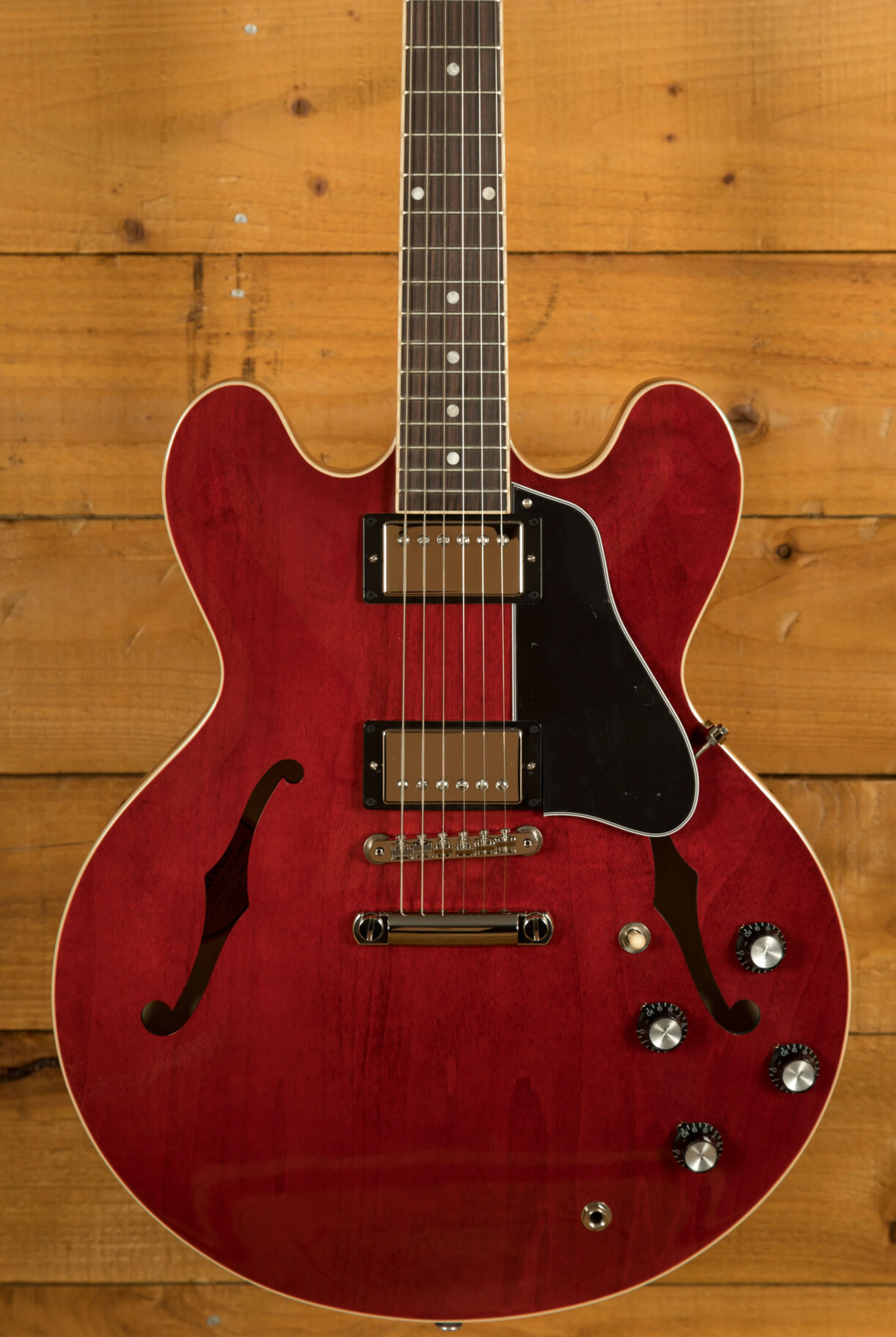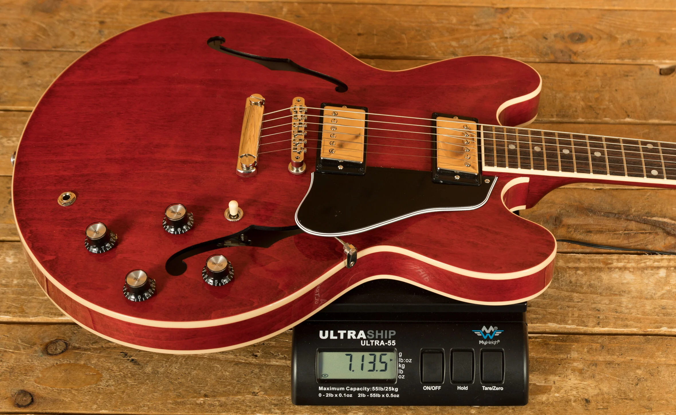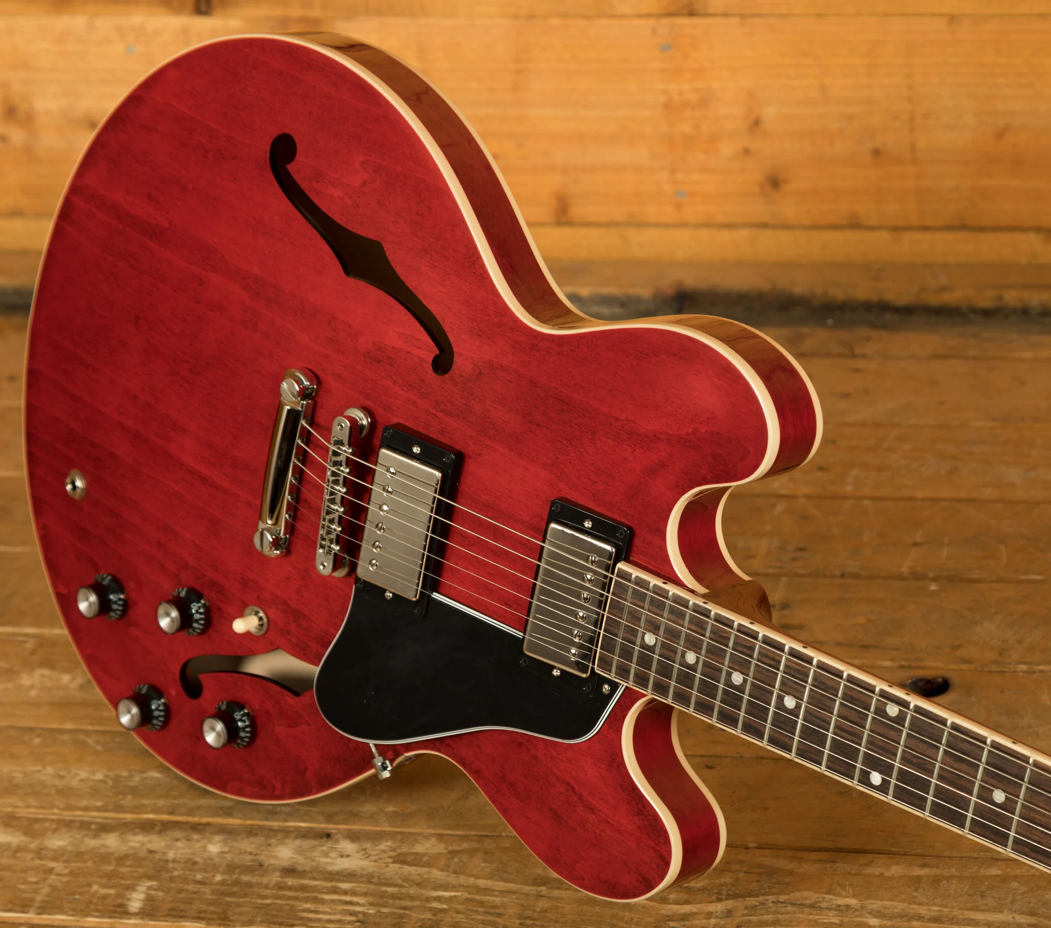 Featuring a 3-ply Maple/Poplar/Maple body, it's finished in a slick, old school Sixties Cherry. Delivering a rich and authentic tone, this ES-335 is super resonant and beautifully balanced; it just oozes that vintage Gibson appeal. The gloss nitro finish is incredible and gives a vintage feel without any real wear.