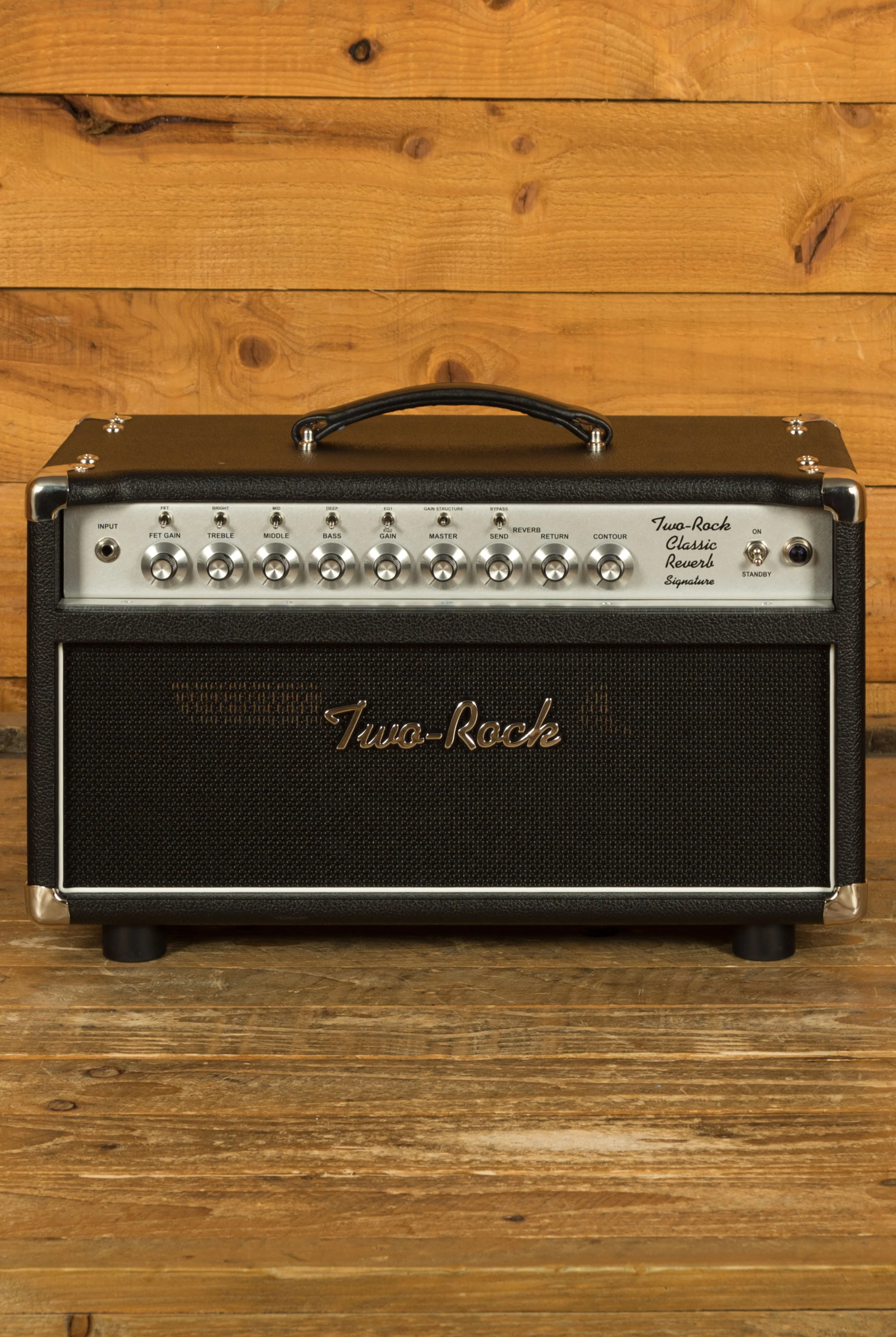 The Two-Rock Classic Reverb Signature 100 watt head is a single channel monster and one of Two-Rocks most popular models. With extensive tone shaping offered via the treble, middle, bass, bright, mid, deep and EQ controls you can really hone this amp into your own sound. There's a Contour control facility that responds uniquely to humbuckers and single coils pickups while also adjusting to the rooms acoustics.