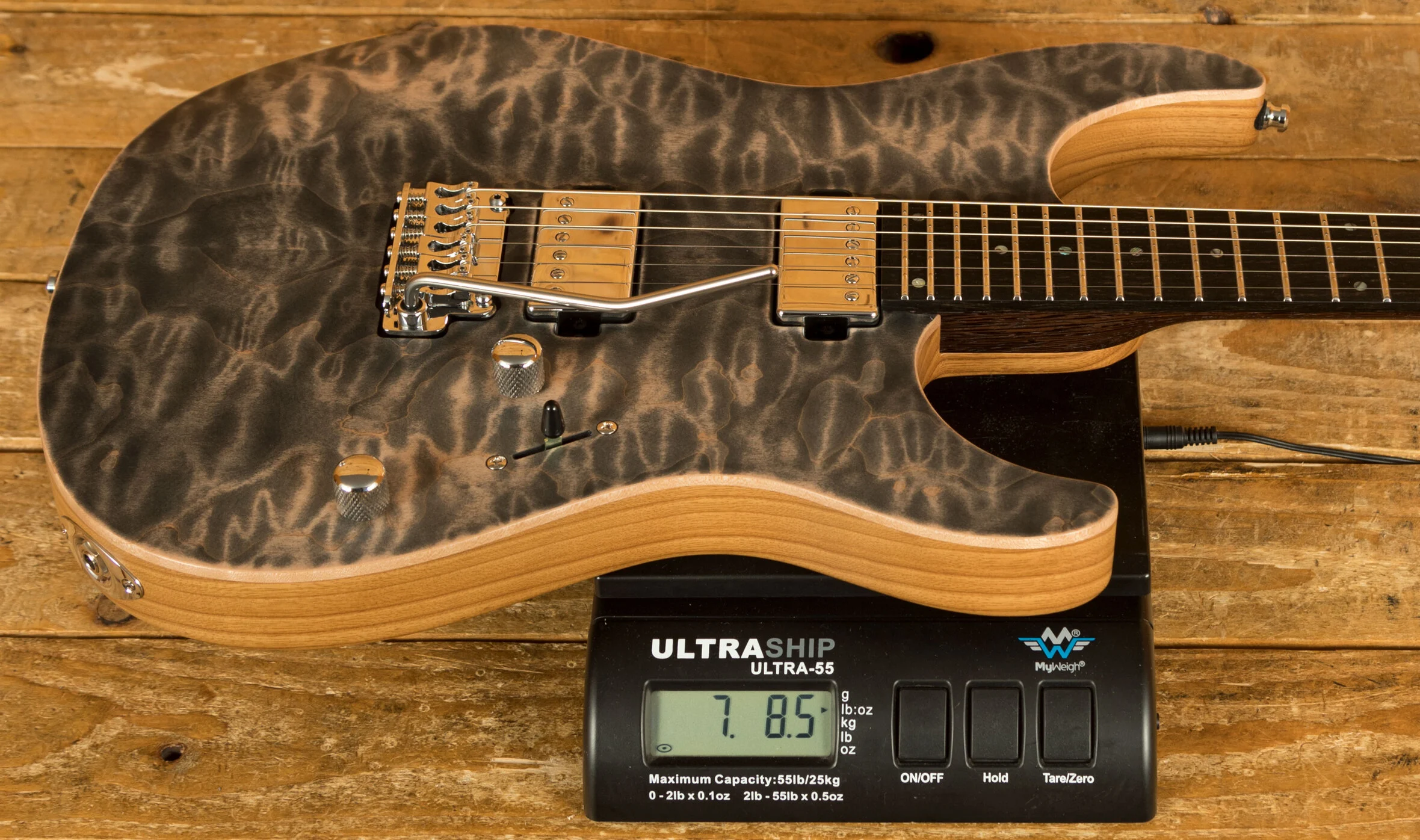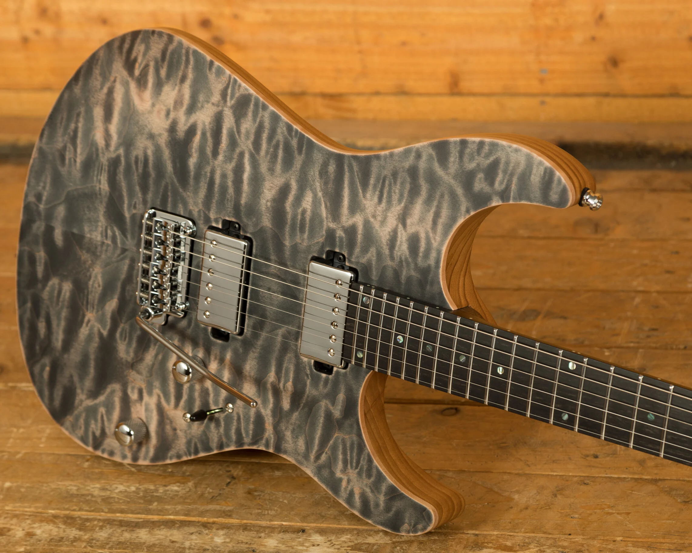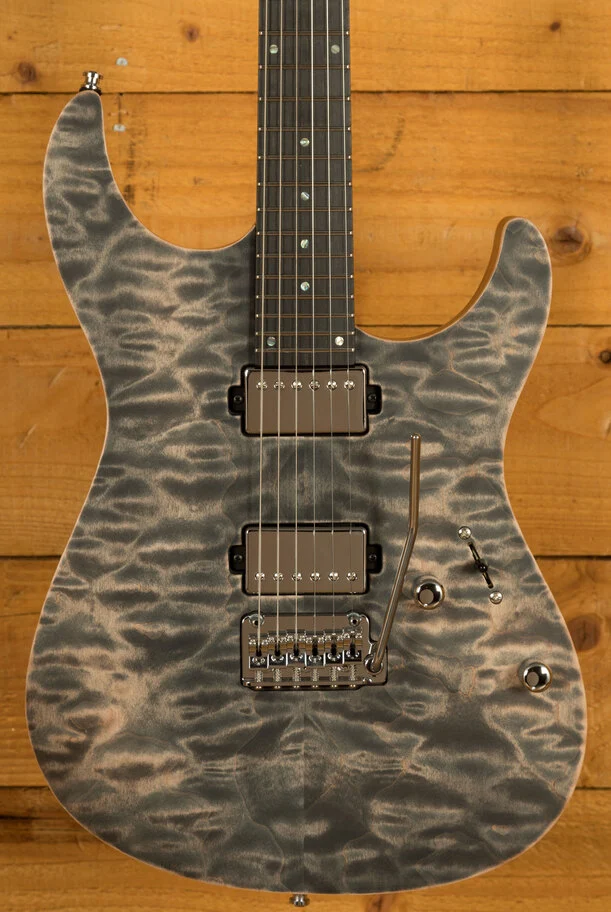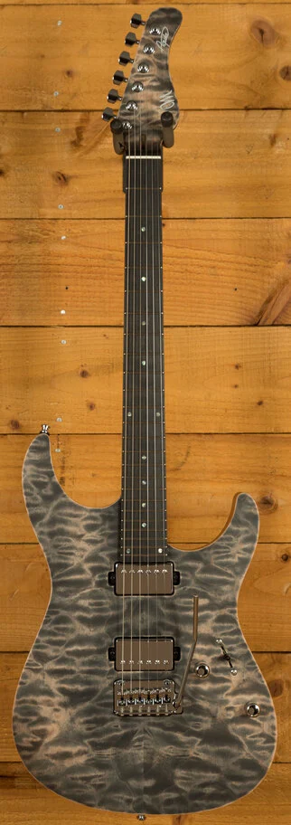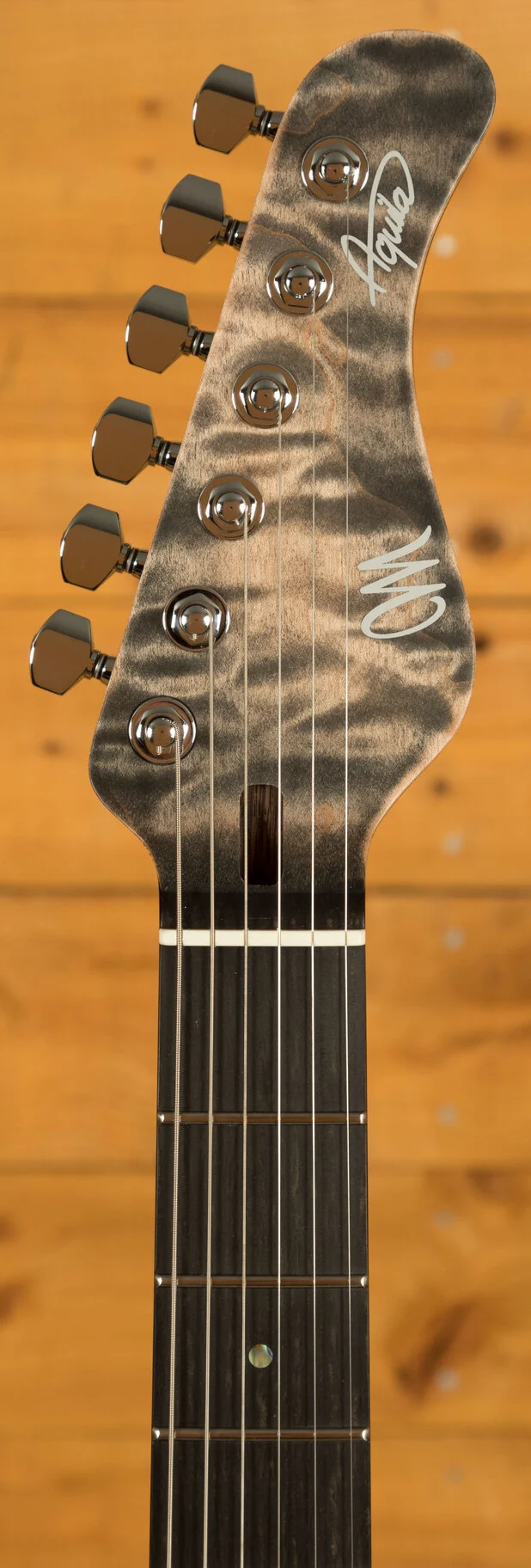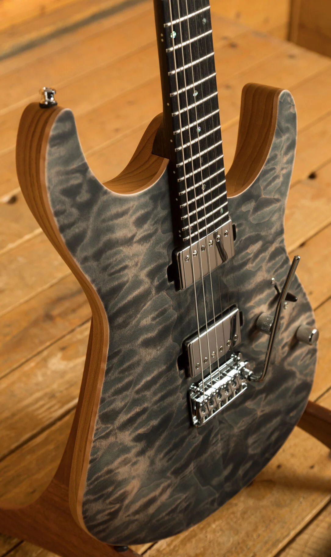 The Aquila Elite S benefits from a lovely TEW Swamp Ash body paired up with a 4A Quilted Maple top with an Antique Black Satin finish which allows you to really appreciate the quality of the top. It's beautifully poised, balanced and allows great access right up the neck. Taking a leaf from the classic S style guitar, this brand new Mayones design is a real stunner.