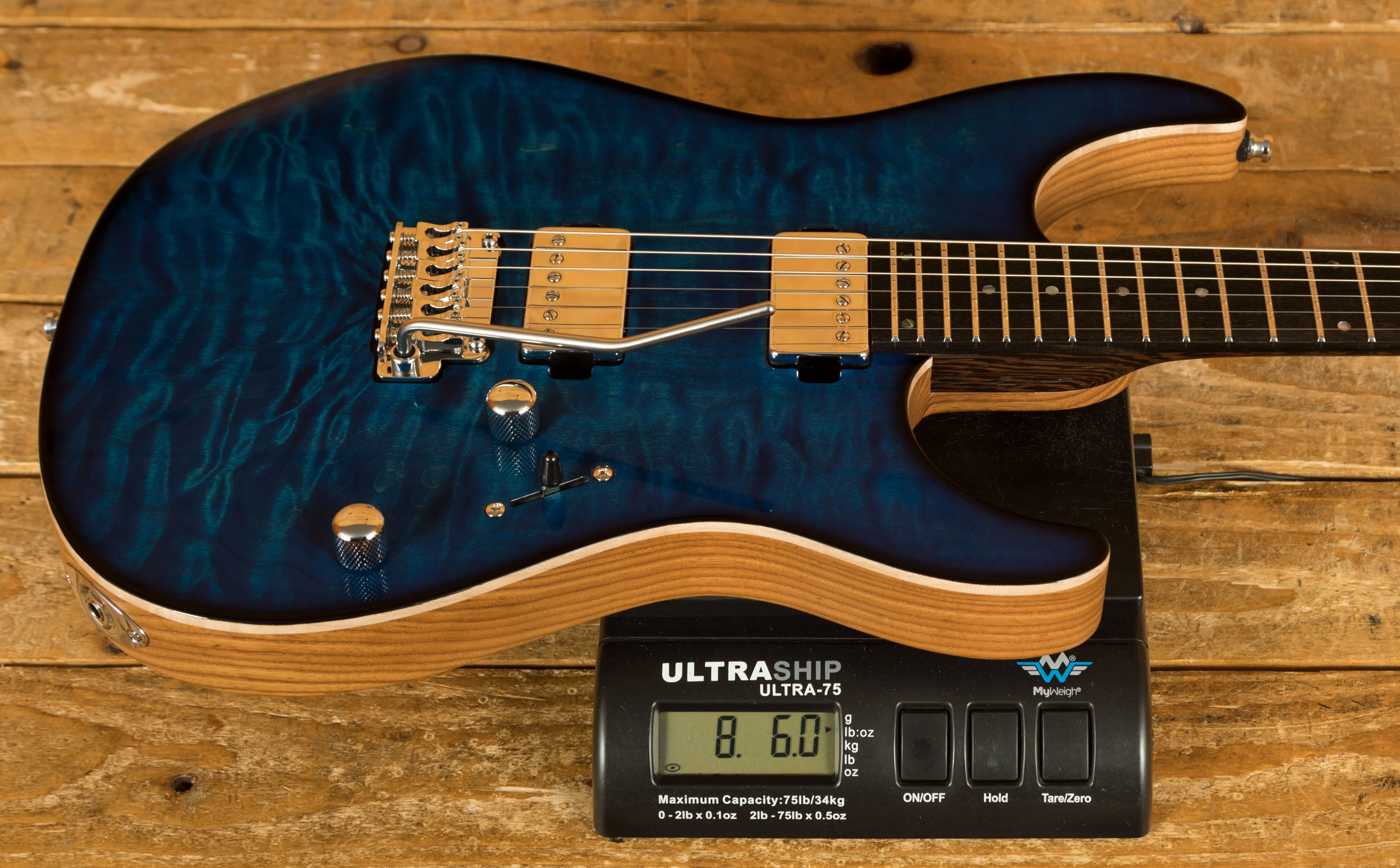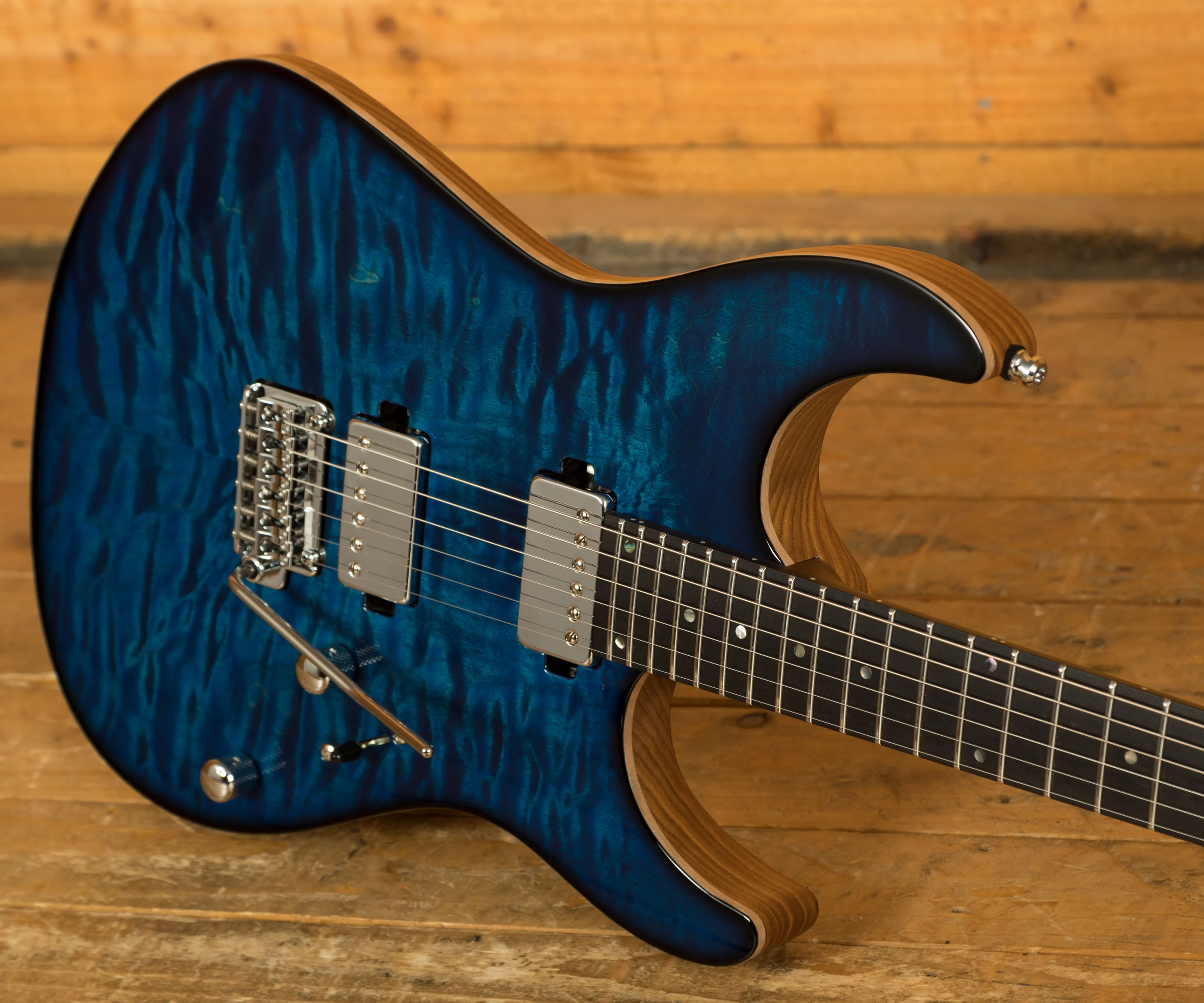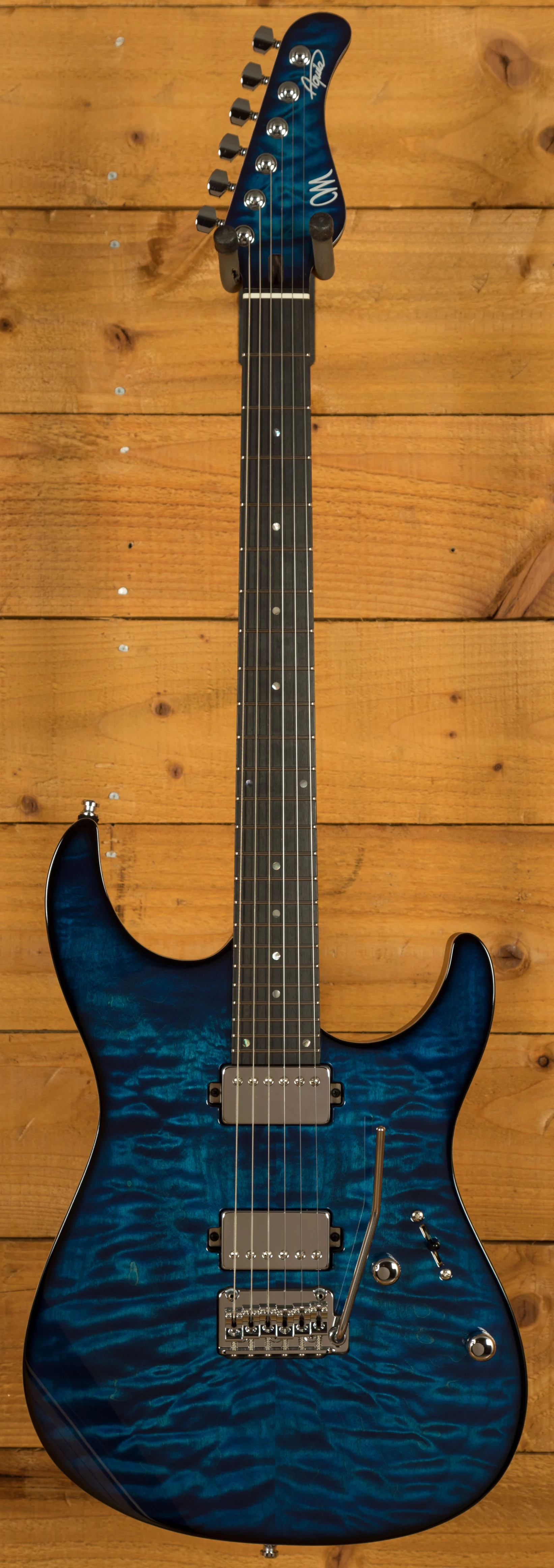 The Aquila Elite S benefits from a lovely TEW Swamp Ash body paired up with a 4A Quilted Maple top with a Trans Custom Colour finish which allows you to really appreciate the quality of the top. It's beautifully poised, balanced and allows great access right up the neck. Taking a leaf from the classic S style guitar, this brand new Mayones design is a real stunner.