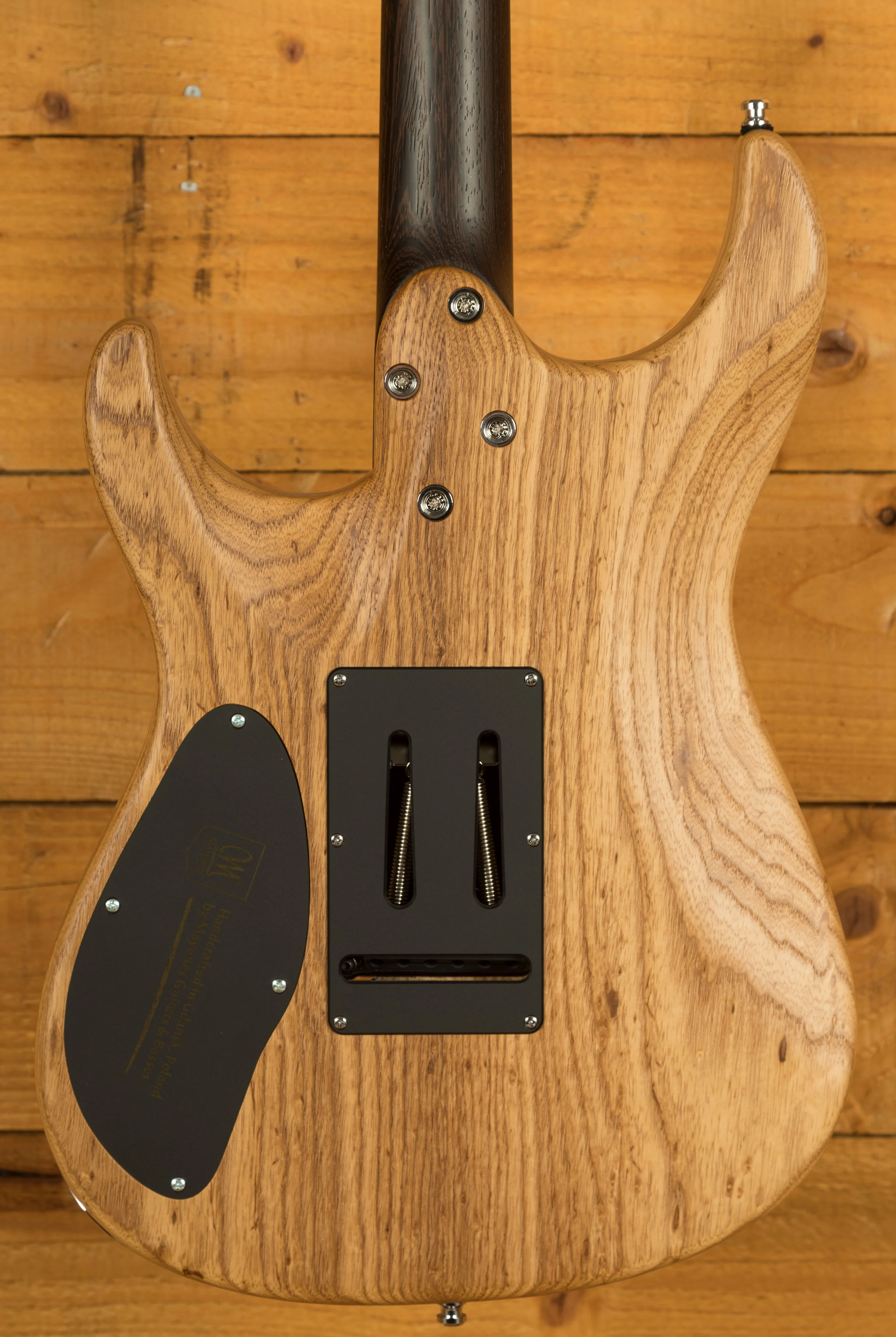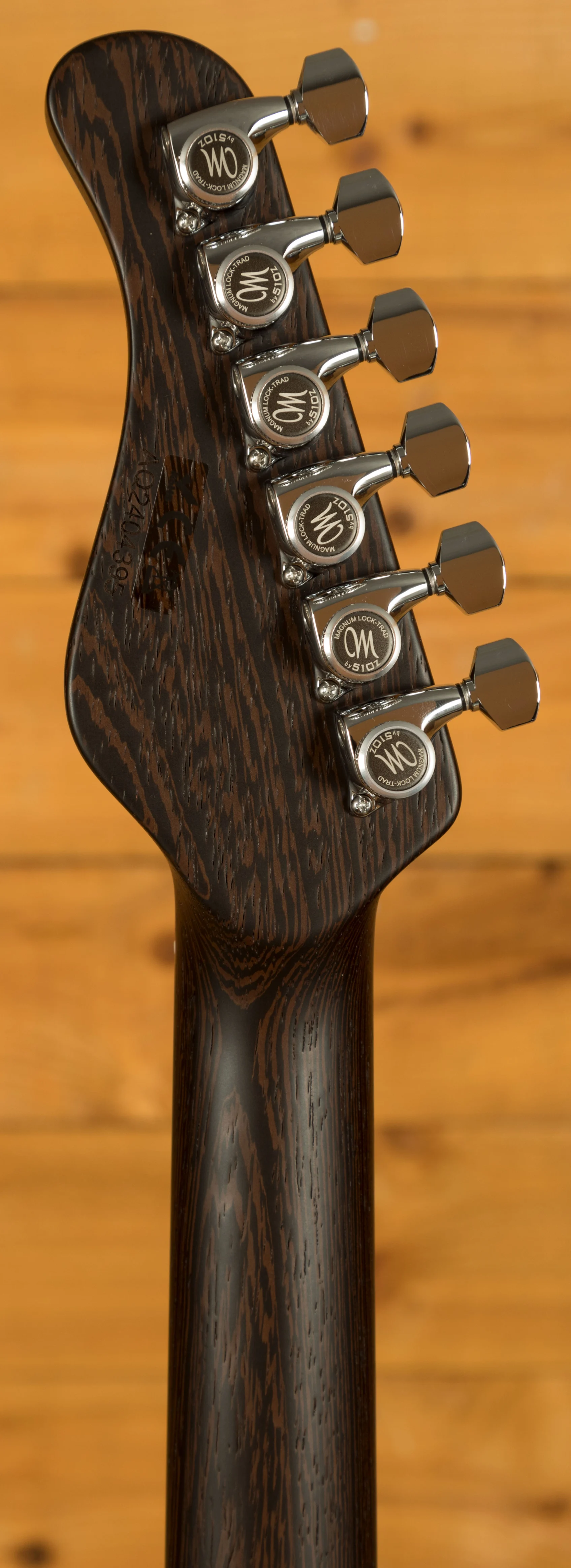 The Wenge neck boasts an incredible Ebony fingerboard, with stainless steel frets and a 25.4" scale length, its comfortable and fast. The 12" radius feels great under hand and offers a platform perfect for both low end riffing and treble side lead work.