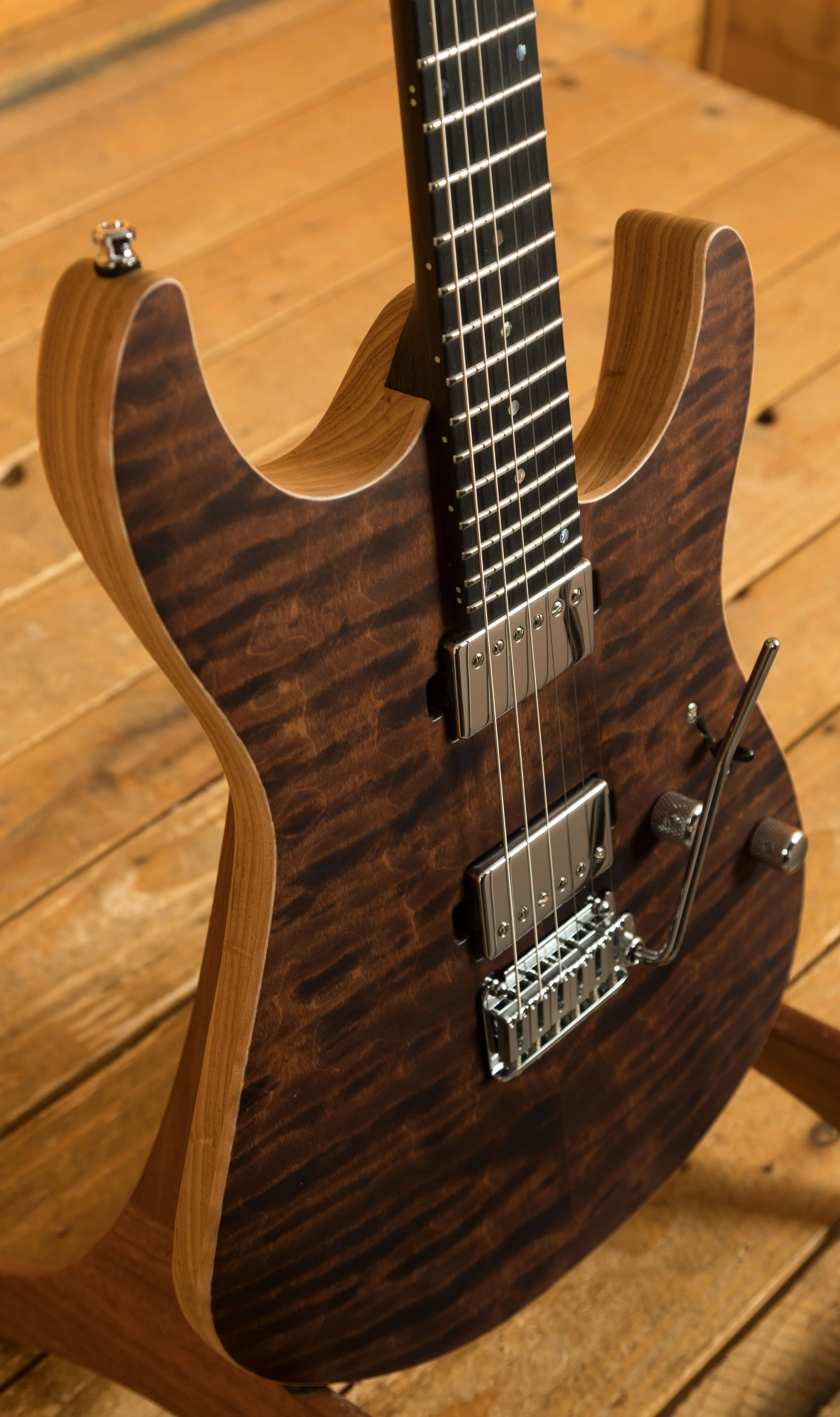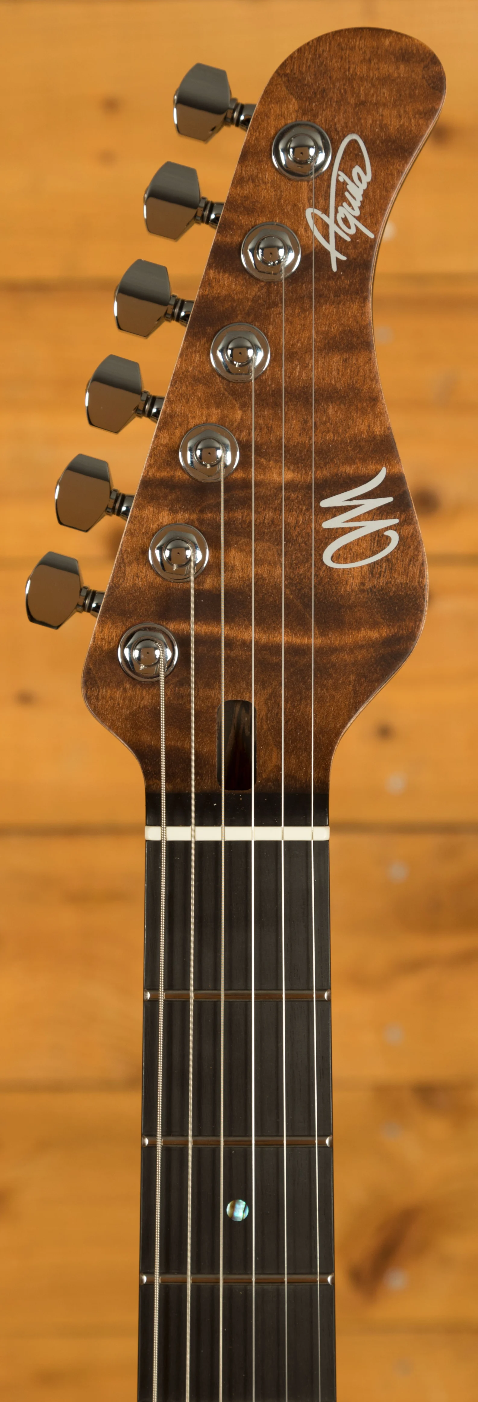 The Aquila Elite S benefits from a lovely TEW Swamp Ash body paired up with a 4A Quilted Maple top with a Trans Custom Colour Satin finish which allows you to really appreciate the quality of the top. It's beautifully poised, balanced and allows great access right up the neck. Taking a leaf from the classic S style guitar, this brand new Mayones design is a real stunner.
