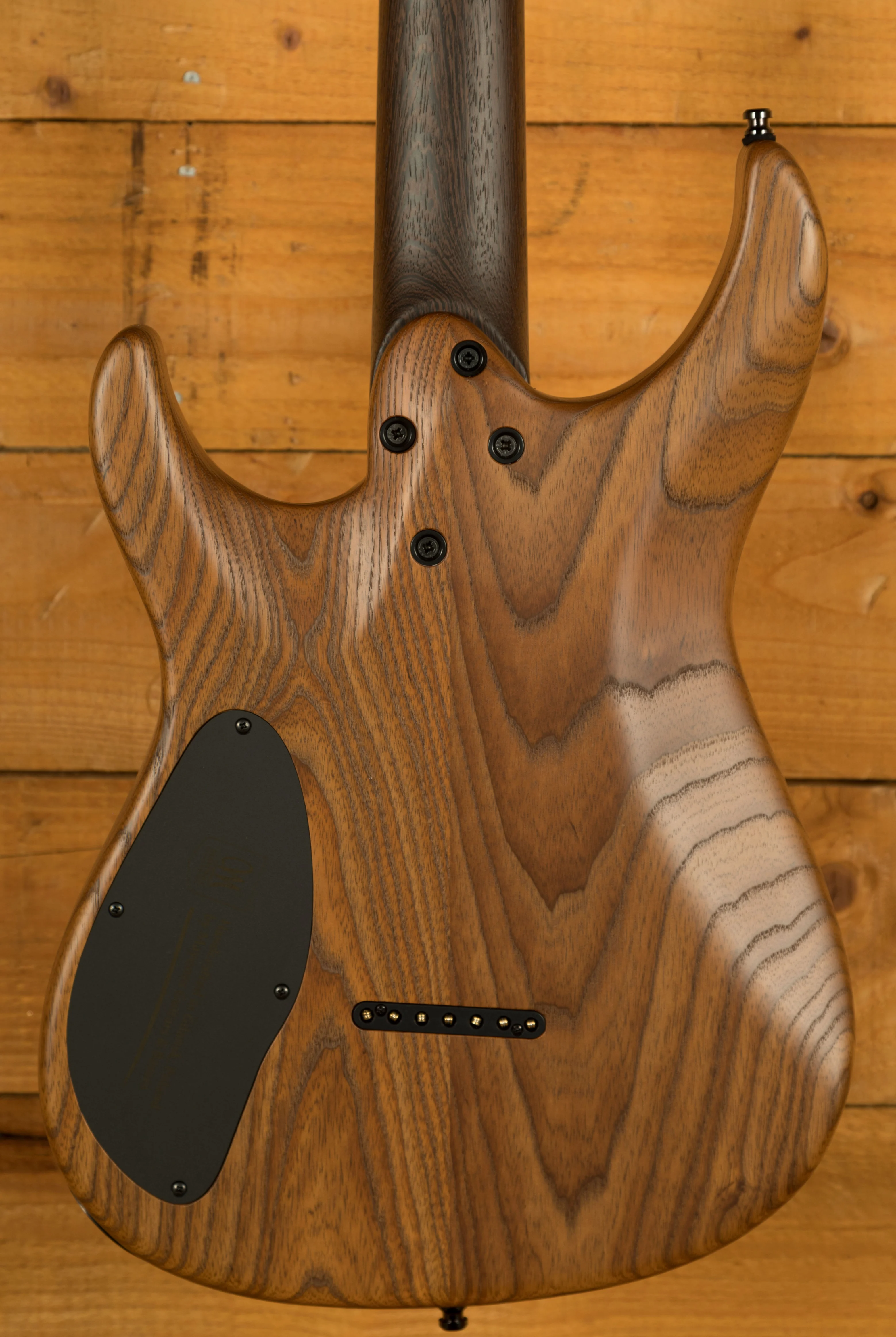 The 1-piece Wenge neck is reinforced with a pair of carbon rods, which help to ensure excellent stability and resistance to humidity and temperate changes. The profile is comfortable, it’s the perfect thickness you’d want for an instrument like this. It’s thin enough to allow for quick shredding, but still super comfortable for those who like to cup the neck with their palm. The fretboard is crafted from 4A grade T.E.W Birdseye Maple, which has a lovely dark colour to it with just the right amount of birdseye figuring on show. It features a 26.5” baritone scale length, 16” radius, stainless steel frets, centred abalone dot inlays, Luminlay side dots, and a matching headstock.