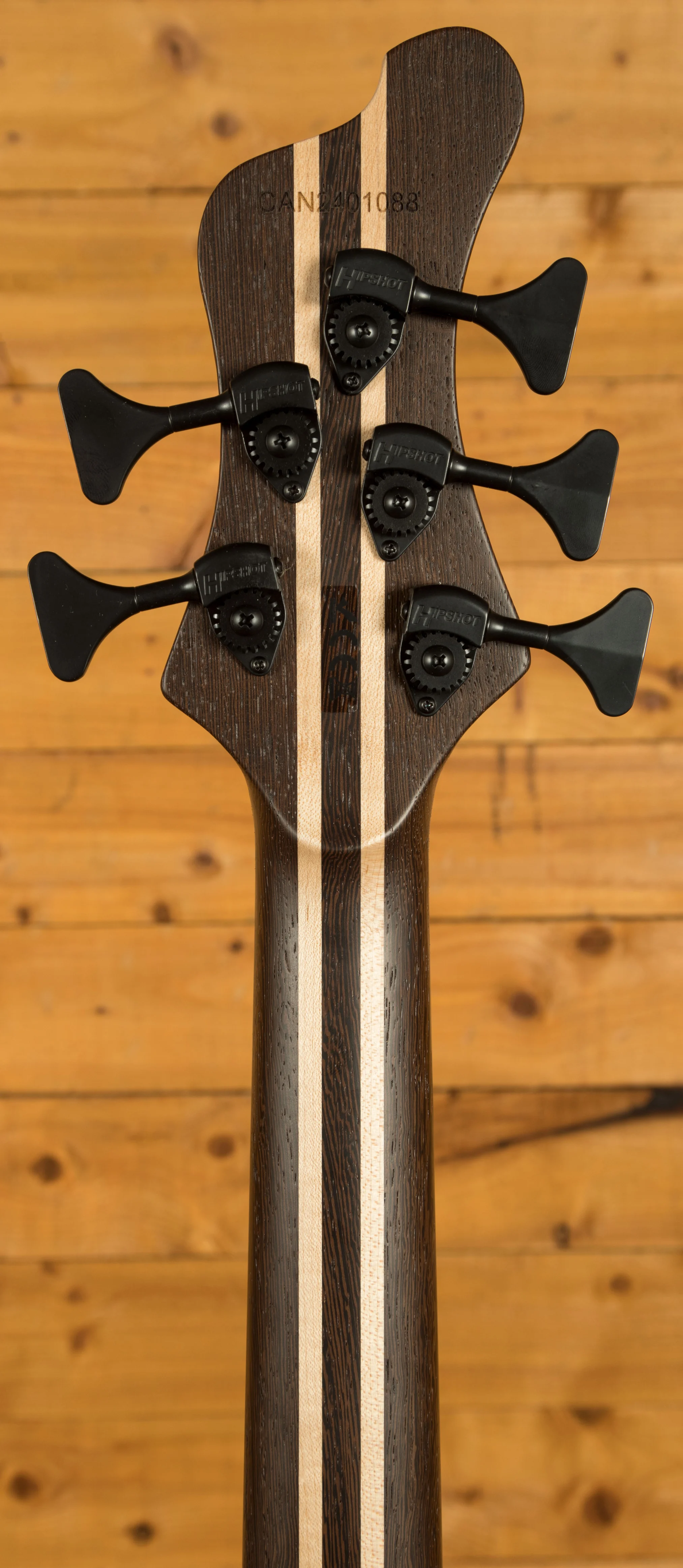 The 5-ply Maple /Wenge neck boasts a slick Ebony fingerboard which feels great under your fingers. It also includes a 20 radius, a 34.25 scale length, luminlay side dots and nickel frets.