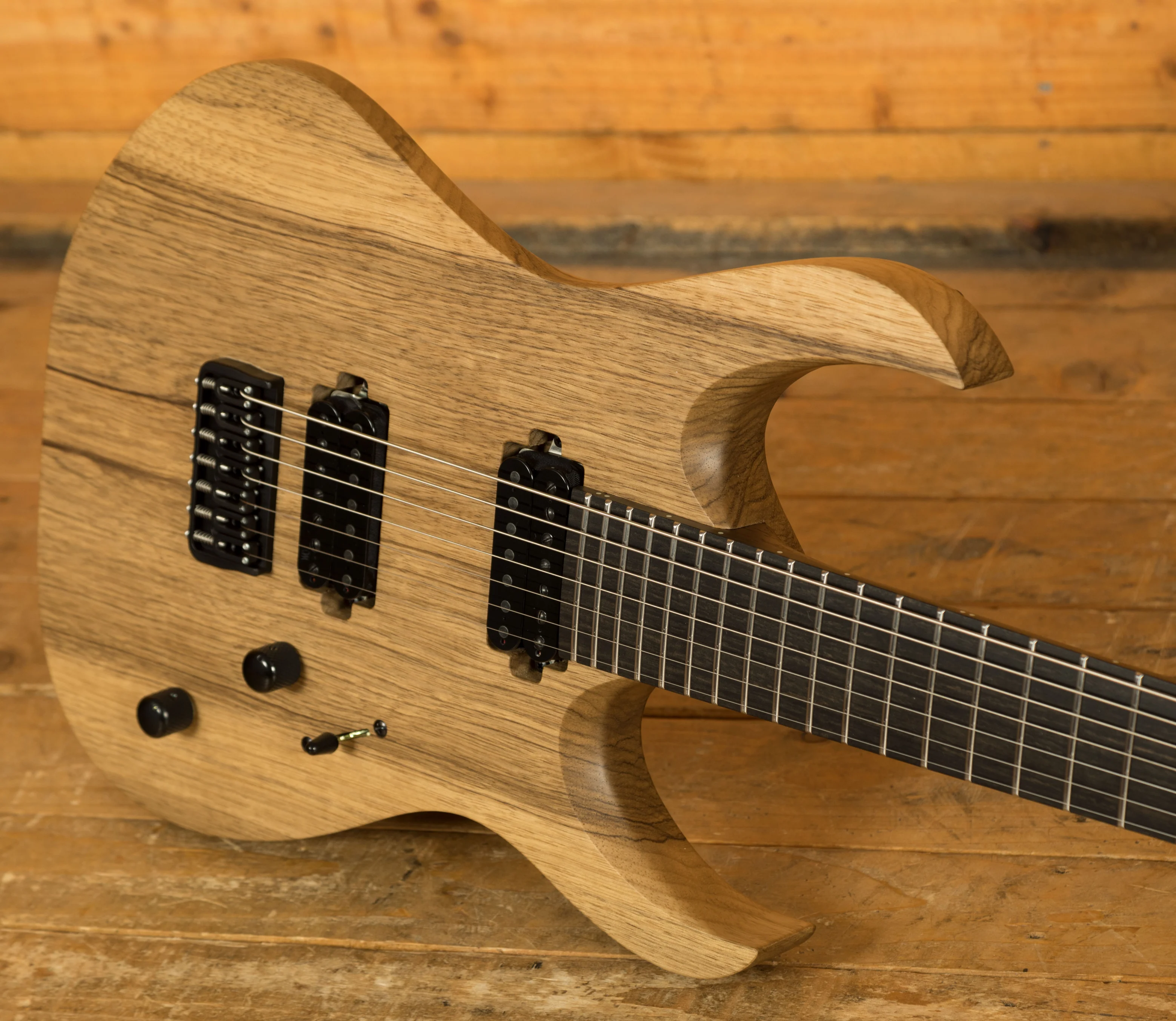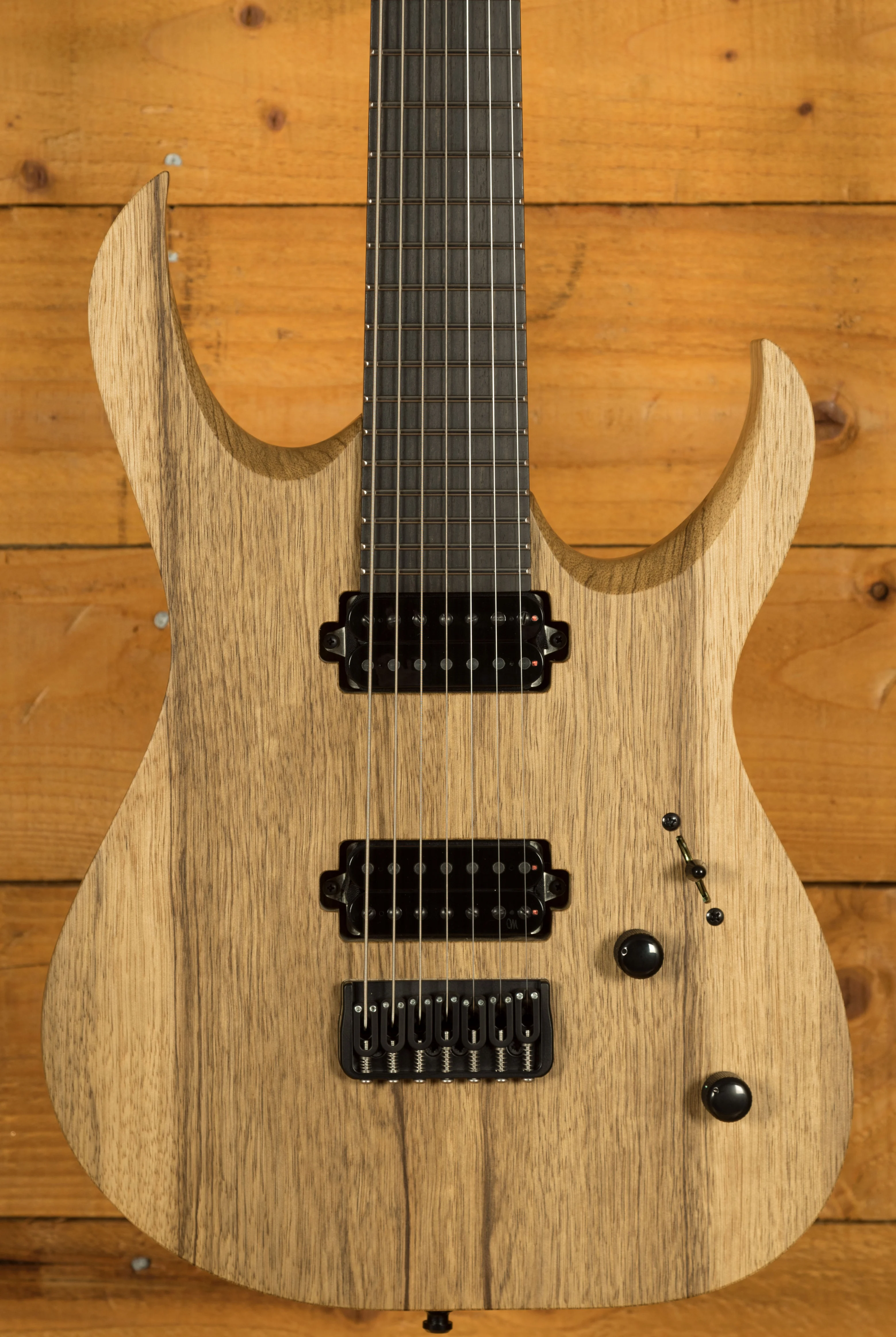 The pickup choice really brings this guitar to life, with a duo of Bare Knuckle TKO 7 pickups you get a great full frequency range and a really dynamic response. With a Hipshot 7 fixed bridge and Hipshot locking tuners, this guitar offers flawless tuning stability and intonation.