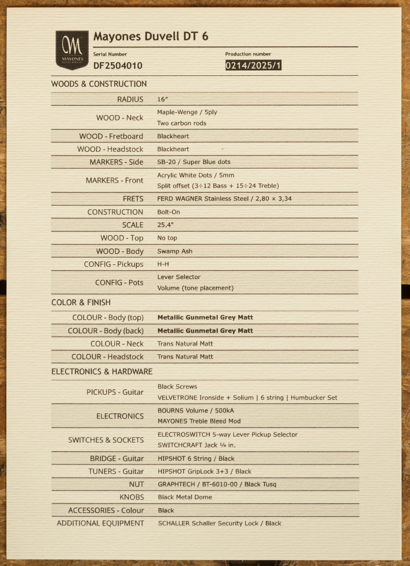 The Mayones DT series was created with the "Direct Tone" concept in mind, focusing on simplicity and delivering a high-performance guitar at a great price point. These optimized instruments are designed to offer precision, clarity, and refinement, making them ideal for handling even the most complex musical passages with ease and purpose.