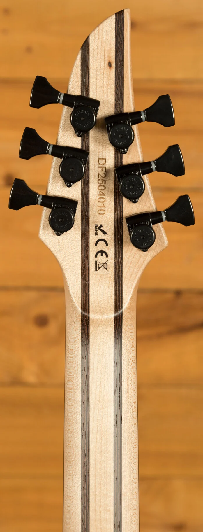 The bolt-on 5-ply Maple/Wenge neck further increases this guitars snappy tone, it’ll cut through in any mix without a problem. Unique to the DT series the blackheart fingerboard with matching headstock creates a classy, seamless look that fits well with the simple-yet-refined concept of this guitar. This guitar also features a 25.4” scale length, 16” radius, 24 extra jumbo stainless steel frets, and dot inlays.