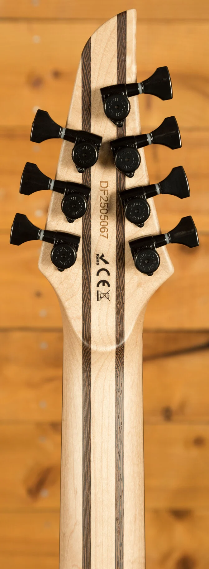 The bolt-on 5-ply Maple/Wenge neck further increases this guitars snappy tone, it’ll cut through in any mix without a problem. Unique to the DT series the blackheart fingerboard with matching headstock creates a classy, seamless look that fits well with the simple-yet-refined concept of this guitar. This guitar also features a 26.5” scale length, 16” radius, 24 extra jumbo stainless steel frets, and dot inlays.