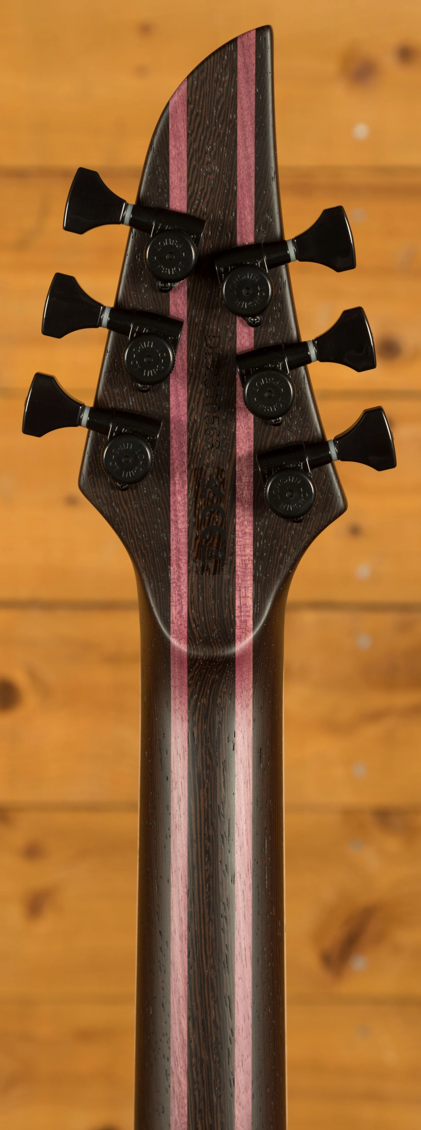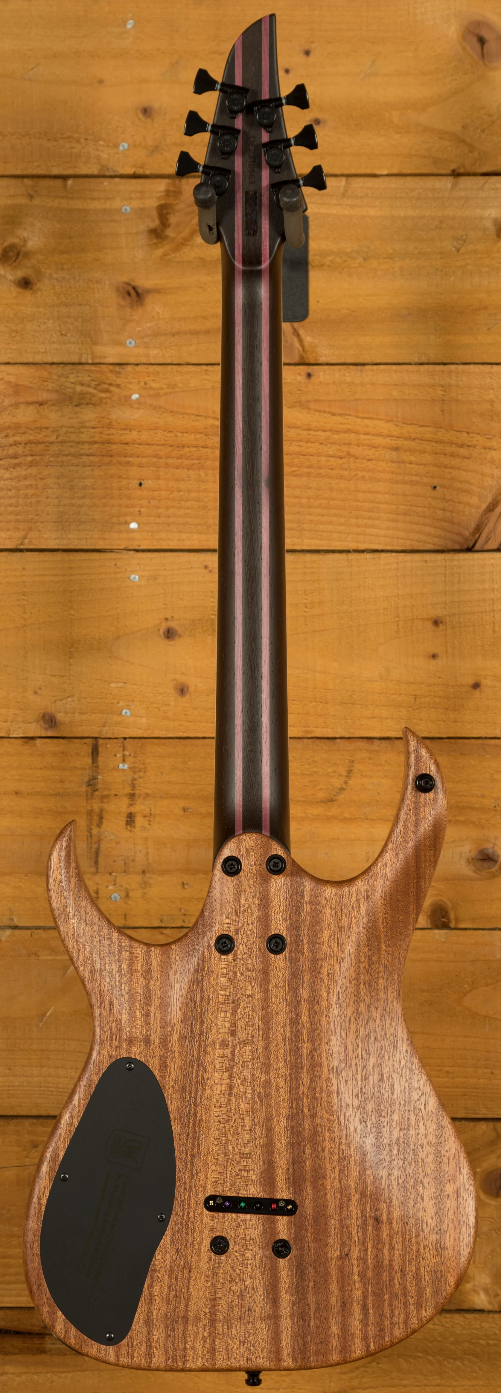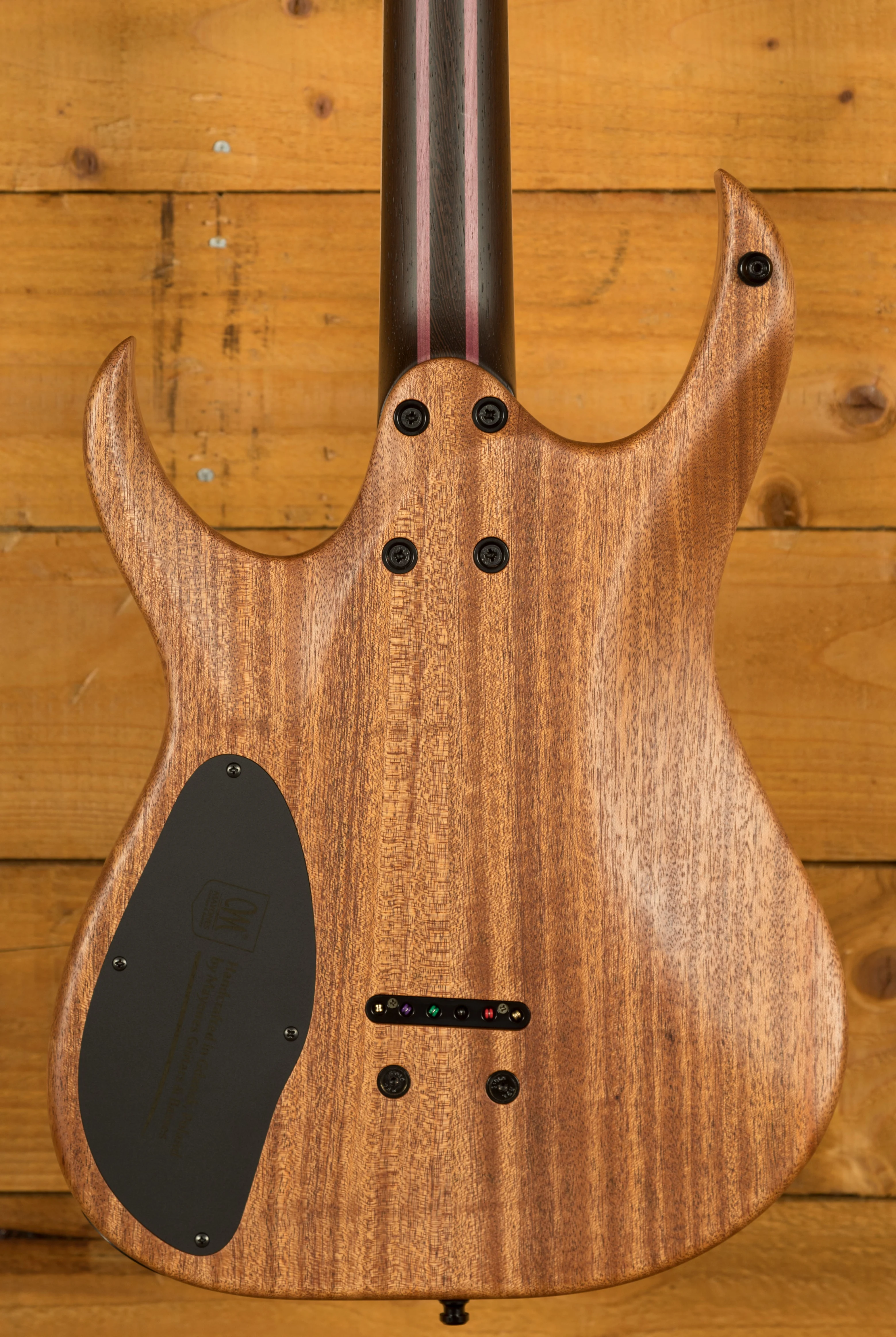 The 5-ply Wenge/Purpleheart neck boasts a slick 3A Birdseye Maple fingerboard, with 24 stainless steel frets and a 25.4" scale length, its comfortable and fast. The 16" radius feels great under hand and offers a platform perfect for both low end riffing and treble side lead work.