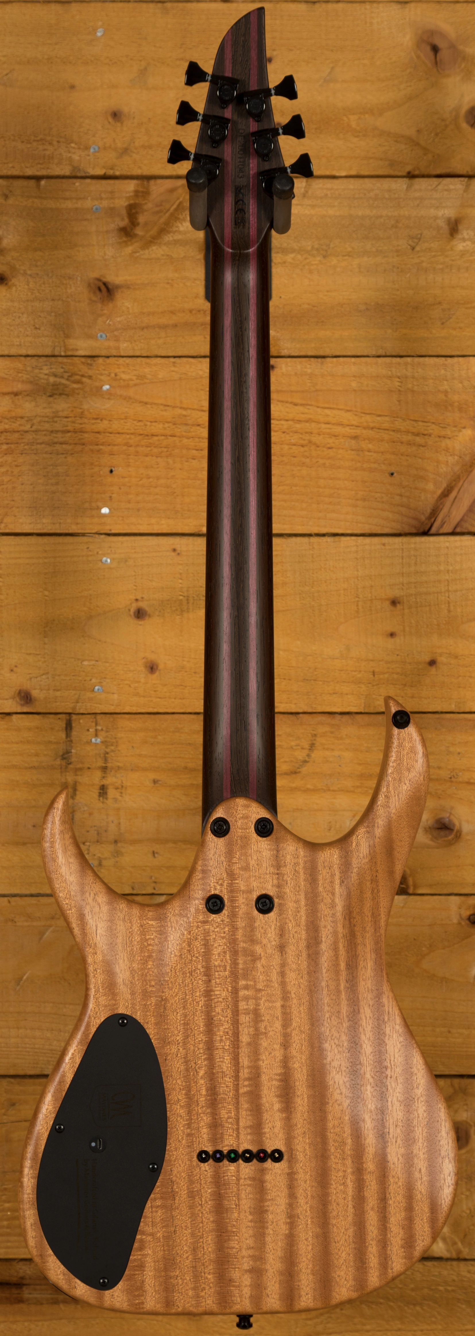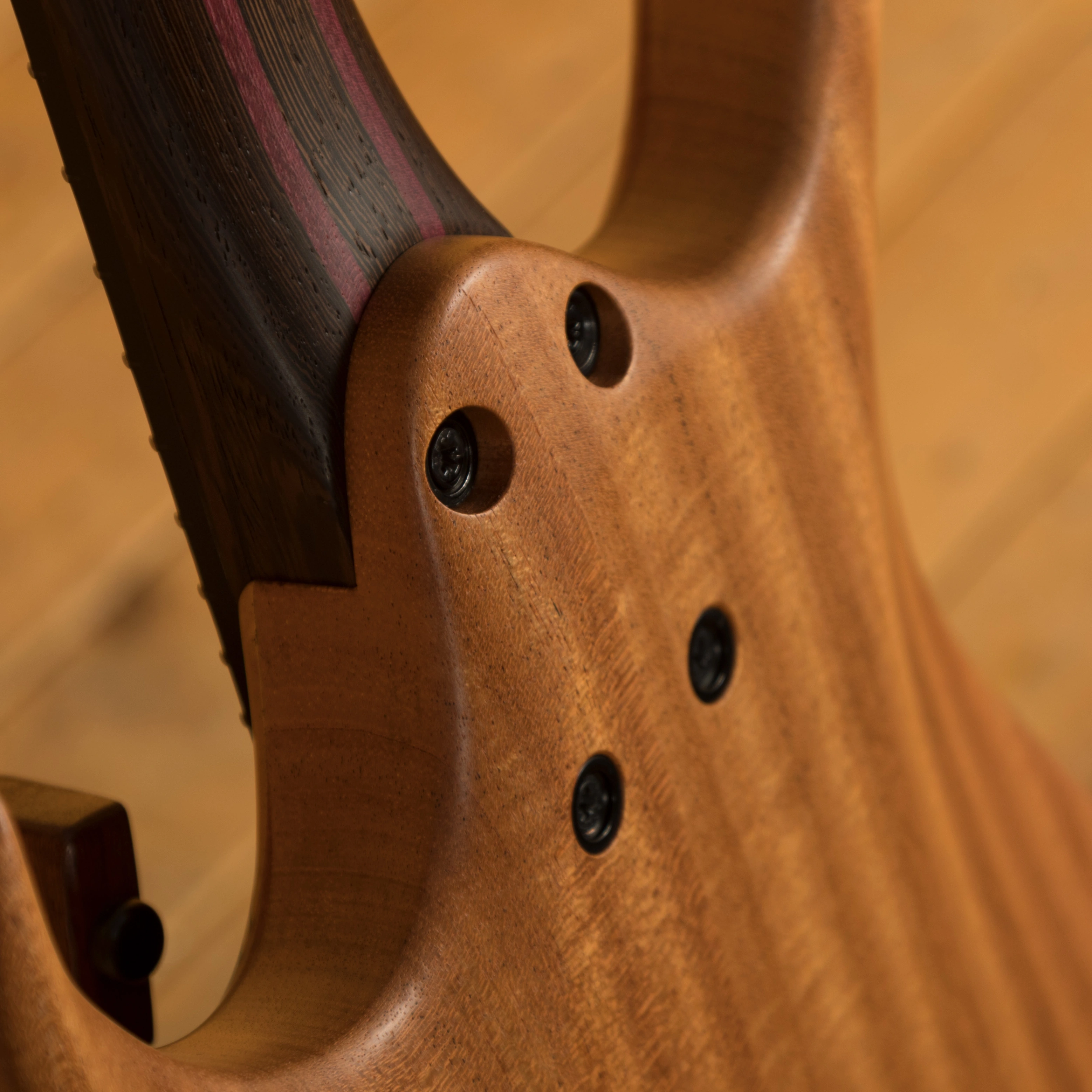 The Wenge/Purpleheart neck boasts a slick Ebony fingerboard, with 24 stainless steel frets and a 25.4" scale length, its comfortable and fast. The 16" radius feels great under hand and offers a platform perfect for both low end riffing and treble side lead work.