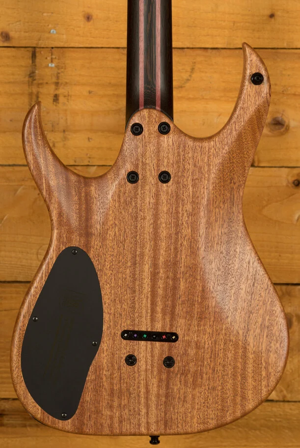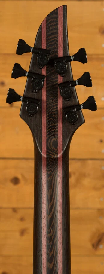 The Wenge/Purpleheart neck boasts a slick Ebony fingerboard, with 24 stainless steel frets and a 25.4" scale length, its comfortable and fast. The 16" radius feels great under hand and offers a platform perfect for both low end riffing and treble side lead work.