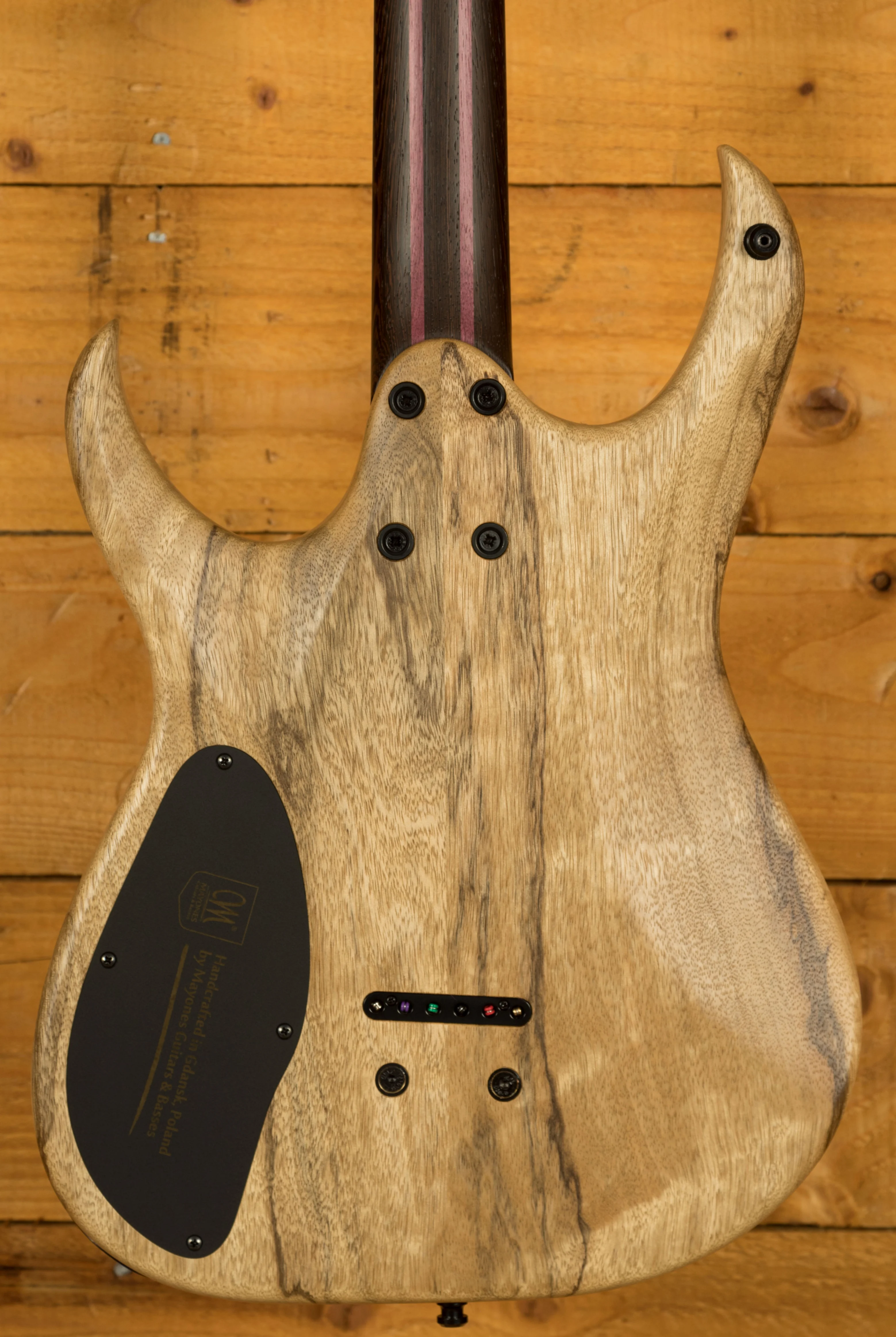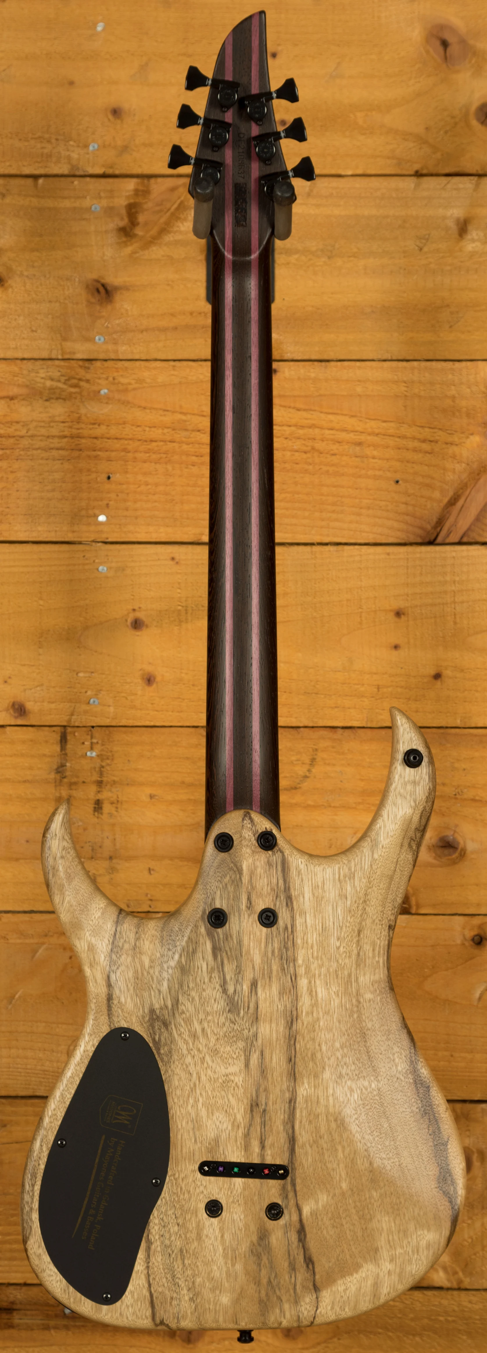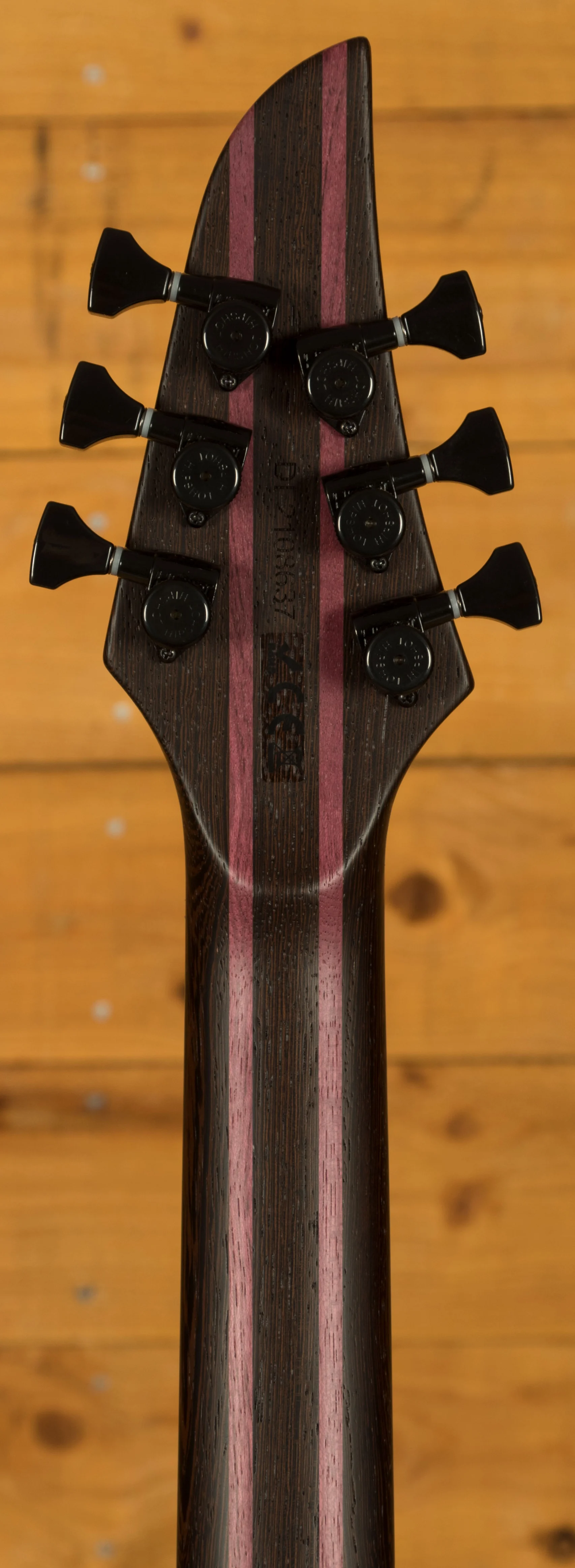 The Wenge/Purpleheart neck boasts a slick Ebony fingerboard, with 24 stainless steel frets and a 25.4" scale length, its comfortable and fast. The 16" radius feels great under hand and offers a platform perfect for both low end riffing and treble side lead work.