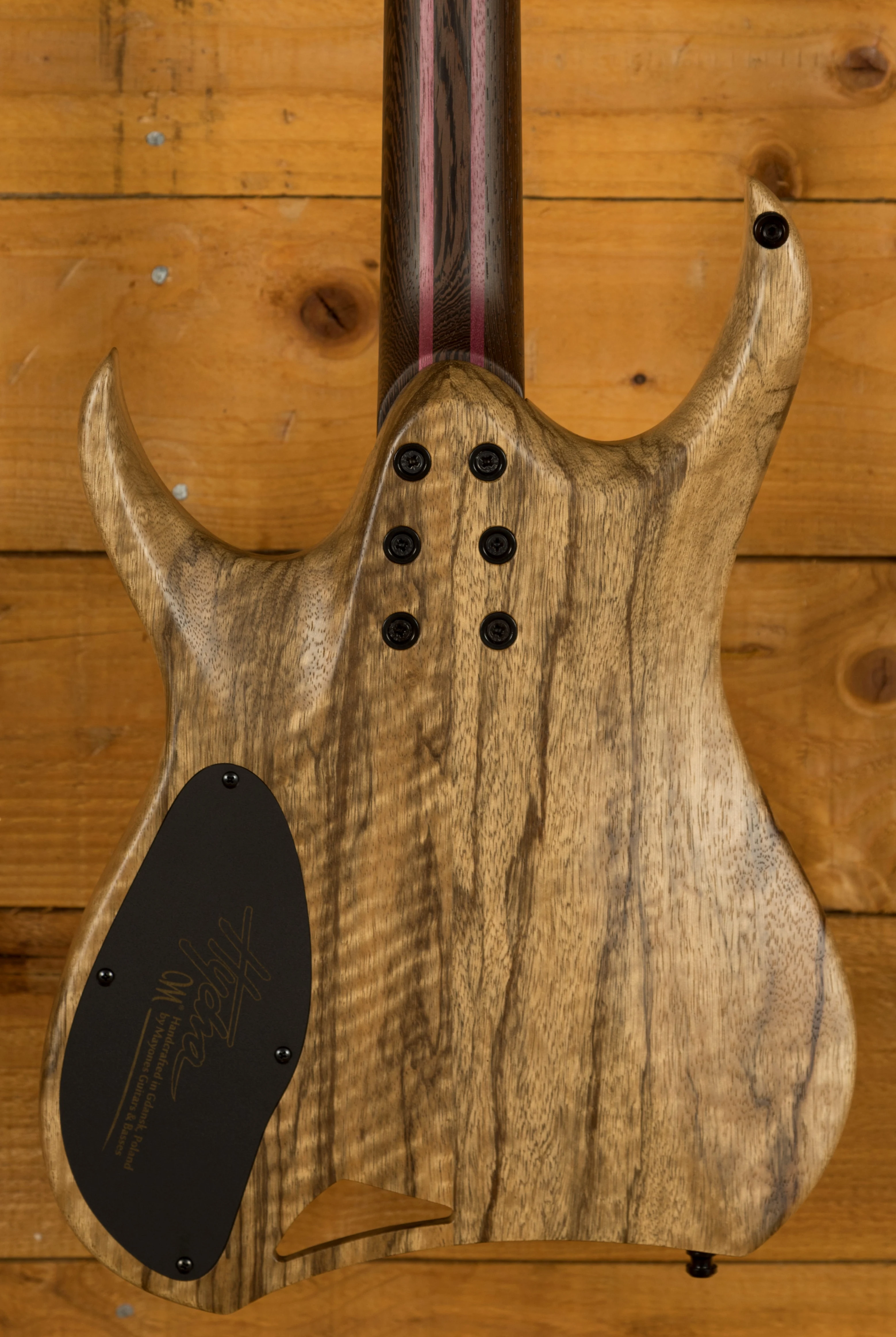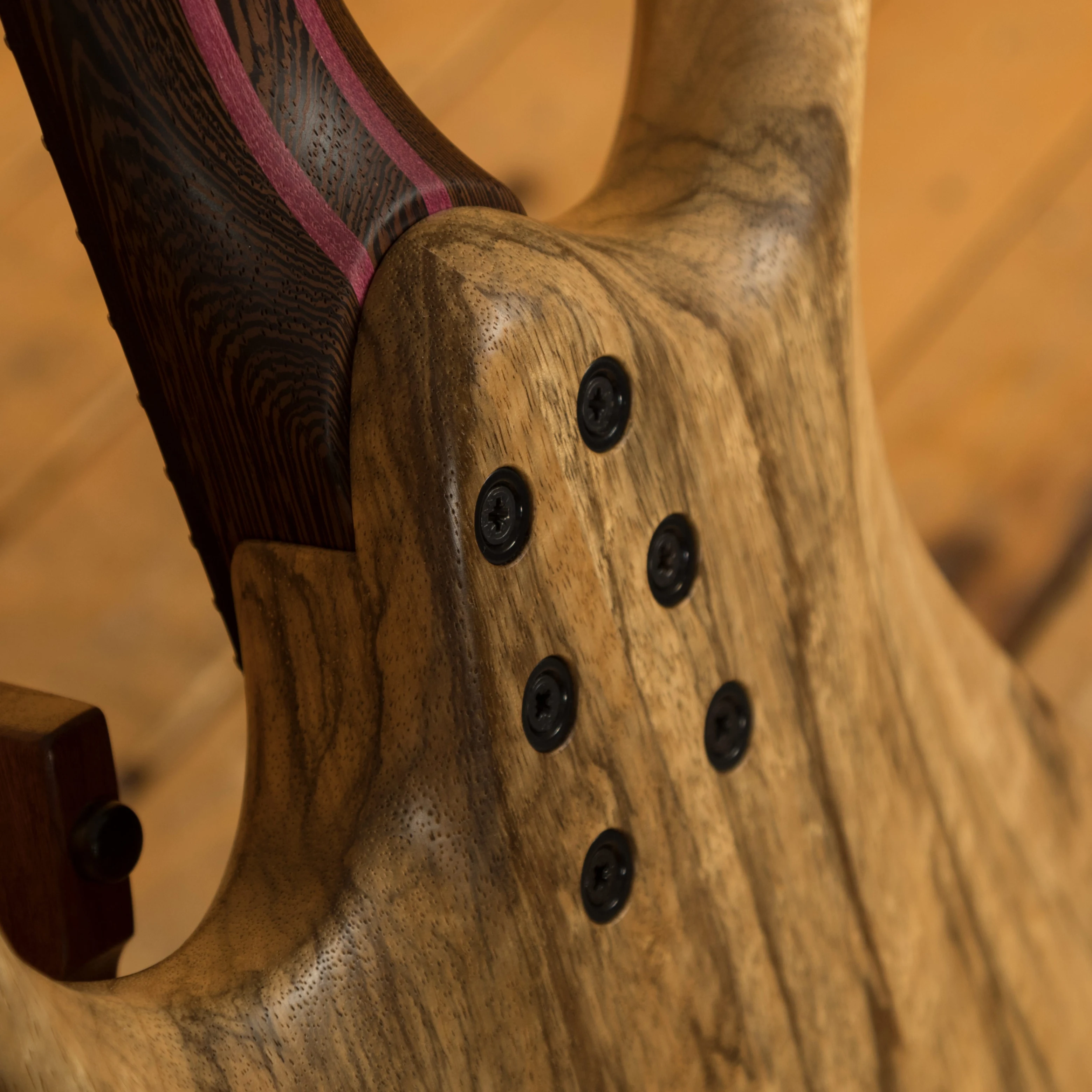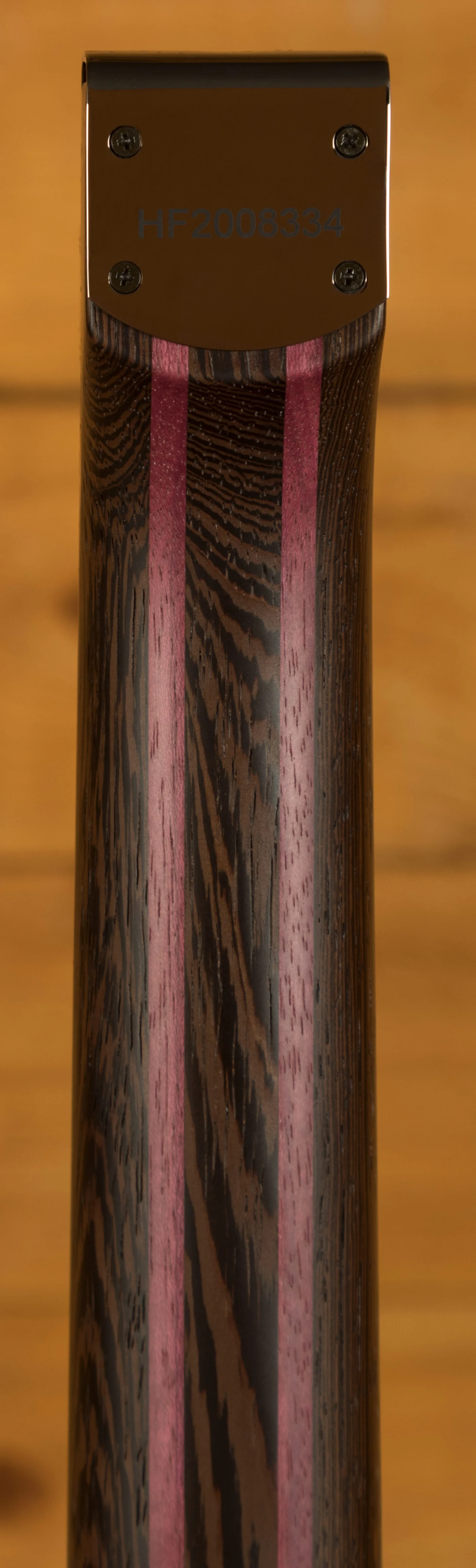 The Wenge/Purpleheart neck boasts a slick Ebony fingerboard, with stainless steel frets and a headless design, its comfortable and fast. The 16" radius feels great under hand and offers a platform perfect for both low end riffing and treble side lead work.