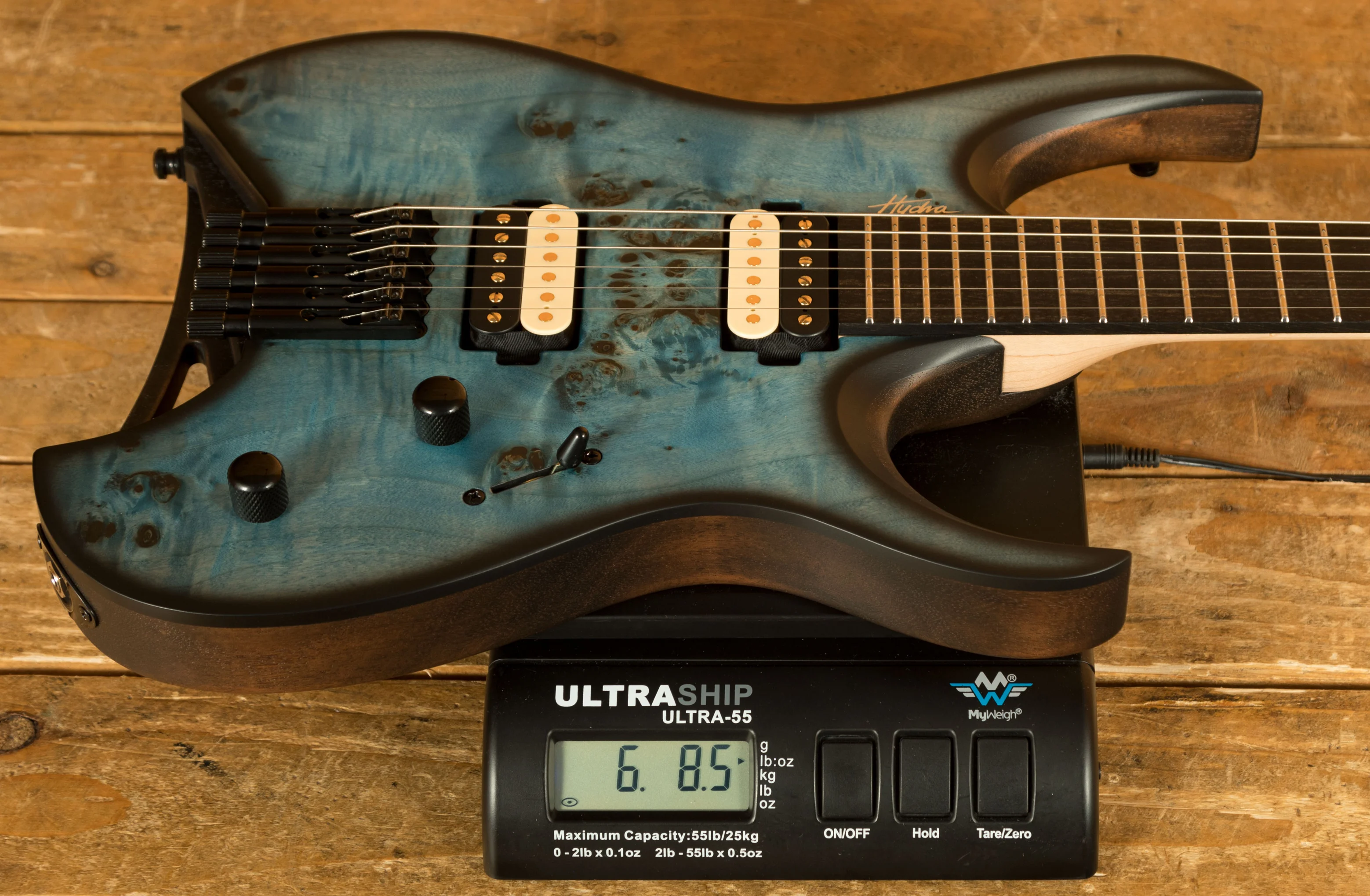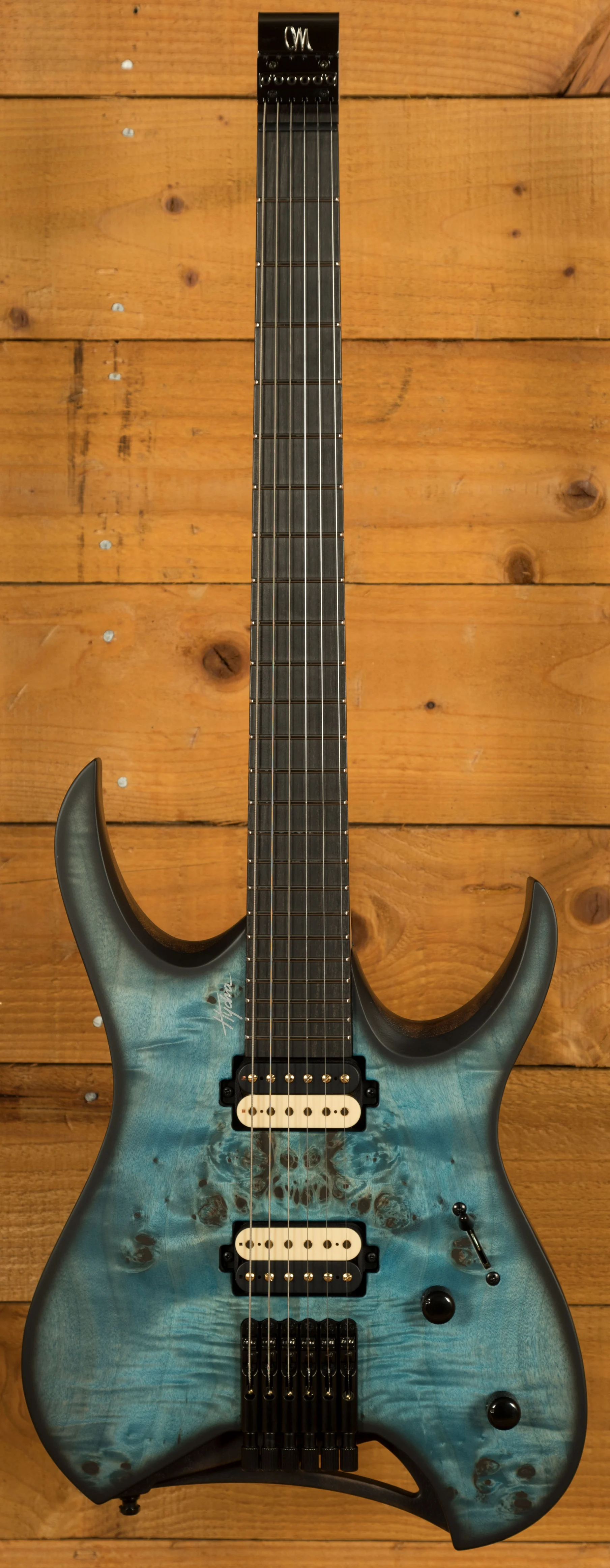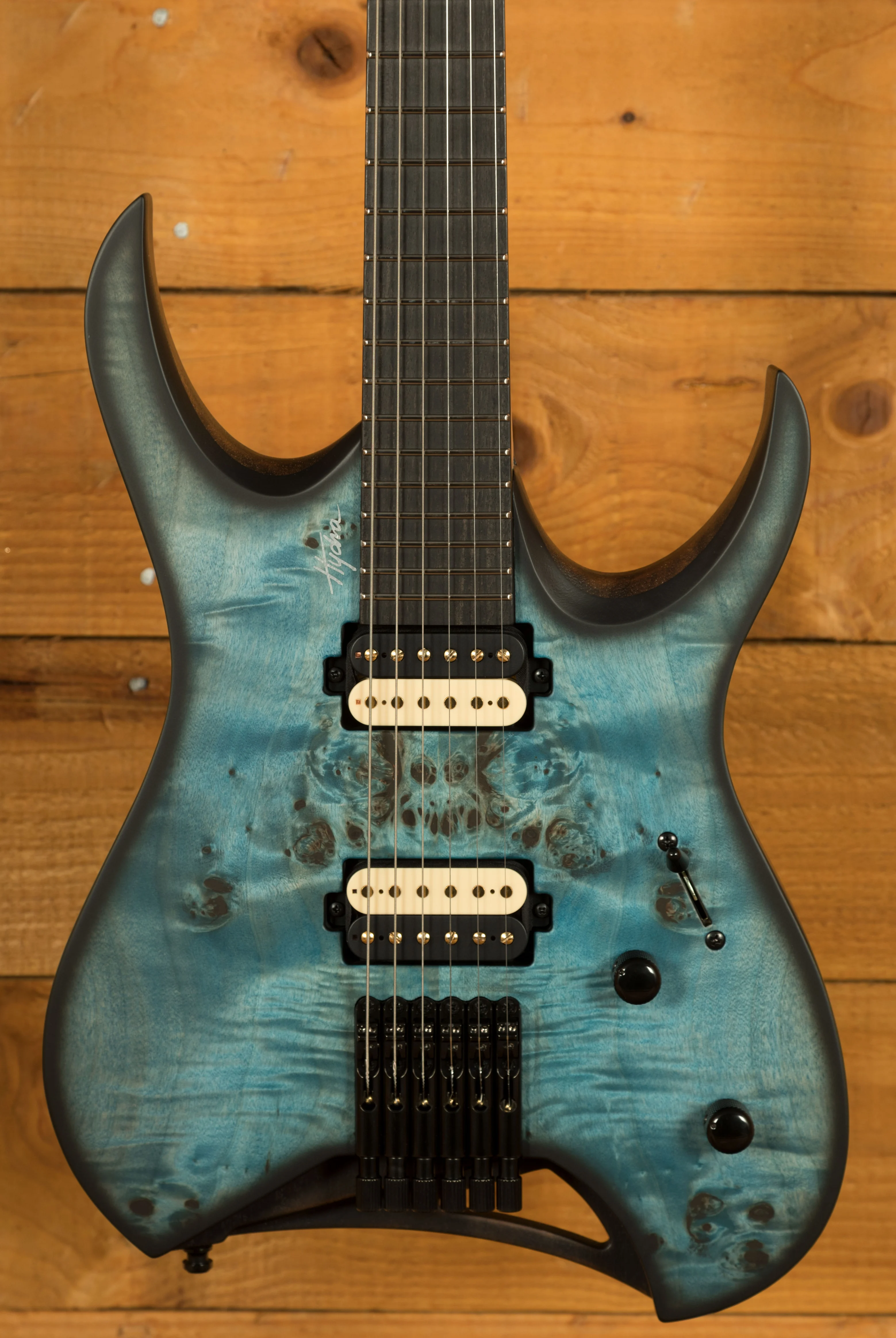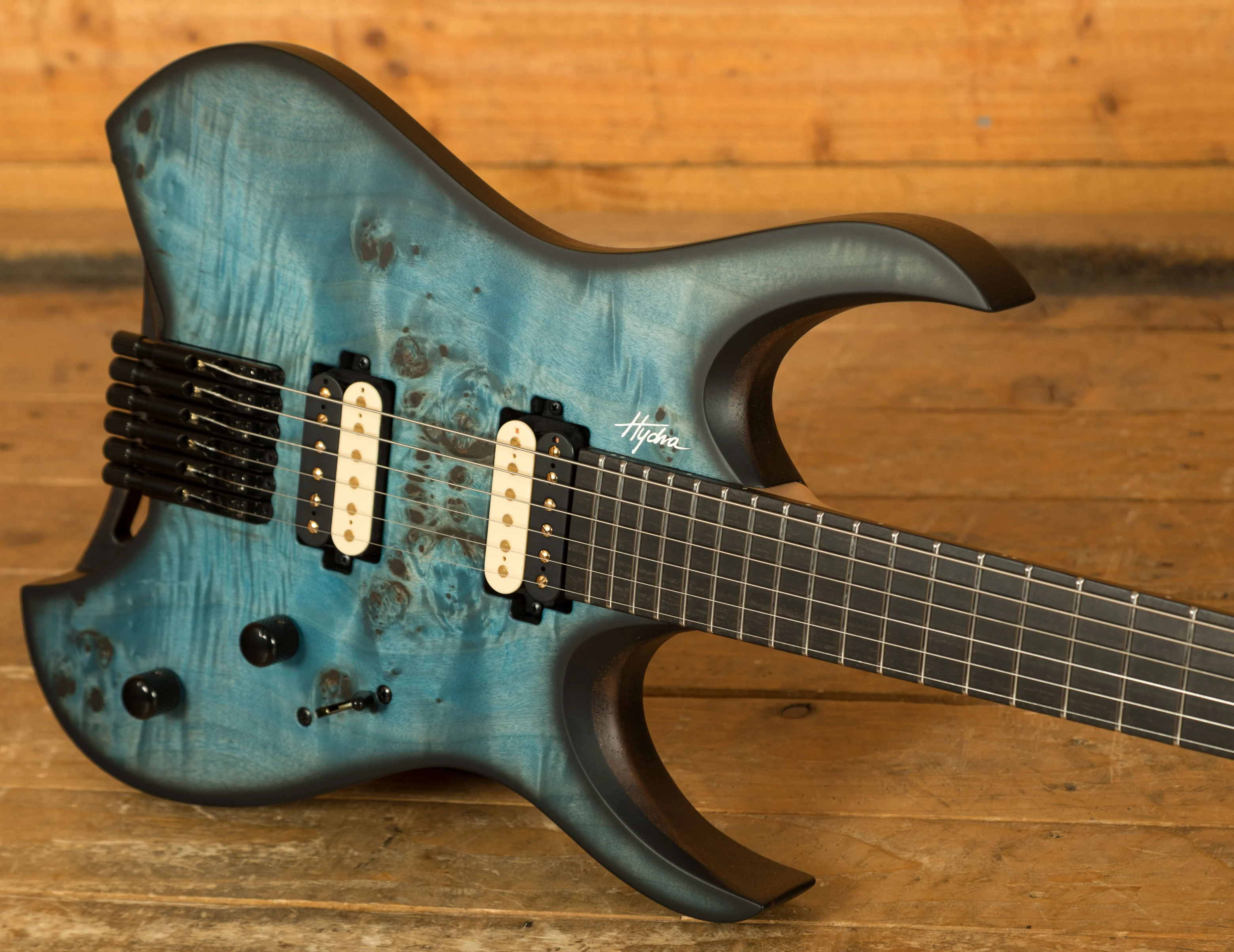 With a Mahogany Khaya body and 3A Eye Poplar top this Hydra looks and feels super slick! The Eye Poplar top is visually stunning and features an awesome Trans Aquamarine Satin finish, it's beautifully poised, balanced and allows great access right up the neck.