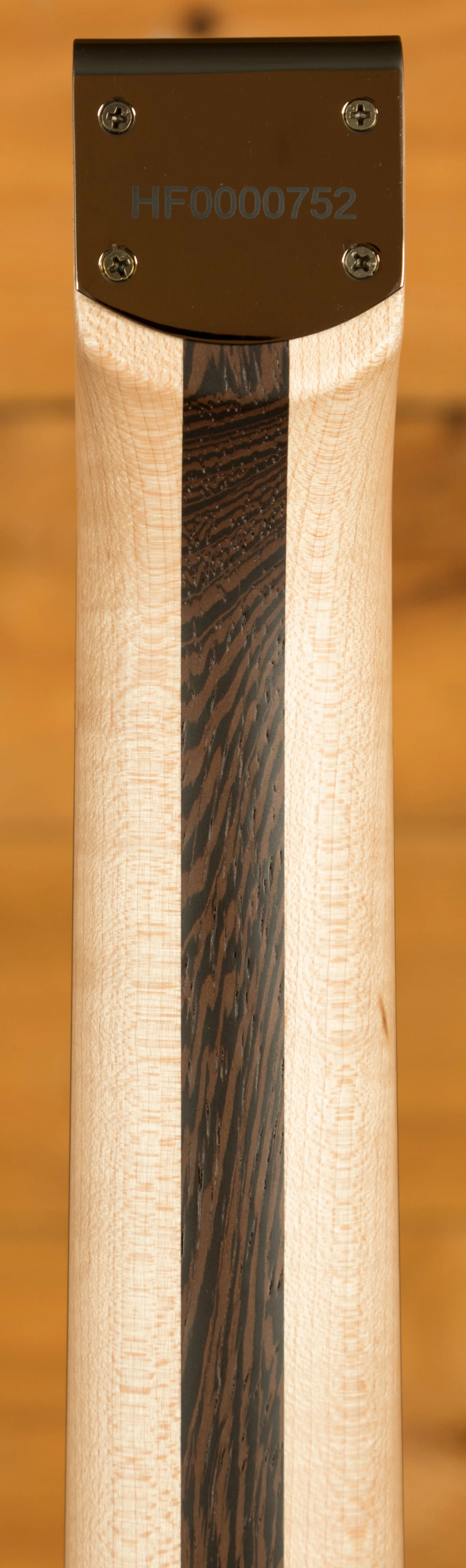 The 3-ply Maple and Wenge neck boasts a slick Ebony fingerboard, with stainless steel frets and a headless design, its comfortable and fast. The 16" radius feels great under hand and offers a platform perfect for both low end riffing and treble side lead work.
