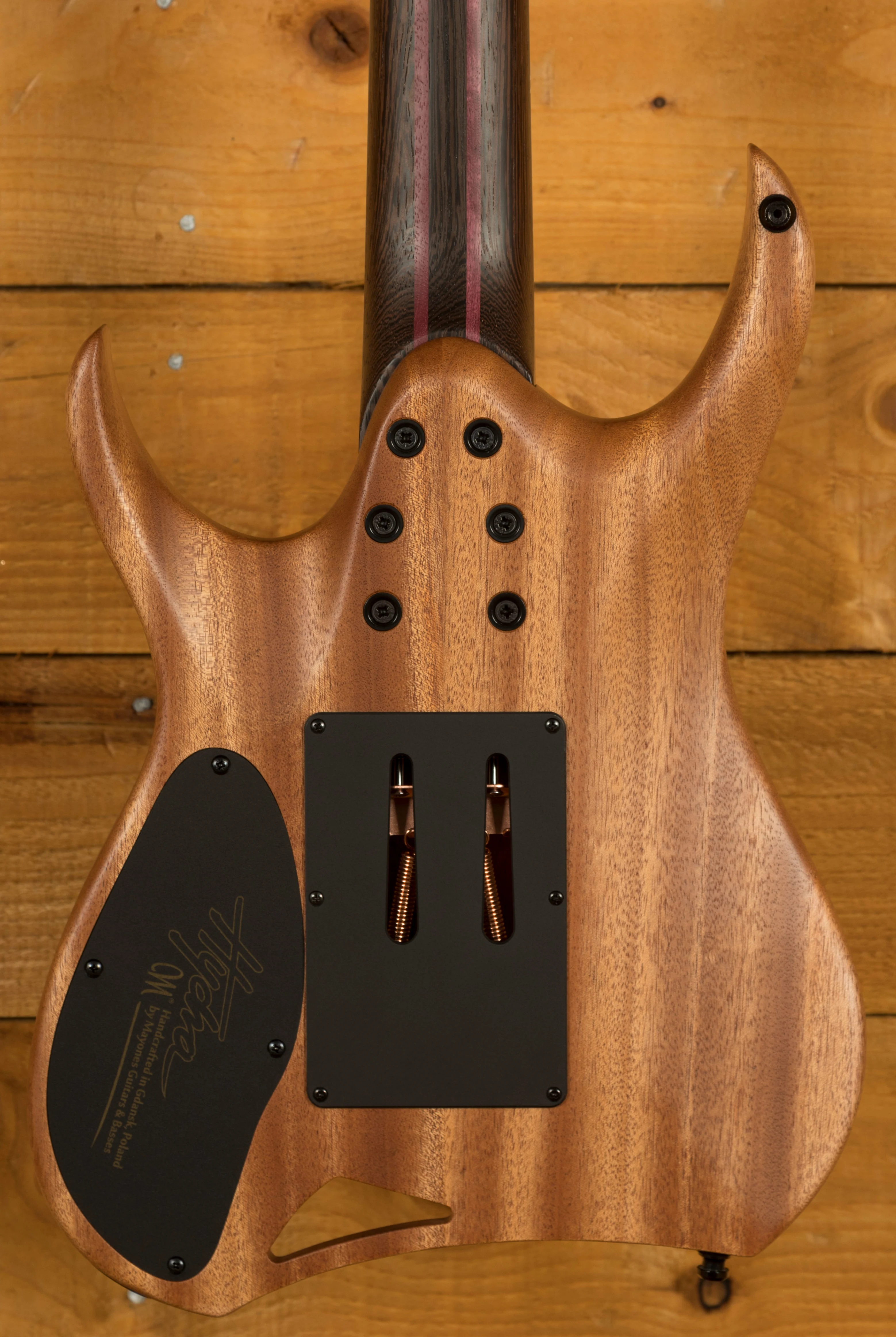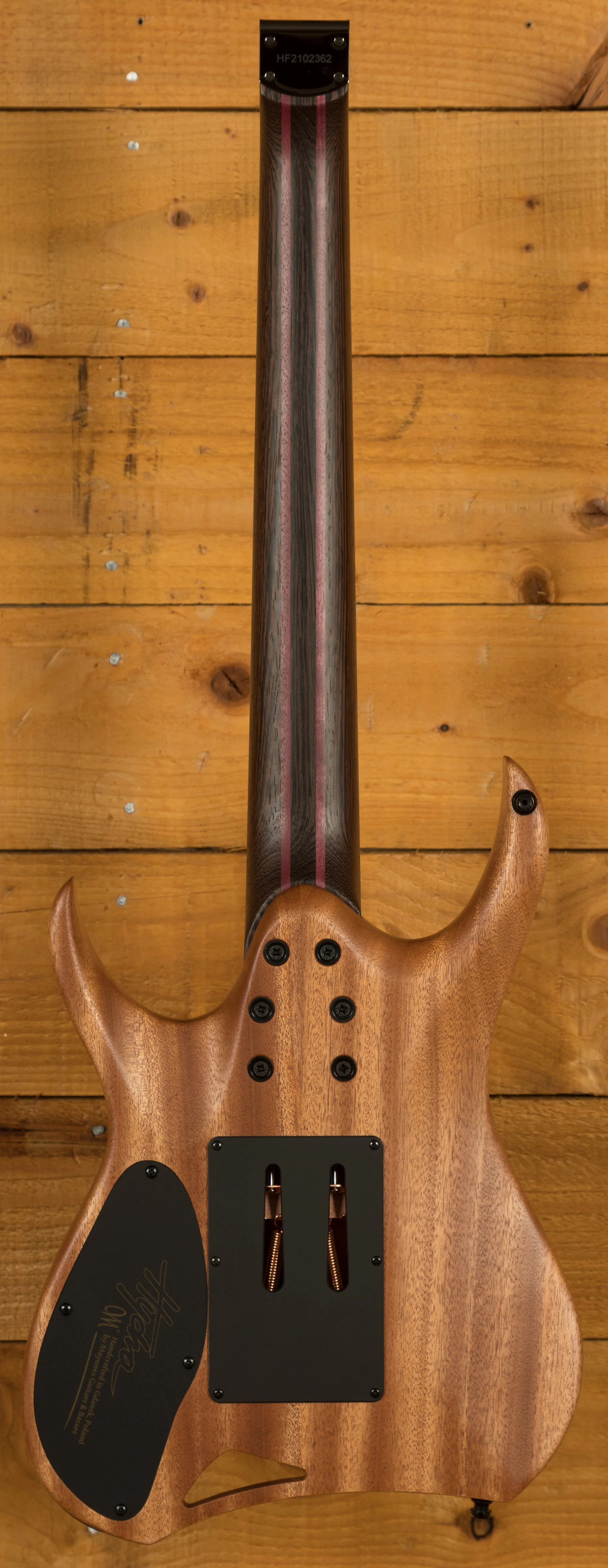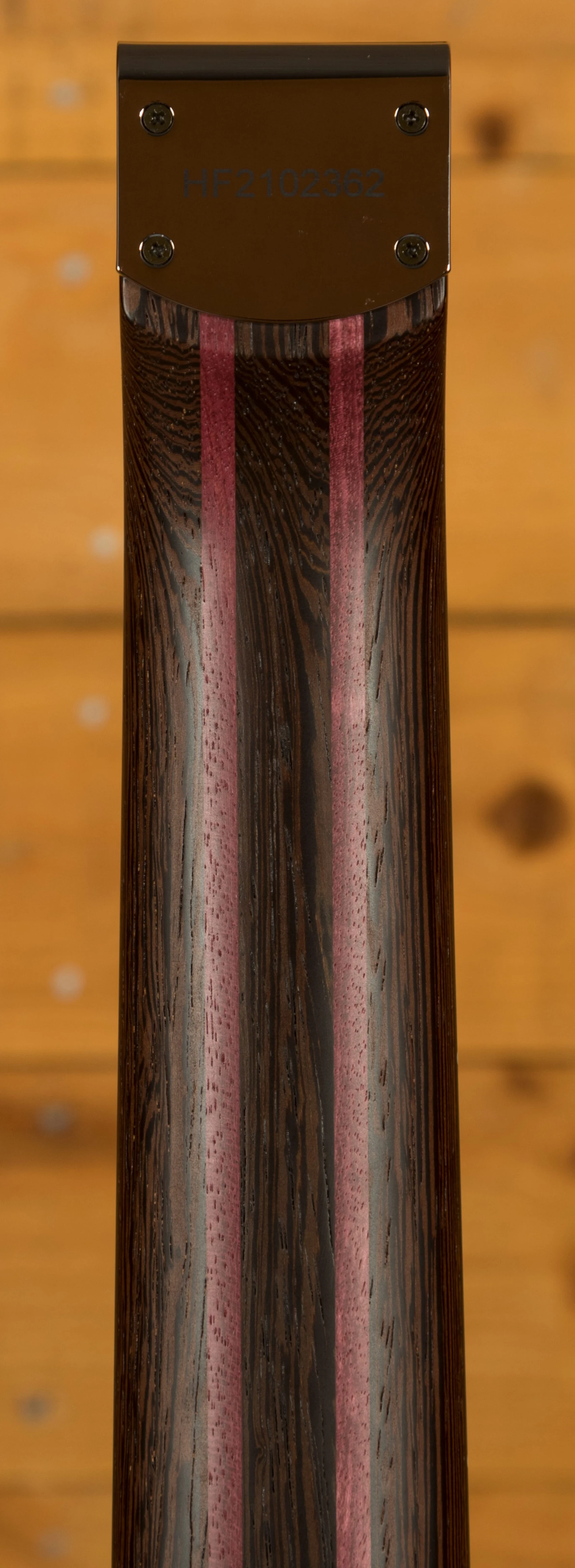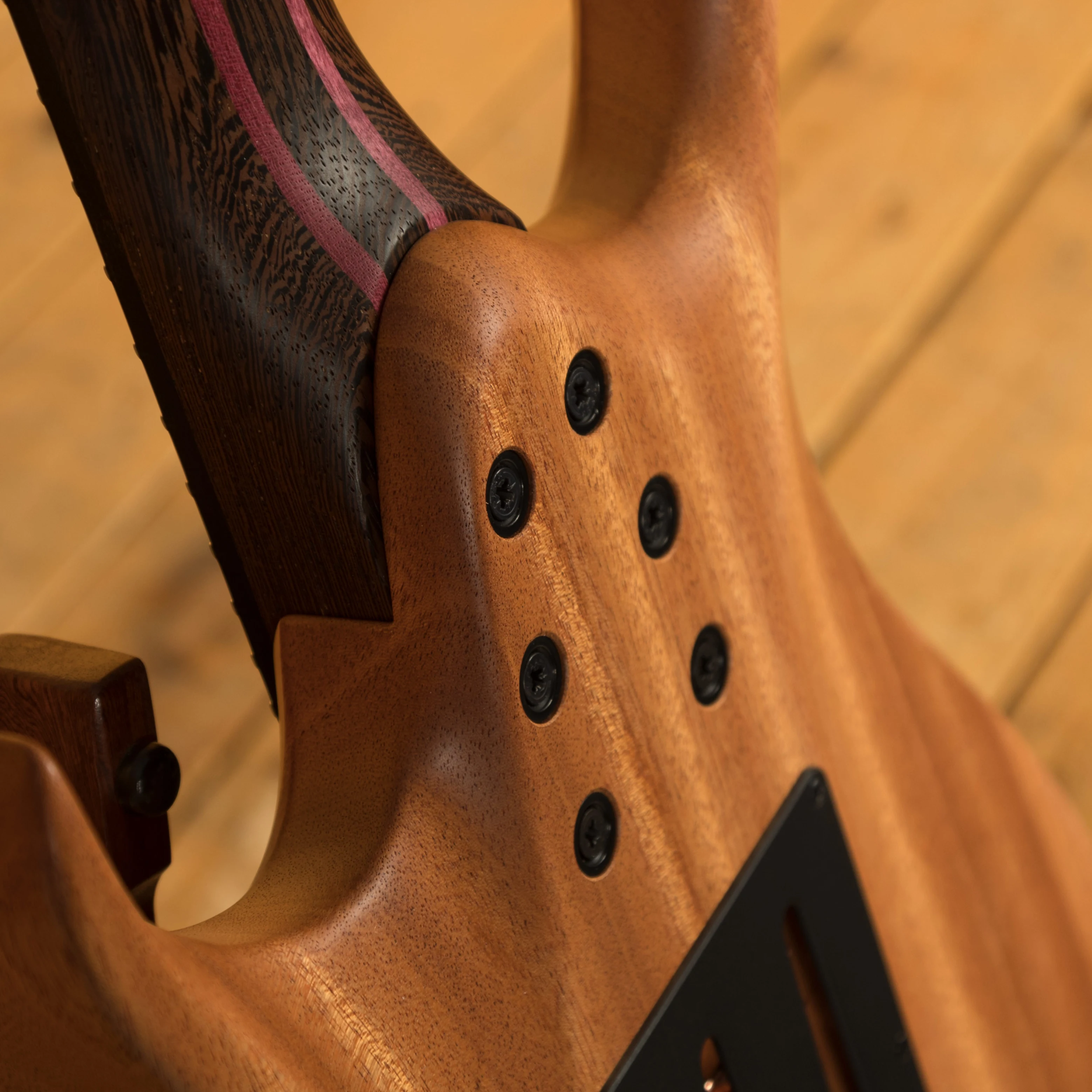 The Wenge dominant 5-ply neck boasts a slick Ebony fingerboard, with stainless steel frets and a headless design, its comfortable and fast. The 16" radius feels great under hand and offers a platform perfect for both low end riffing and treble side lead work.
