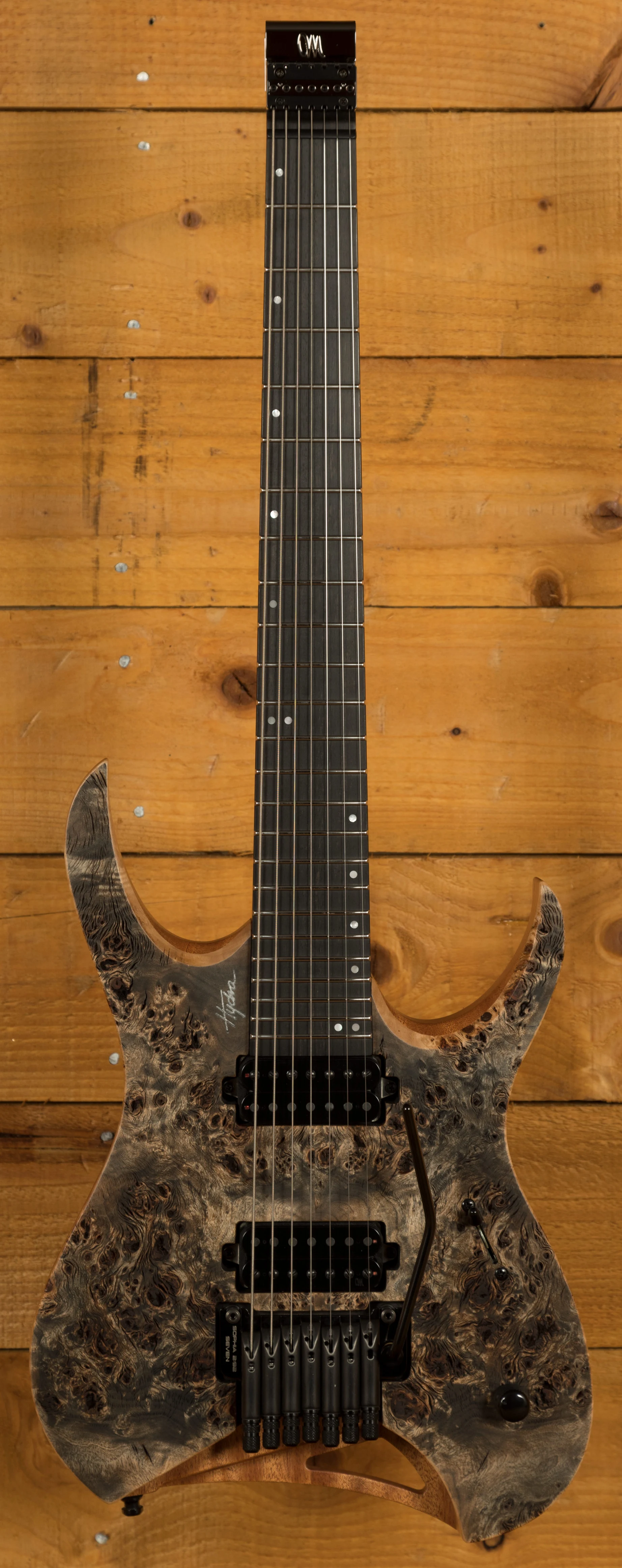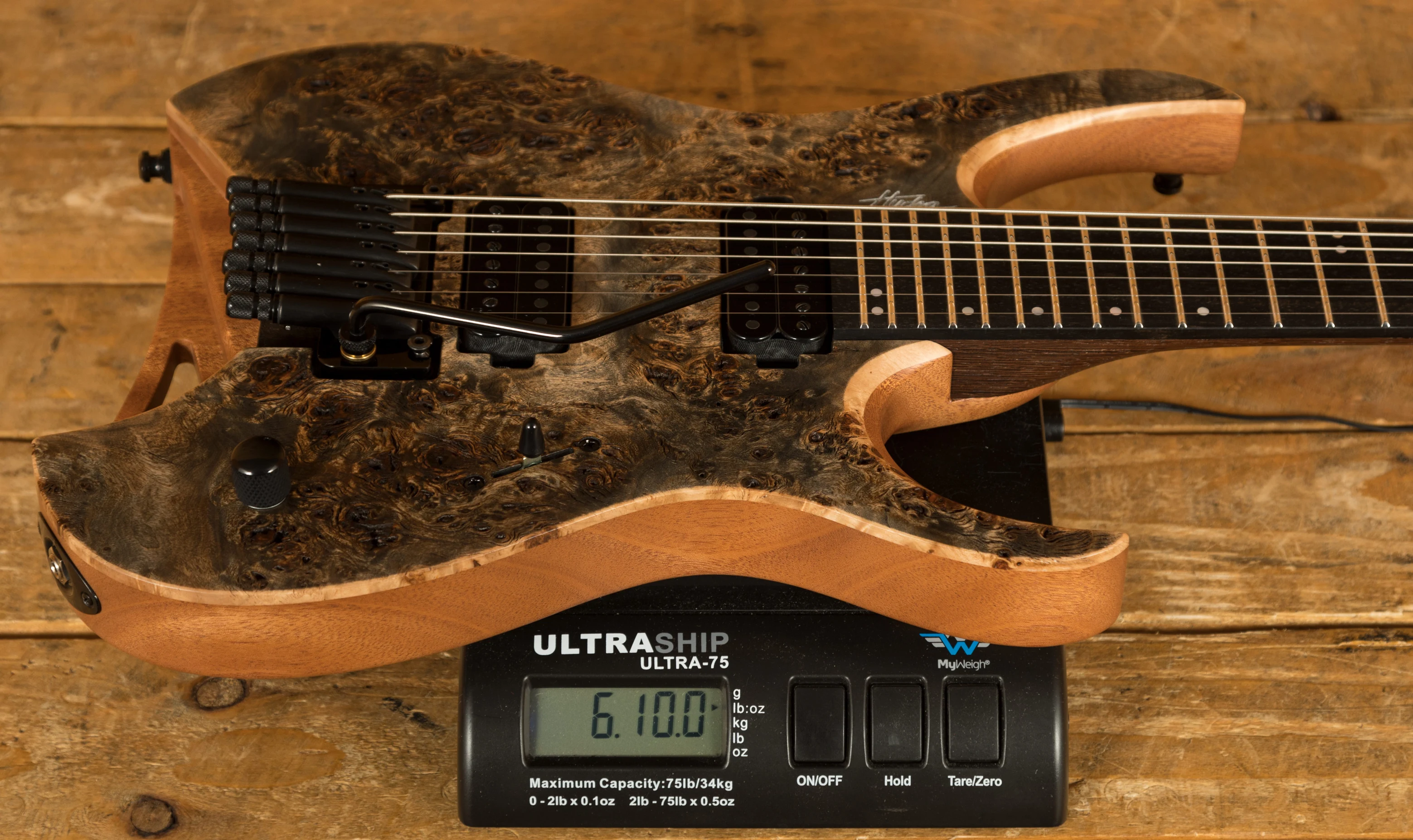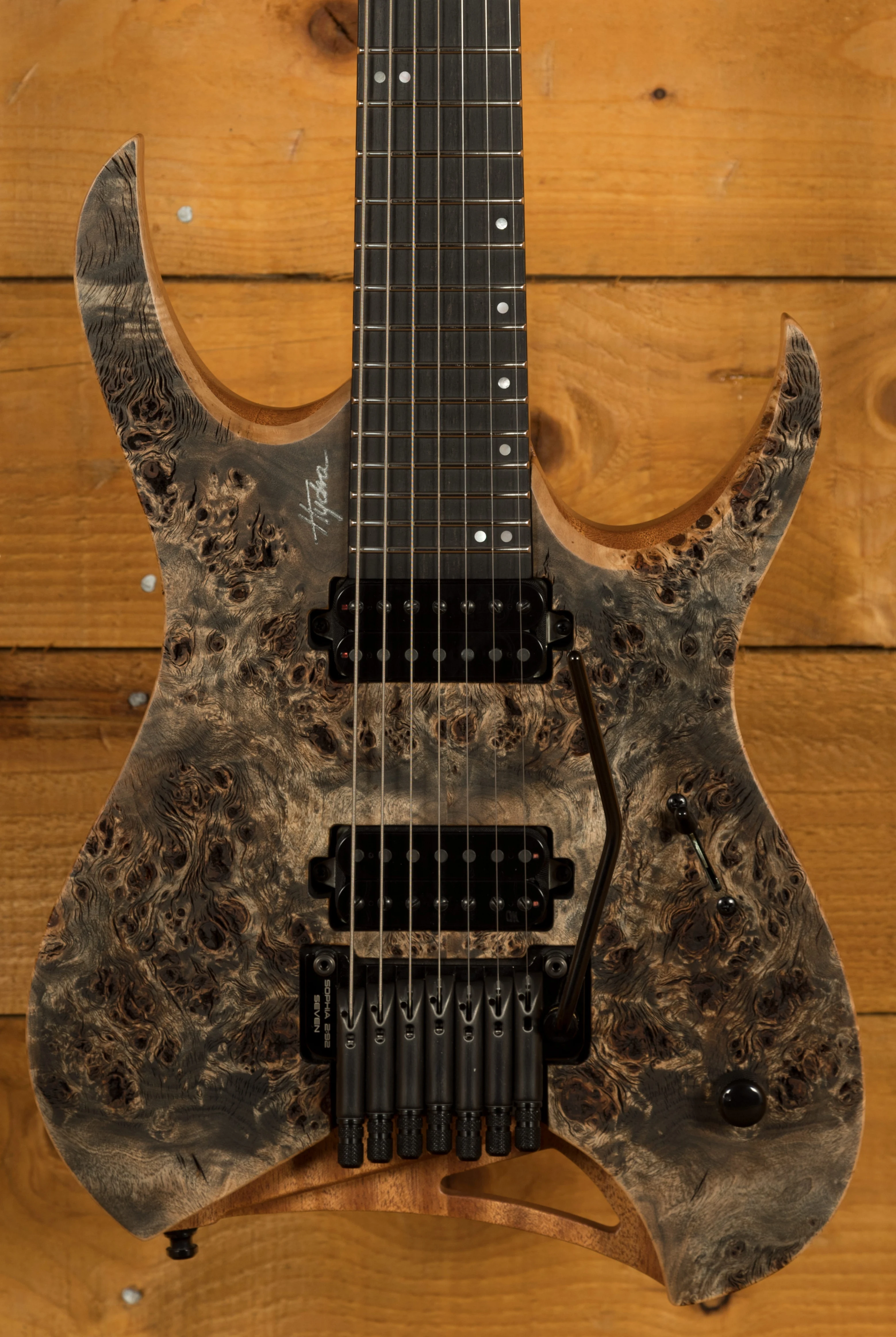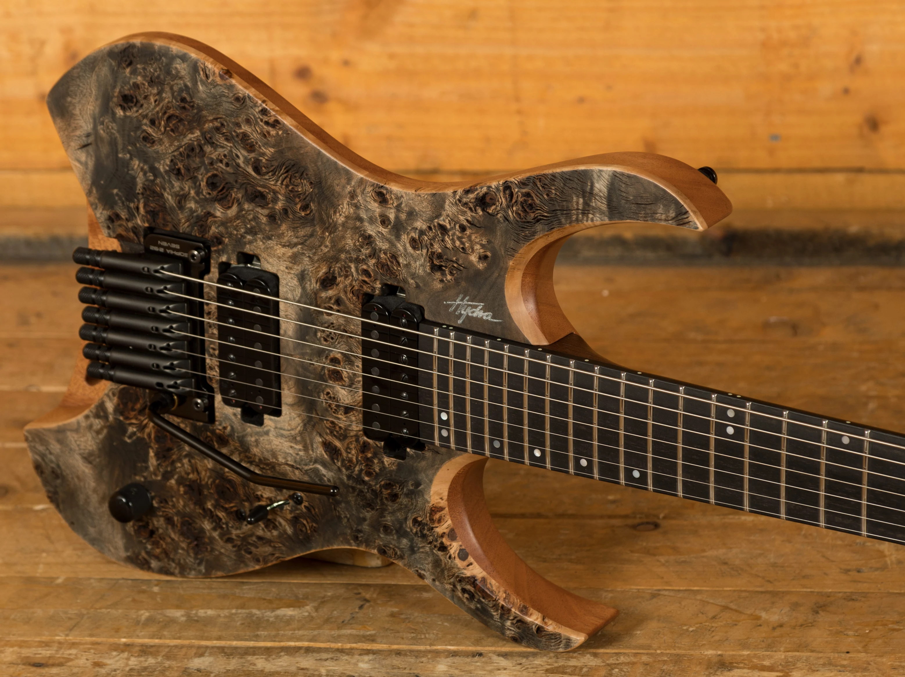 The Wenge dominant 5-ply neck boasts a slick Ebony fingerboard, with stainless steel frets and a headless design, its comfortable and fast. The 16" radius feels great under hand and offers a platform perfect for both low end riffing and treble side lead work.
