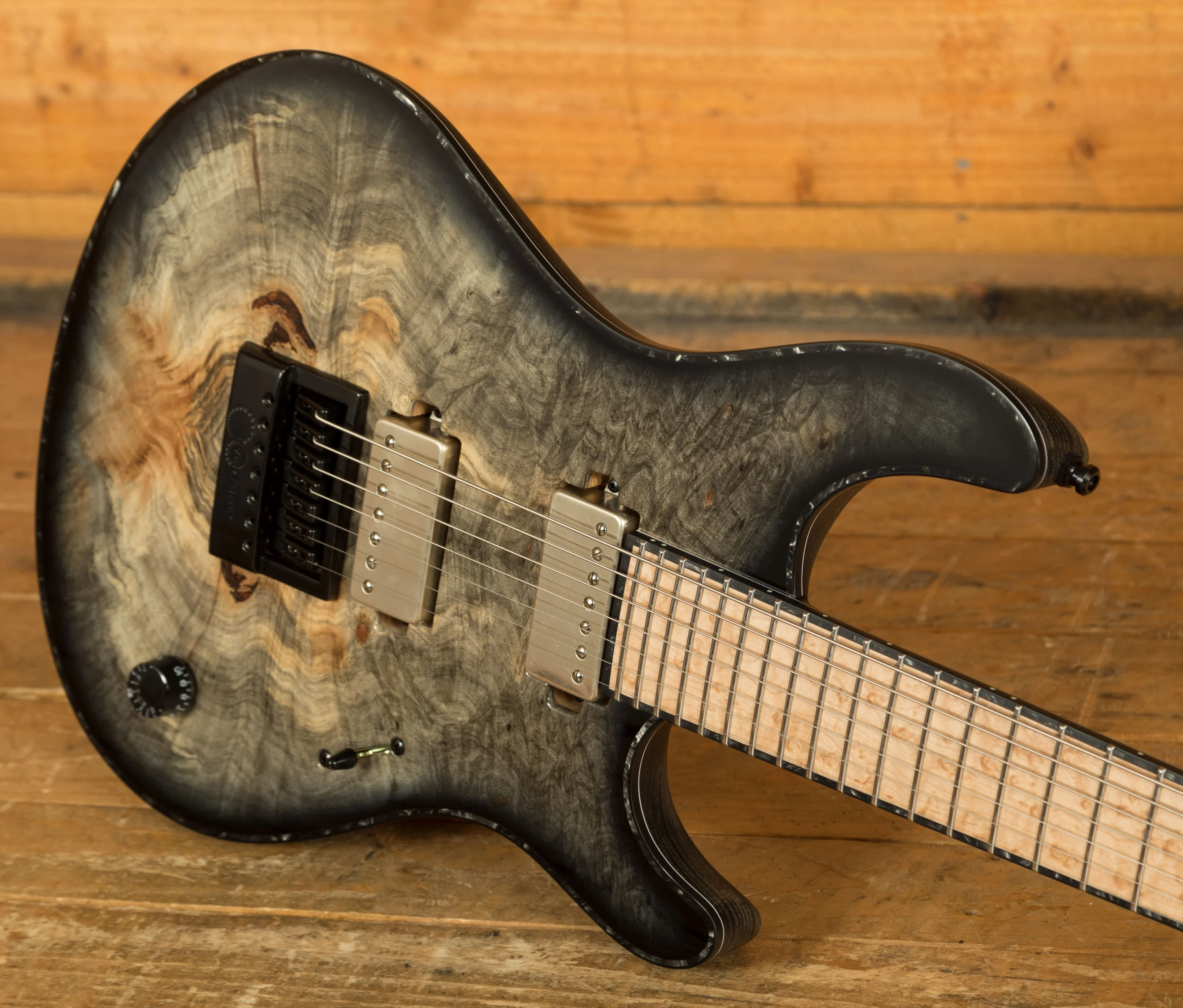 With a profiled Swamp Ash body, the Regius benefits from a Master Grade Buckeye Burl top finished with a slight Black Burst around the edges. It really allows you to really appreciate the quality of the top. Mayones spend months hand selecting wood for their builds, this top really is as good as it gets! It's beautifully poised, balanced and allows great access right up the neck.