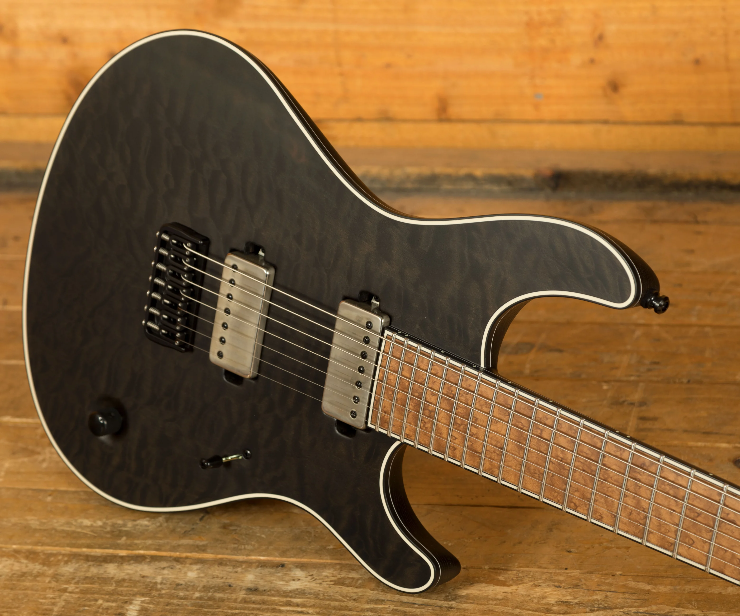With a profiled Swamp Ash T.E.W body, the Regius benefits from a 4A T.E.W Quilted Maple top with an Antique Black Matte finish. This really allows you to appreciate the quality of the top. It's beautifully poised, balanced, and allows great access right up the neck.