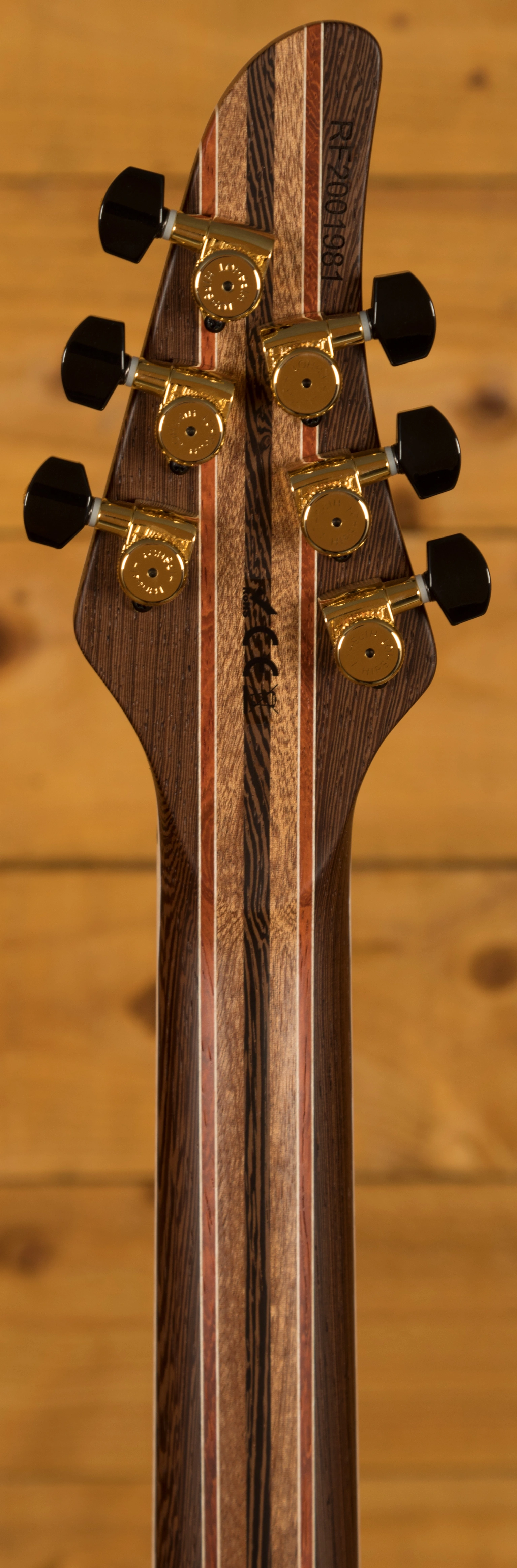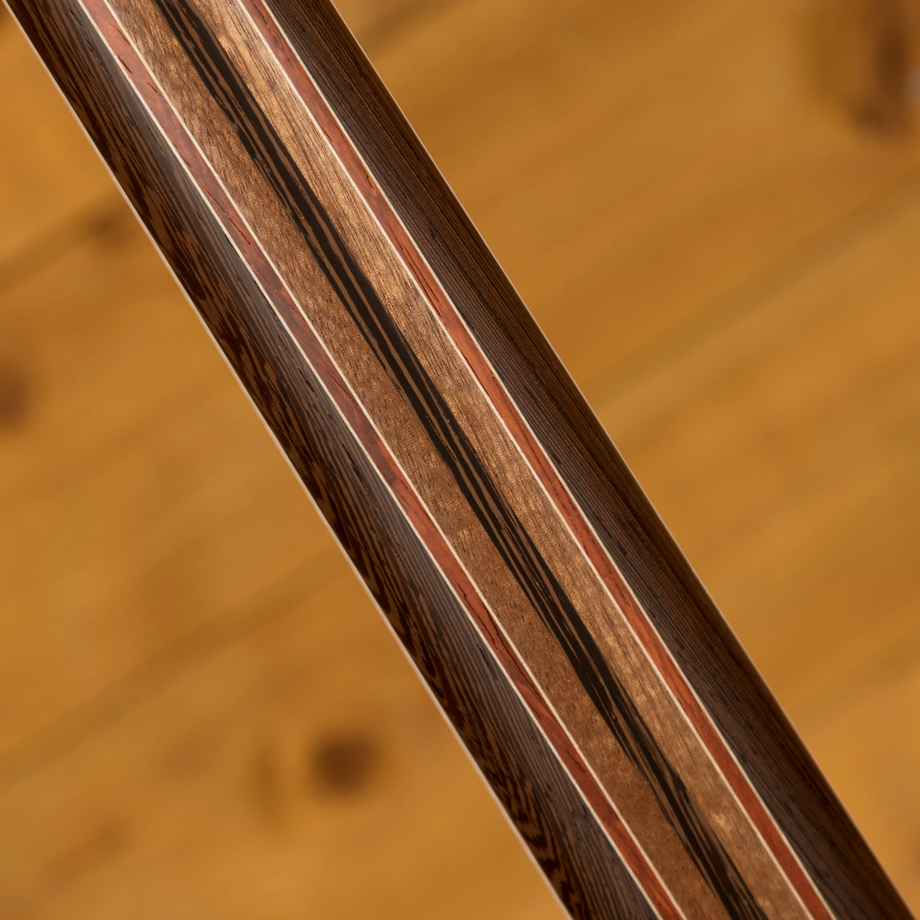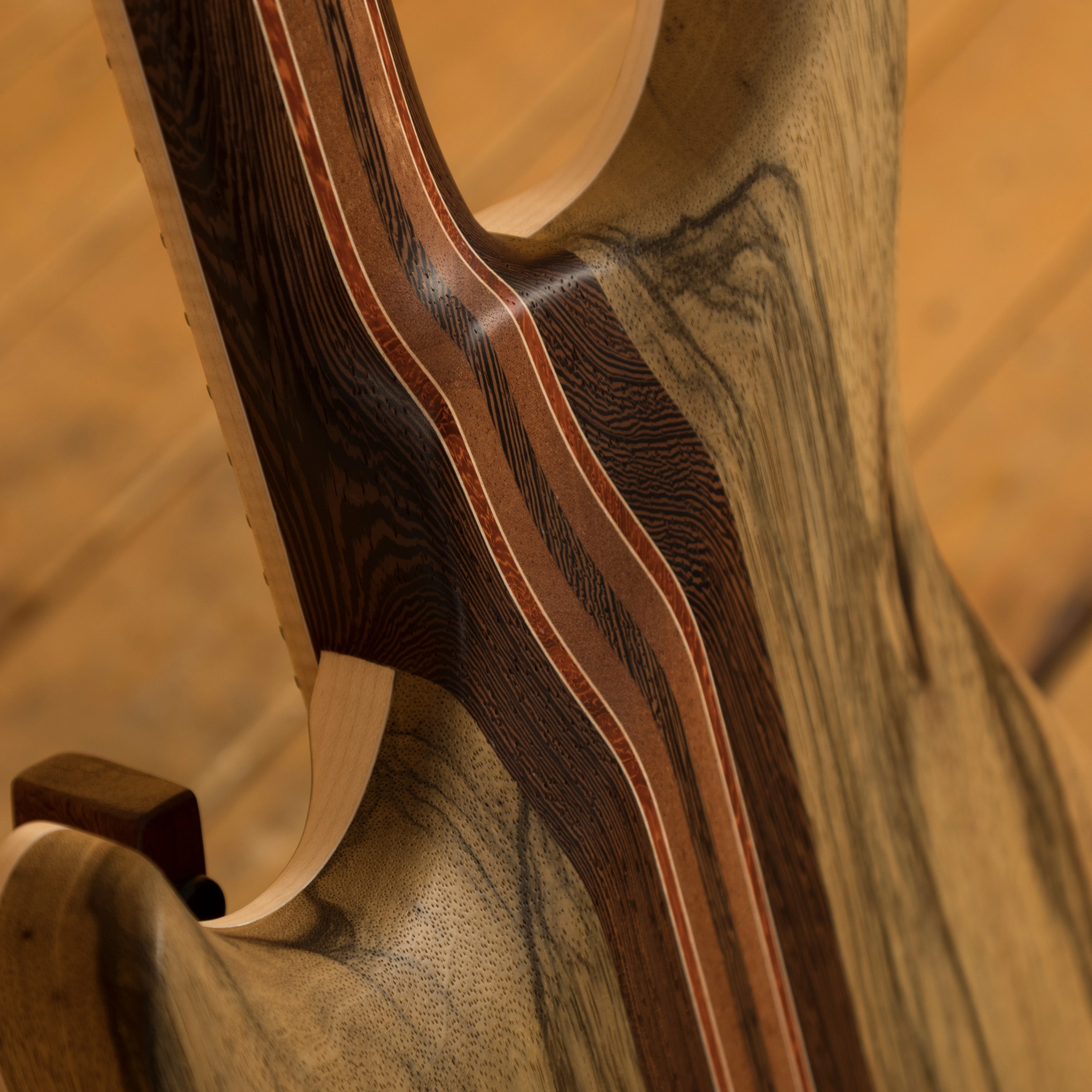 The Wenge/Purpleheart Exotic neck thru body boasts an incredible Birdseye Maple fingerboard, with stainless steel frets and a 25.4" scale length, its comfortable and fast. The 16" radius feels great under hand and offers a platform perfect for both low end riffing and treble side lead work.