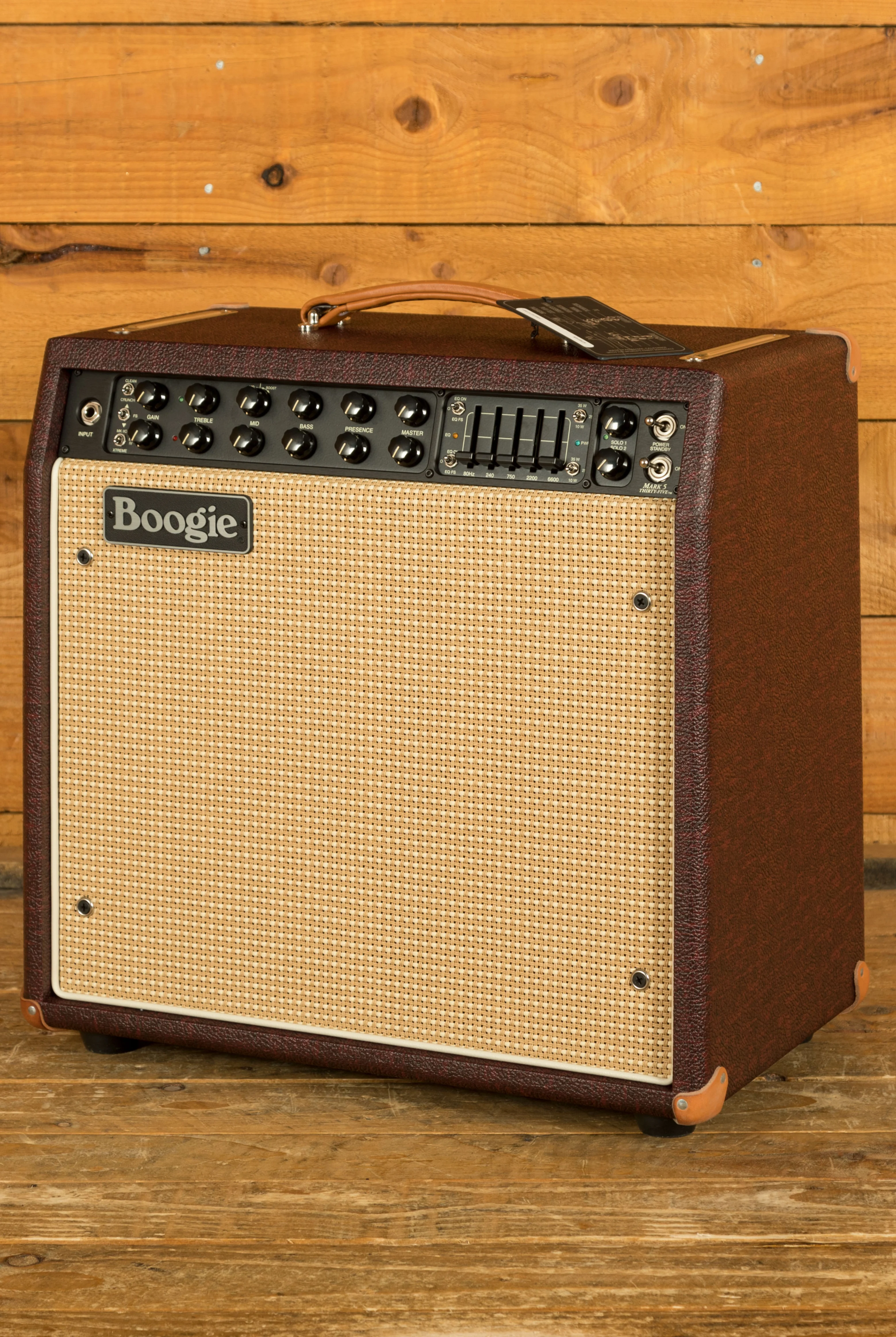 The Mark Five: 35 brings added dynamic headroom and adaptability to the series, its amazing just how much MESA fit into these amps. With Channel 1 sporting Clean, Fat, or Crunch modes, Channel 2's modes bring players either the Mark IIC+, Mark IV, or Extreme options. Each channel features independent Gain, Treble, Mid, Bass, Presence, Master volume, Reverb, Solo Boost, Graphic EQ switches, and 10/25/35 W power mode switches.