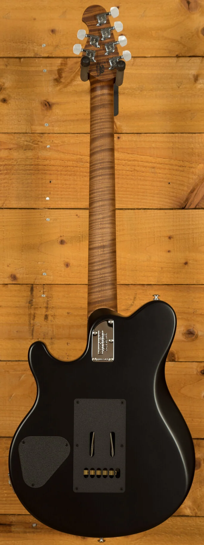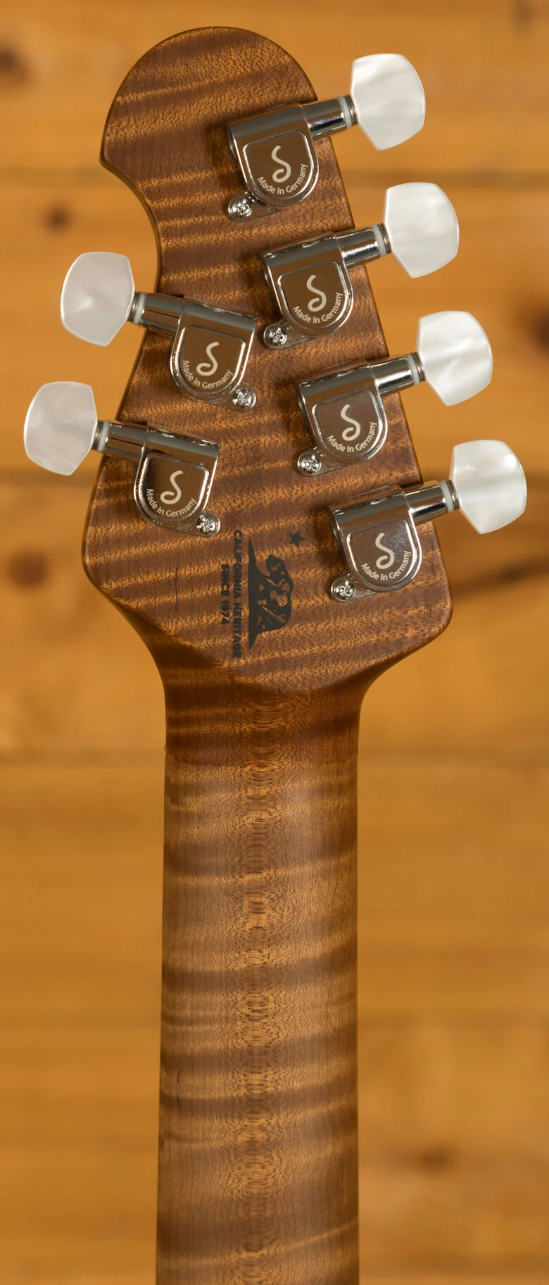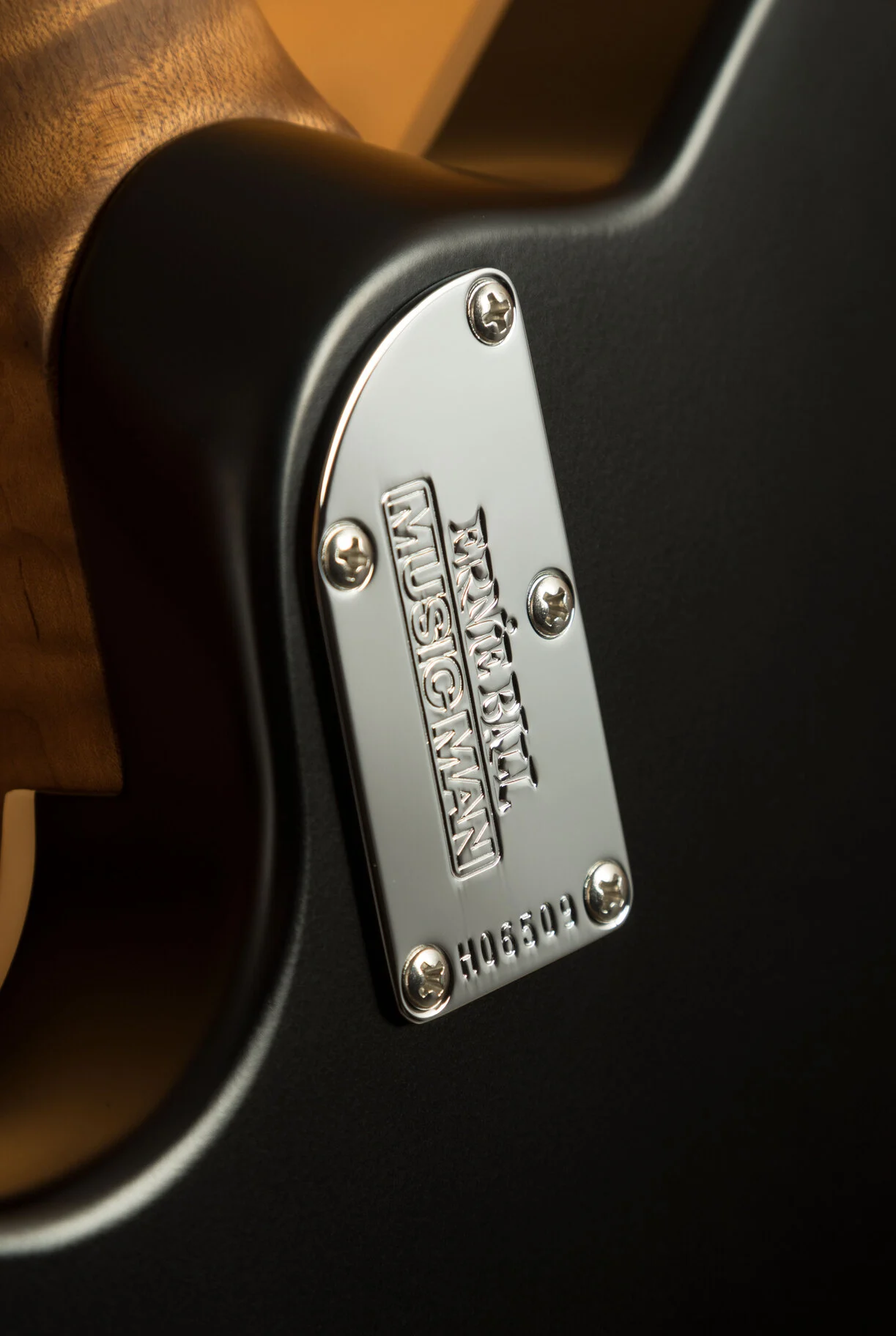 At Ernie Ball Music Man, only the finest materials make the cut. Sustainably sourced tonewoods, including hand-selected basswood and premium figured maple, are chosen for their beauty and tonal richness. The roasted maple neck is finished with a gunstock oil and hand-rubbed special wax blend, ensuring a smooth, fast-playing surface.