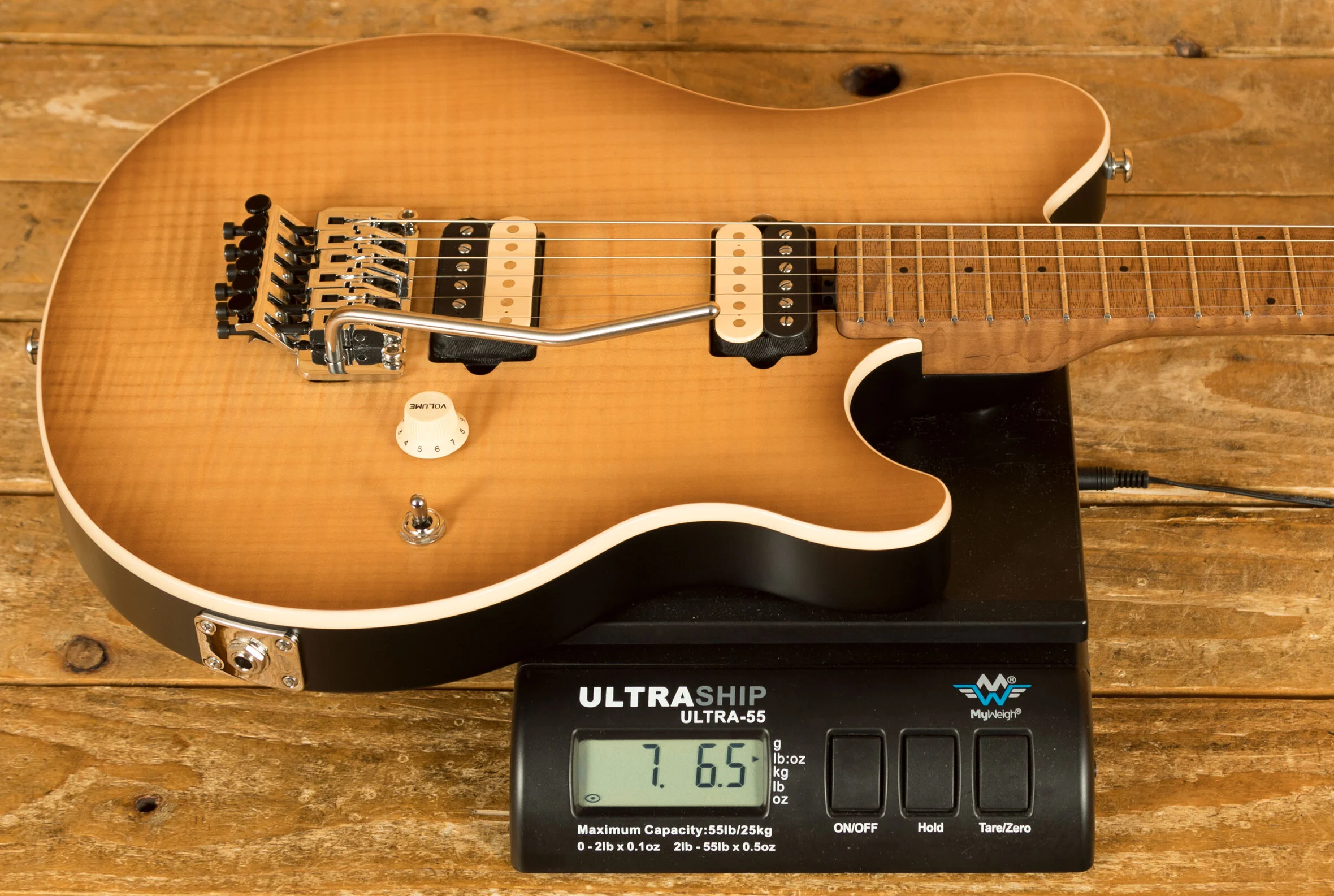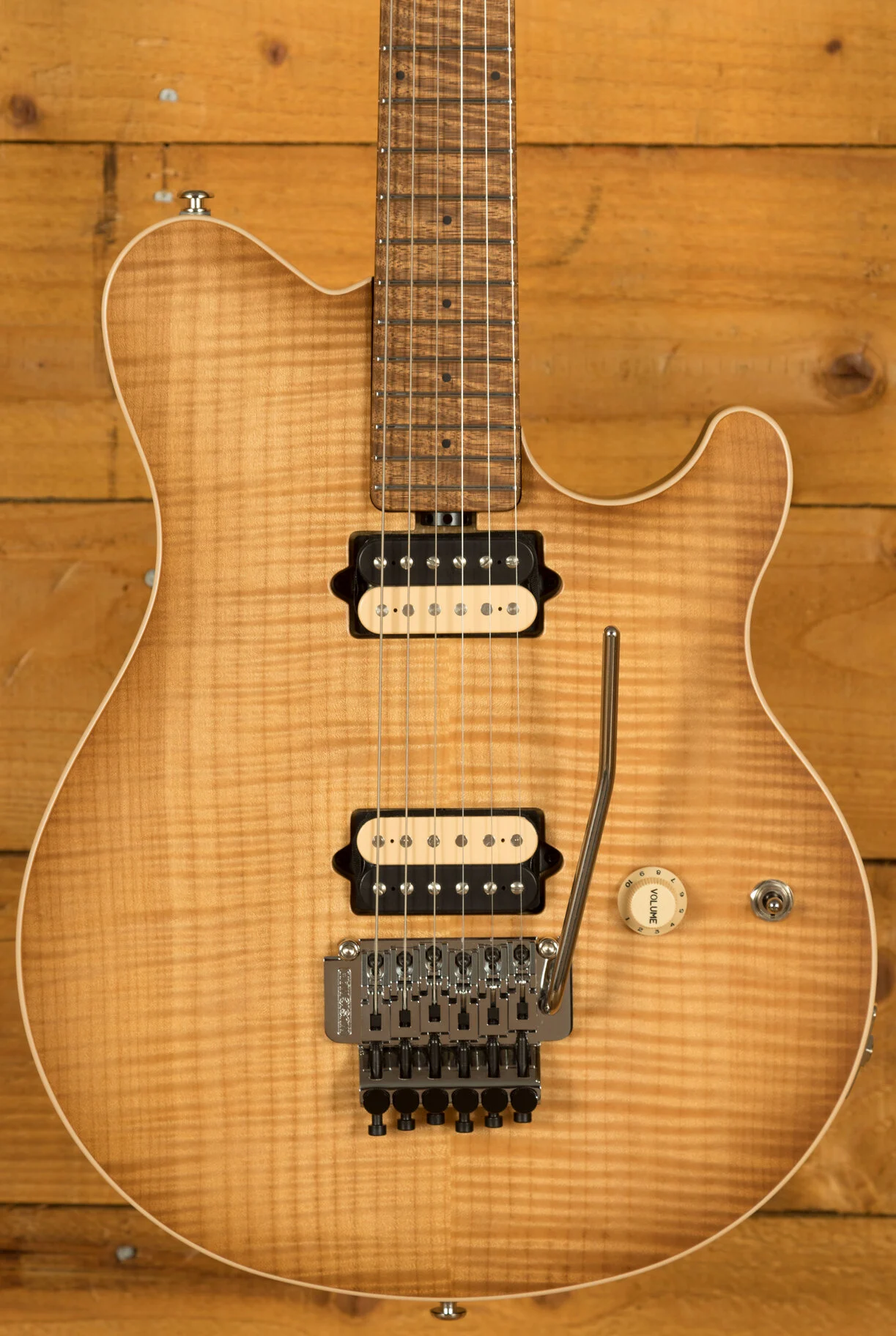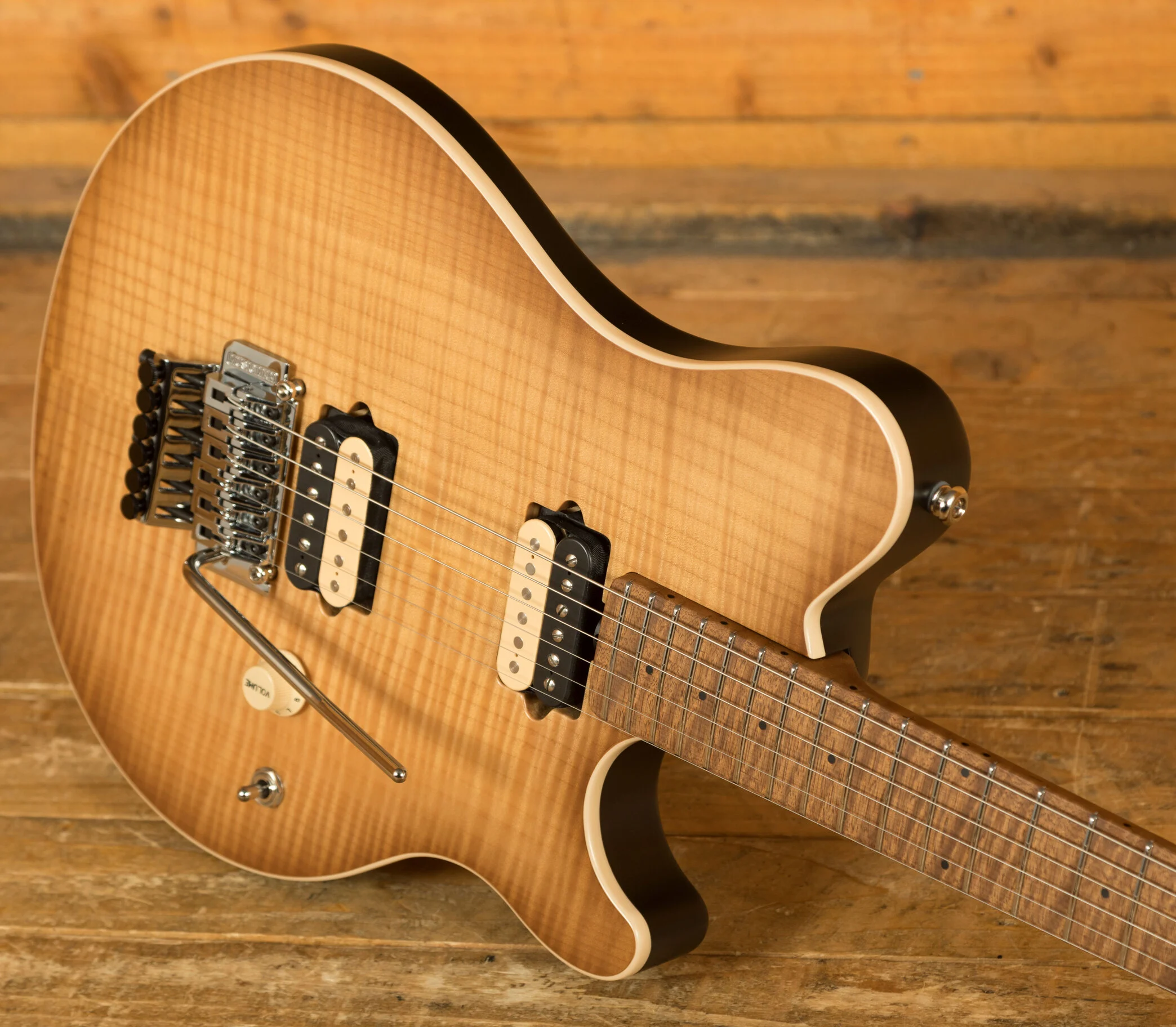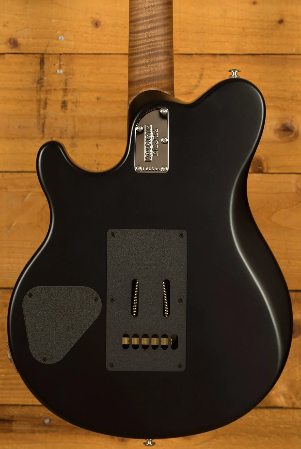 At Ernie Ball Music Man, only the finest materials make the cut. Sustainably sourced tonewoods, including hand-selected basswood and premium figured maple, are chosen for their beauty and tonal richness. The roasted maple neck is finished with a gunstock oil and hand-rubbed special wax blend, ensuring a smooth, fast-playing surface.