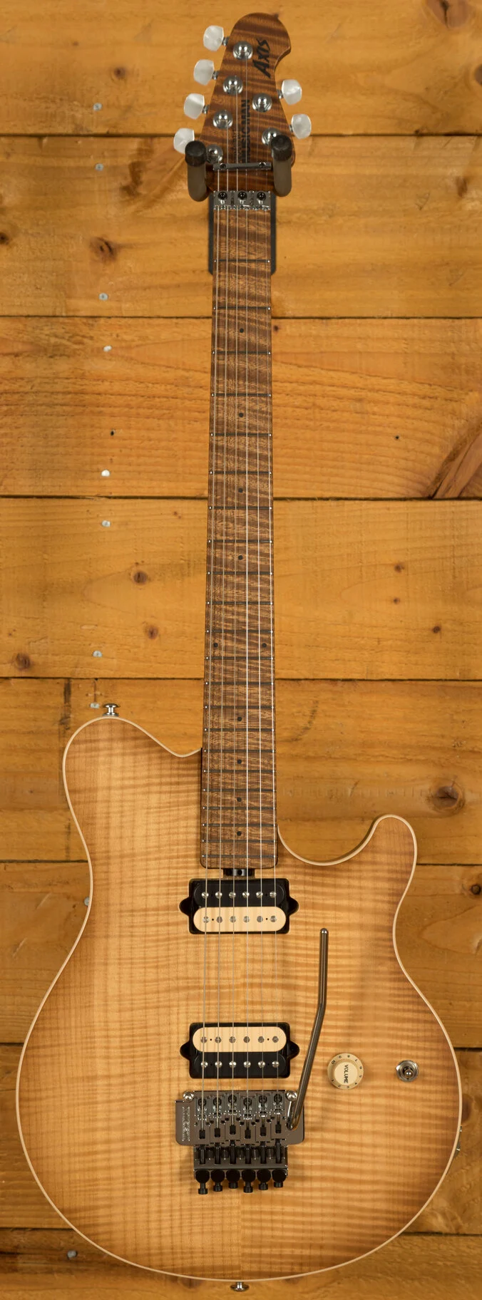 The Axis boasts a perfectly balanced, single-cutaway body design, allowing for unparalleled access to all 22 stainless steel frets. Its basswood body, crowned with a bookmatched figured flame maple top, delivers a rich, resonant tone with an eye-catching aesthetic that will turn heads on any stage.