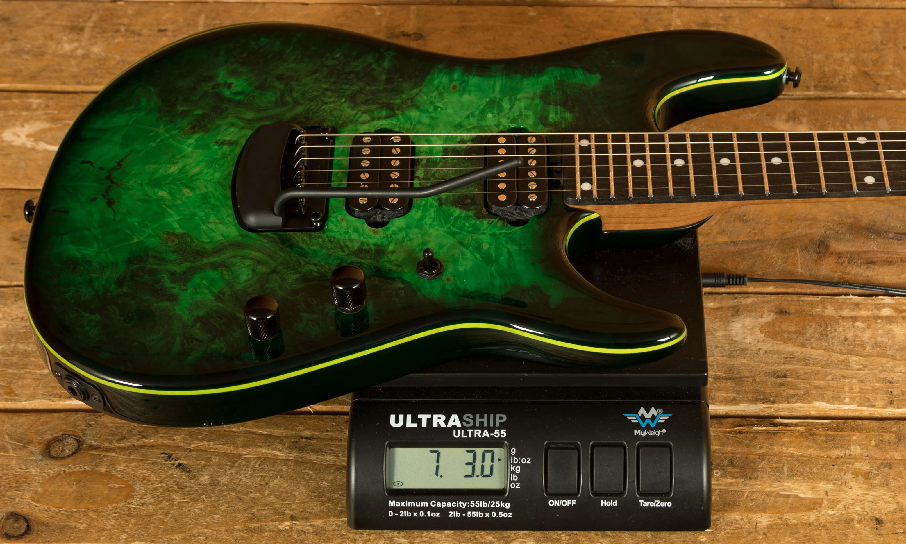 It's well worth pointing out the advantages of buying this guitar through us. Not only does our studio photography reveal the beautiful burl top of this exact guitar, but you can also see how dark the fingerboard is and how beautiful the flame is on the back of the neck. Also, our full-time techs will meticulously set this instrument up so that it plays perfectly straight out the box. An instrument like this is built for technical precision, so why fall down at the last hurdle? In the time since this guitar was made in America, it's changed humidities and climates and undoubtedly the neck will have moved. Our techs will make sure that the neck, intonation and trem system are all done to perfection. This alleviates any risk when buying a top-class instrument such as this. Also, don't forget that if you use a custom tuning or string gauge you are welcome to get in touch with us after purchasing the instrument and we will accommodate your choice absolutely free of charge.