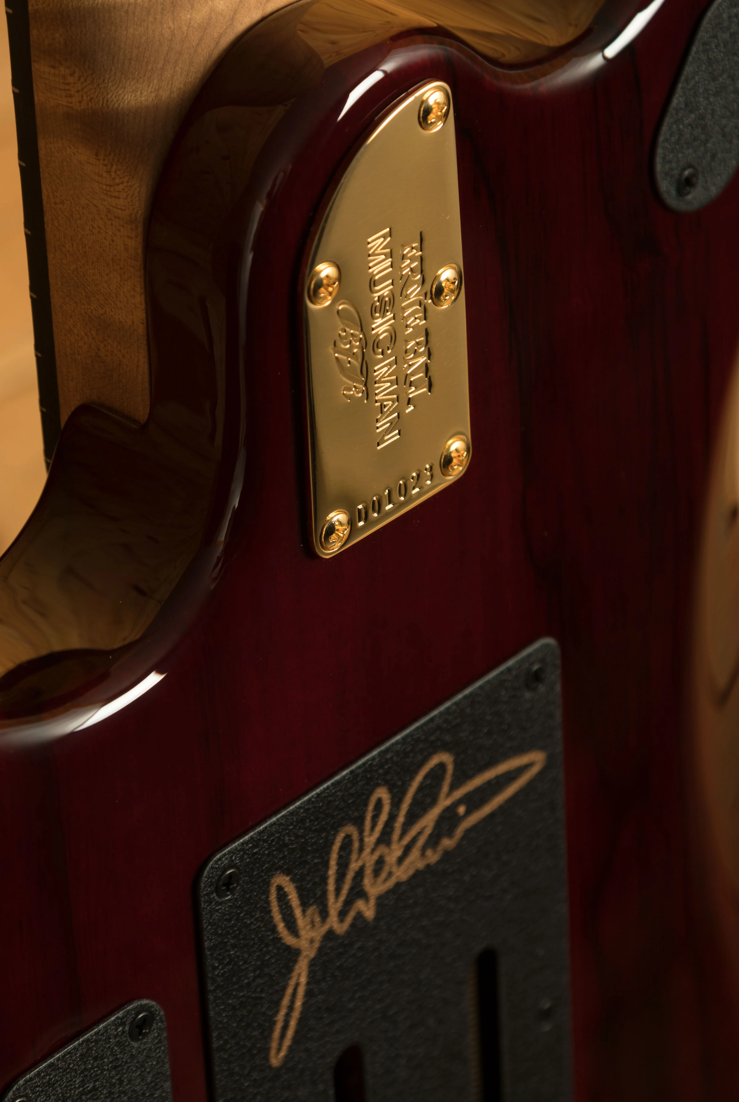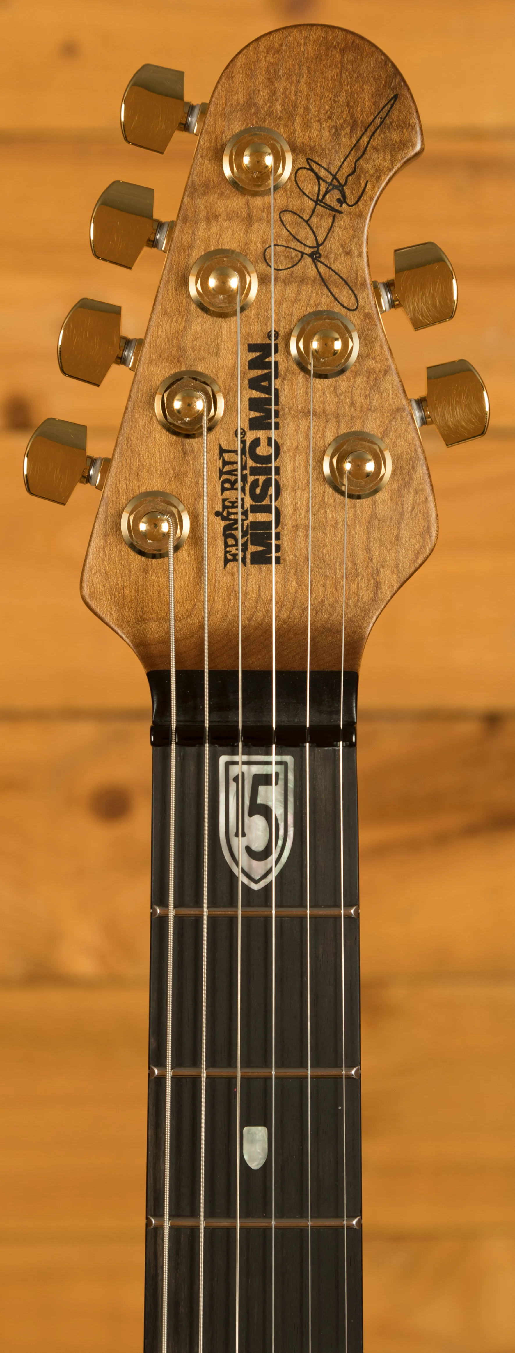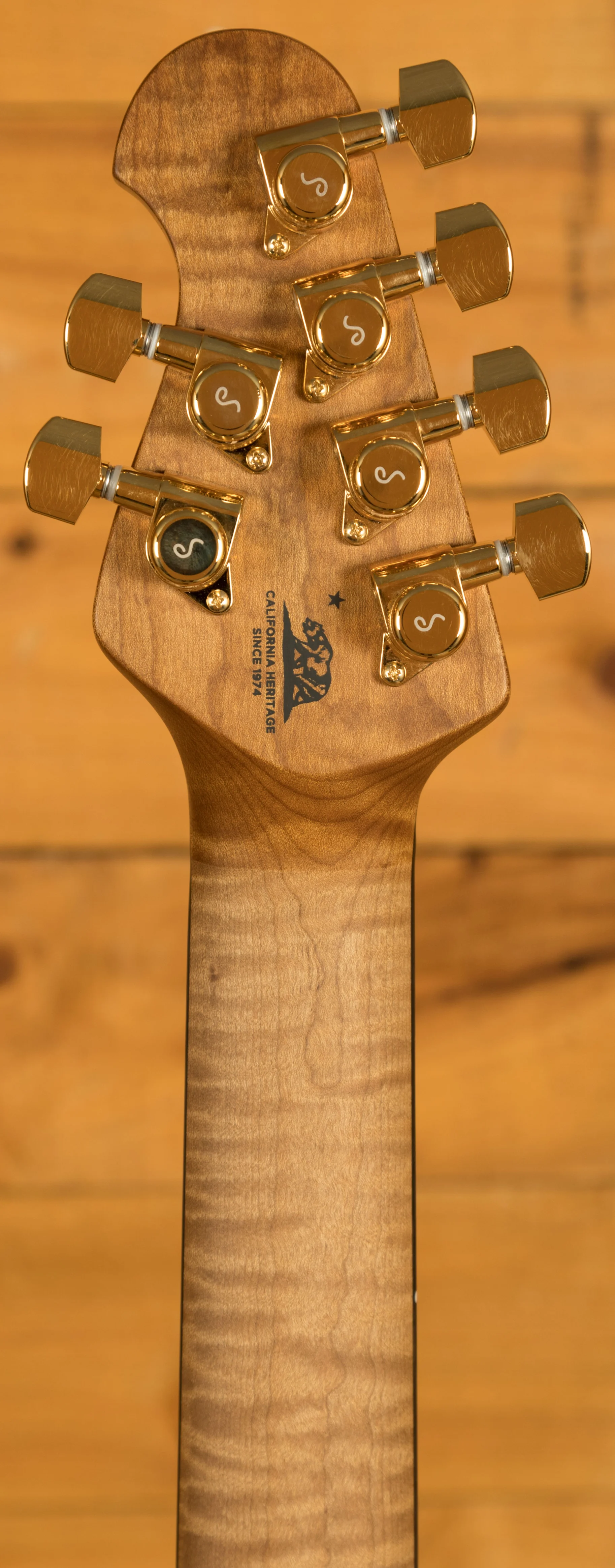 Tuning stability and expressive control come courtesy of a John Petrucci Music Man Piezo floating tremolo, featuring Fishman Powerbridge piezo saddles for pristine acoustic simulation and pitch control. Paired with Schaller M6-IND locking tuners and finished with gold hardware, the Solar Flare is as refined in function as it is in appearance.