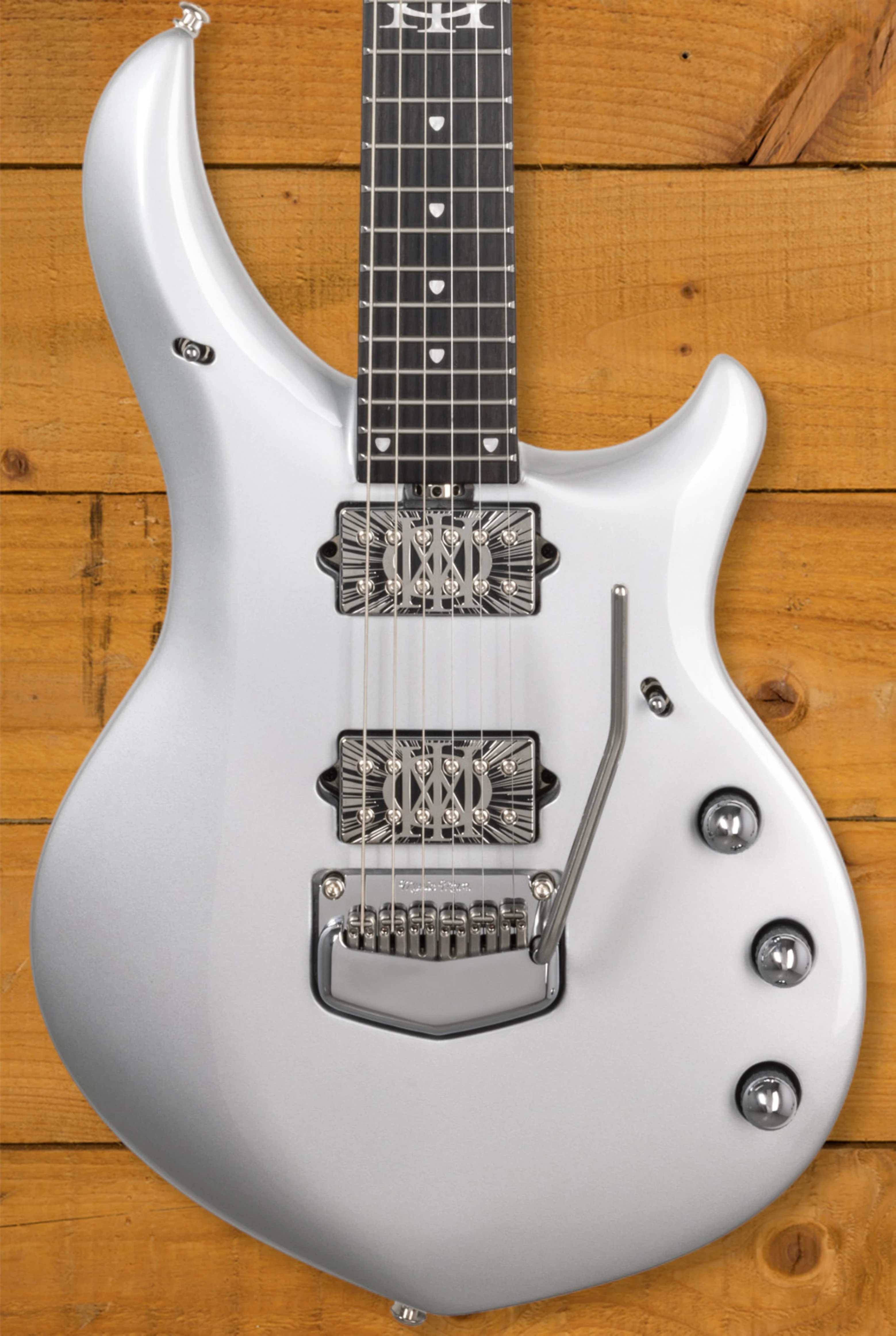 Clad in a stunning Silver Chalice finish, this guitar is a visual feast. The custom-covered DiMarzio Rainmaker and Dream Catcher humbuckers deliver a sonic palette that is both powerful and versatile, capturing the essence of Petrucci's signature tone. The Honduran mahogany neck-through design, alder wings, and maple top provide exceptional resonance and sustain. The ebony fretboard, adorned with 24 stainless steel frets and a custom JP inlay on the first fret, offers unparalleled playability and precision.