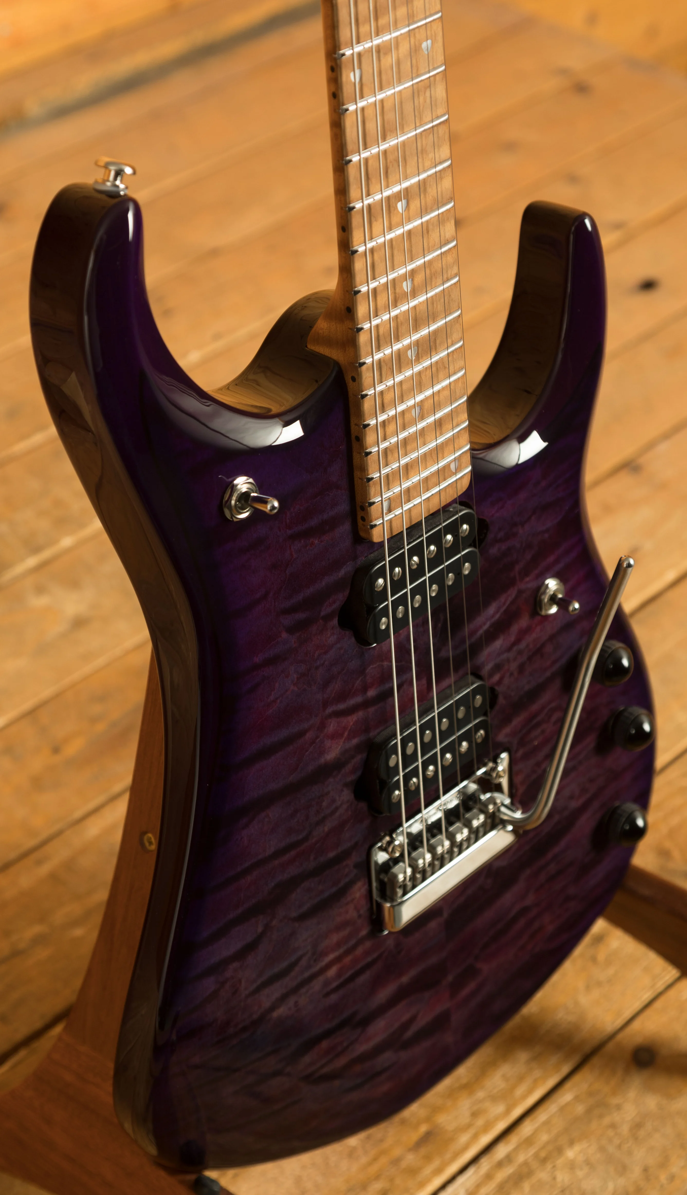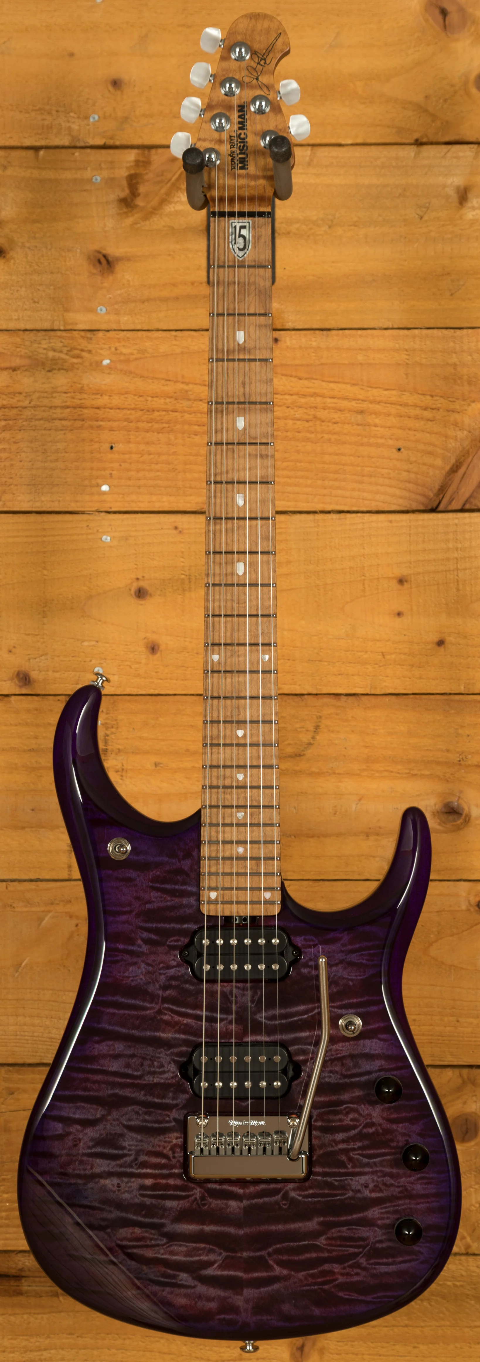 The Music Man JP15 is a gem in the line-up of incredible JP signature models. The JP15 benefits from a strong and punchy Okoume body with a Quilt Maple Top finished in a stunning Purple Nebula gloss. It is beautifully weighted and super well balanced. The ergonomic design is a real treat to play.