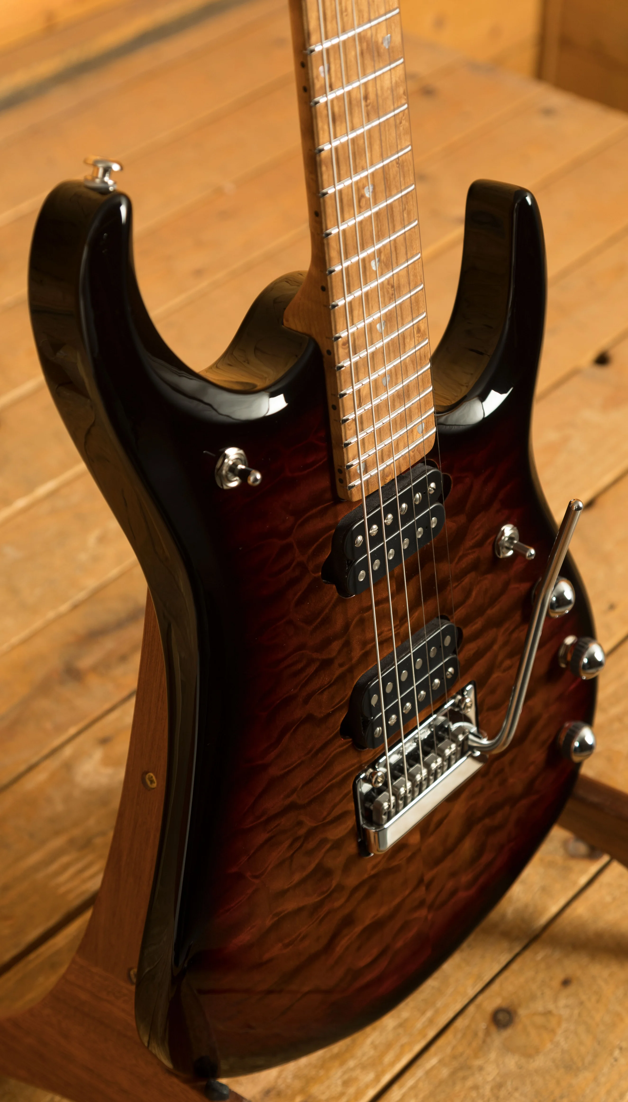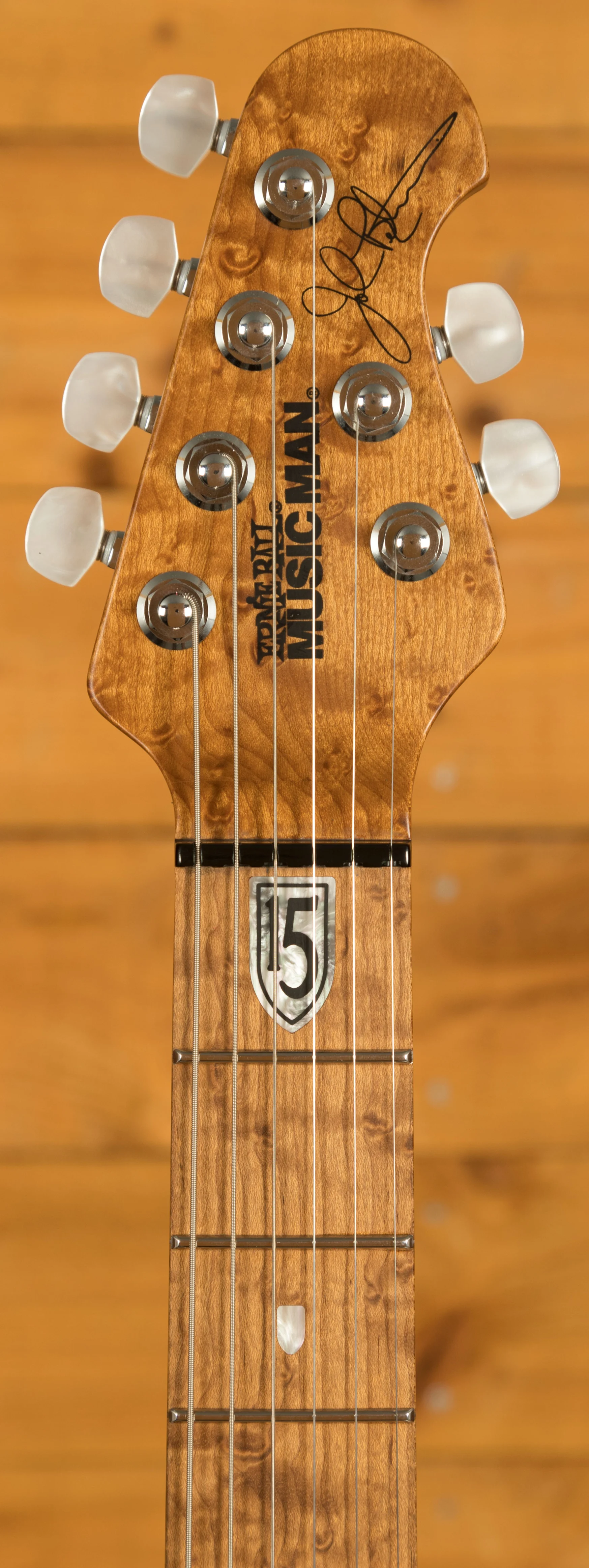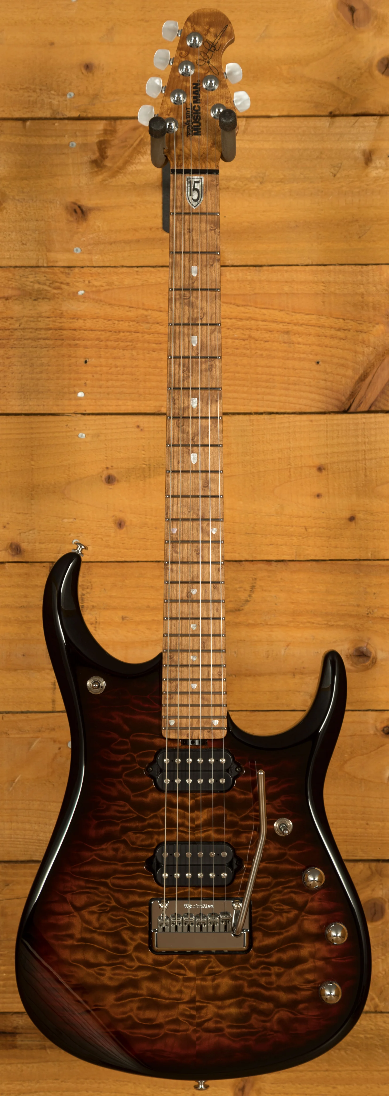 The Music Man JP15 is a gem in the line-up of incredible JP signature models. The JP15 benefits from a strong and punchy Okoume body with a Roasted Quilt Maple Top finished in a stunning Tiger Eye gloss. It is beautifully weighted and super well balanced. The ergonomic design is a real treat to play.