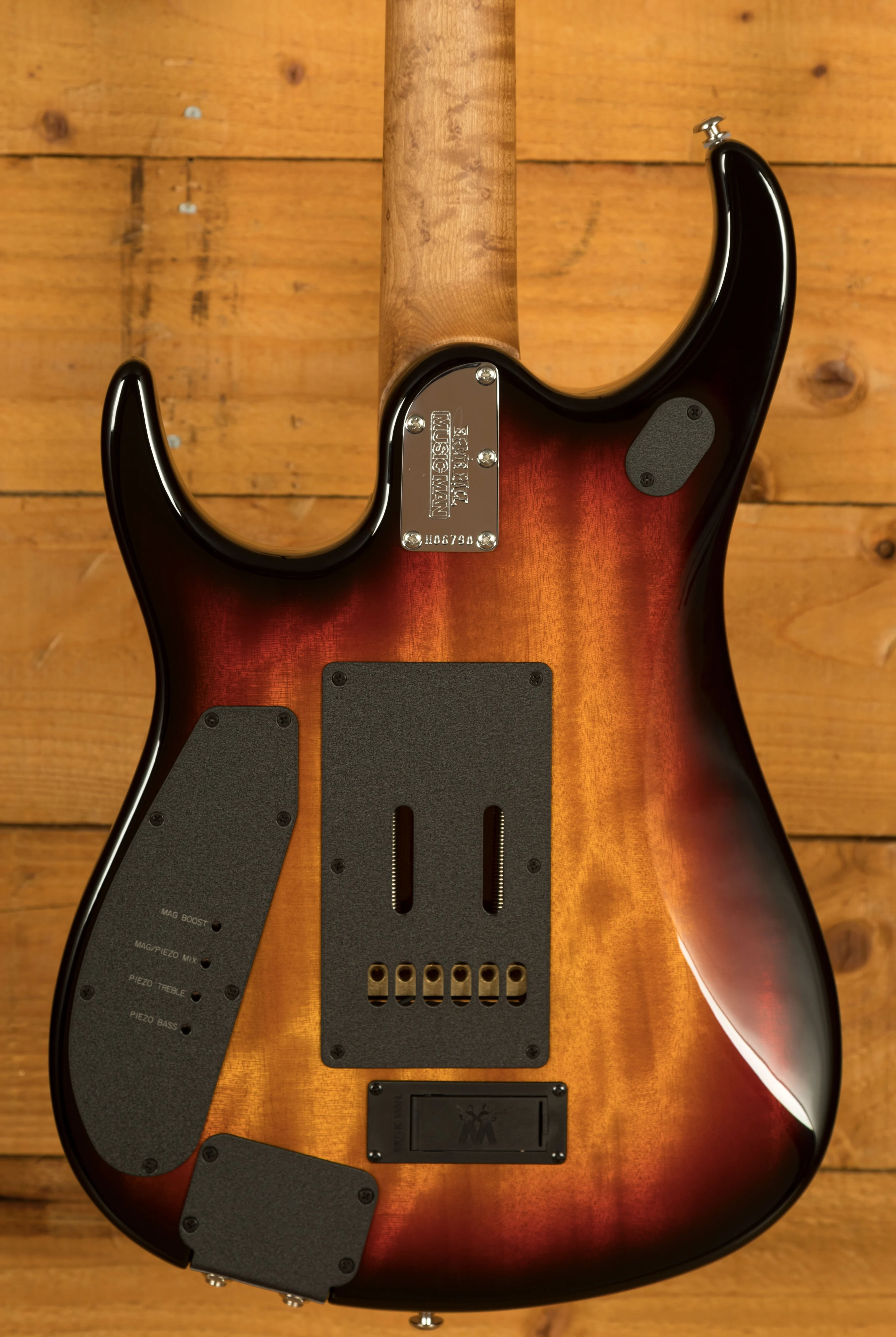 A band like Dream Theater is full of complex, intricate and varied guitar styles. Because of this, John requires a pickup load out that is up to the challenge. A pair of DiMarzio Illuminators provide all the crushing tones you can possibly imagine, and thanks to the inclusion of the Piezo pickup you have that classic Pull Me Under tone right at your fingertips. Not to mention the Custom Music Man active preamp with push/push volume control for a +20dB gain boost.