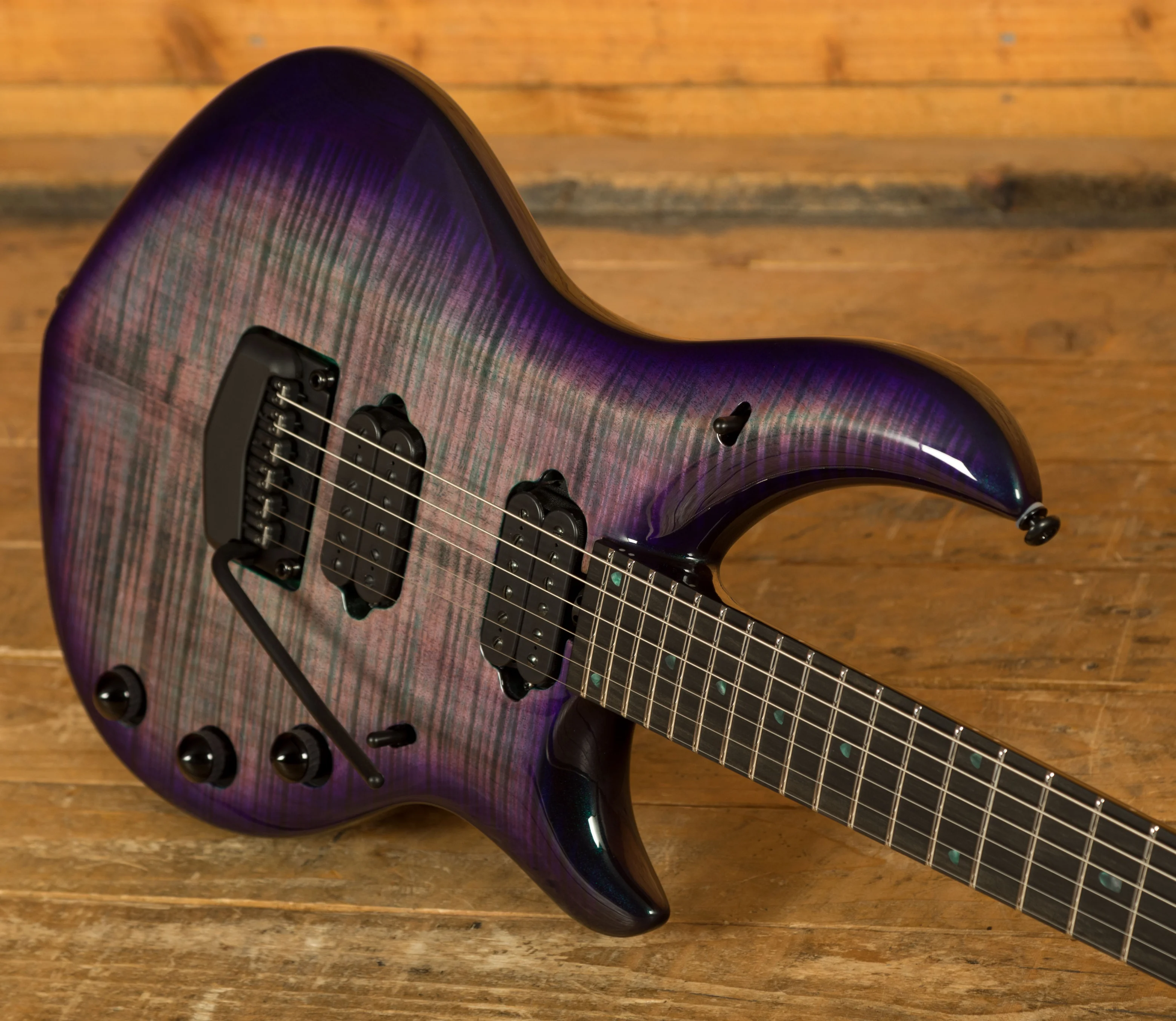 Introducing the remarkable Ernie Ball Music Man JP Majesty Maple Top, a true masterpiece of guitar craftsmanship. This stunning model is designed in collaboration with the legendary guitarist John Petrucci, delivering unmatched performance and versatility for guitarists pushing the boundaries of their music. The body of the JP Majesty is meticulously crafted from Alder with a Flamed Maple top, ensuring a perfect balance of tone and resonance. The Mahogany and Flame Maple through-neck construction further enhances sustain and stability, allowing you to explore new sonic territories with ease.
