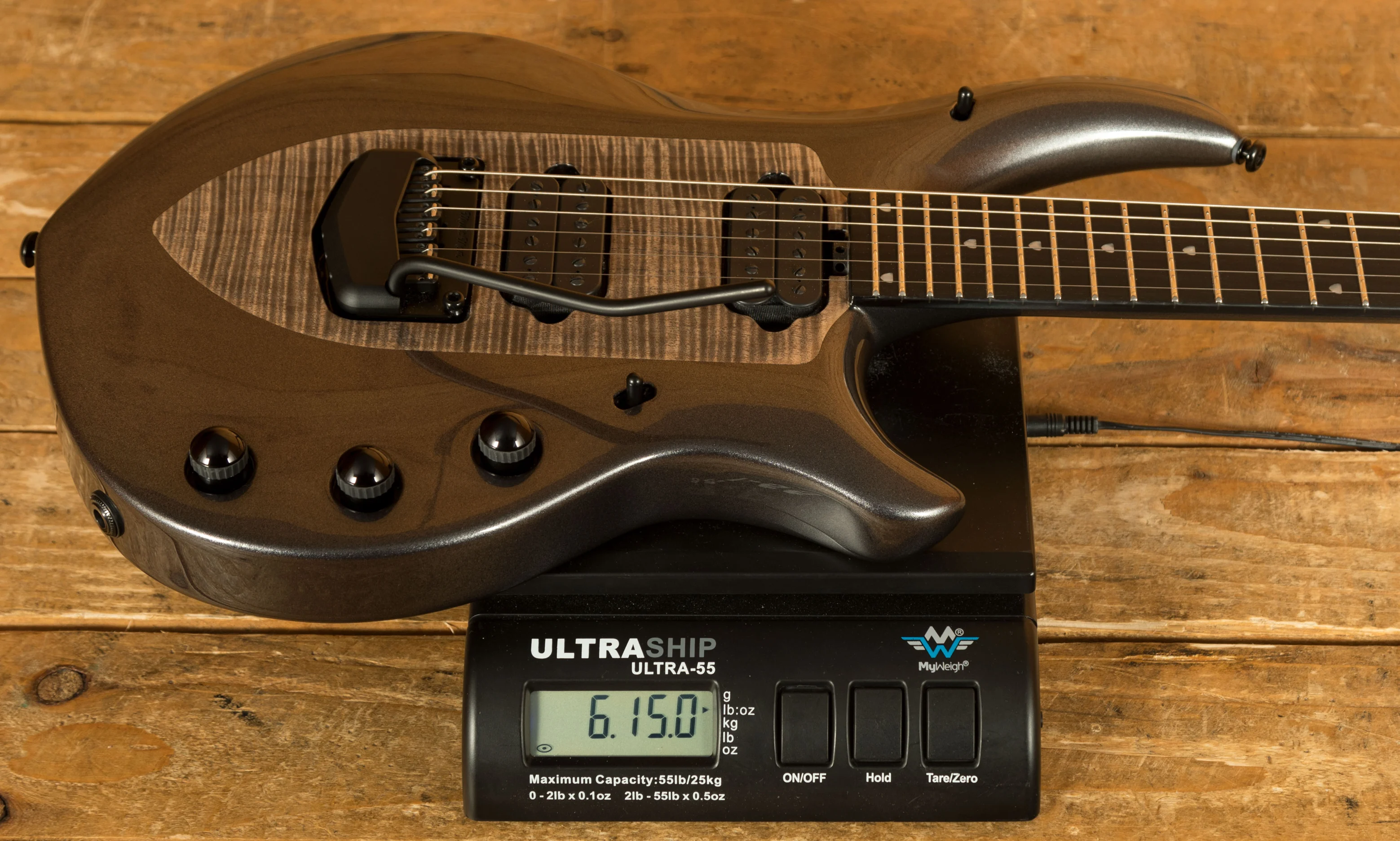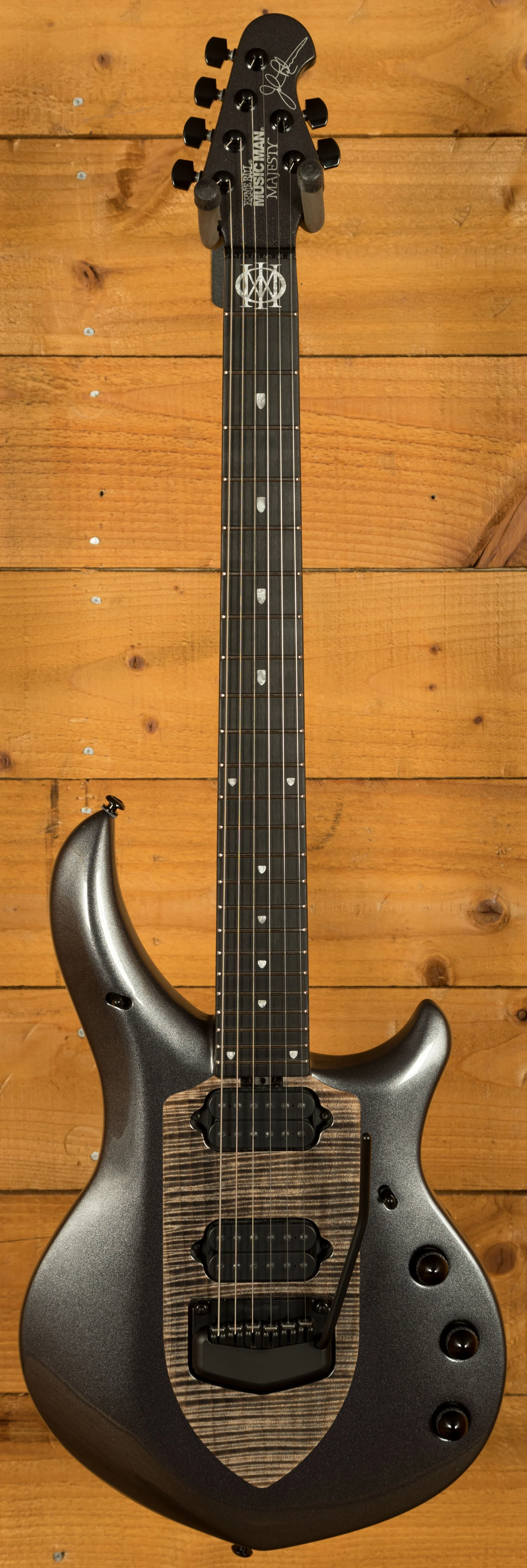 The Music Man Majesty is the latest in a succession of the incredible signature models. The Majesty benefits from a strong and punchy Okoume body with a Maple Top finished in Smoked Pearl, it really accentuates the curves and figure of the body. It is beautifully weighted and super well balanced. The ergonomic design is a real treat to play.