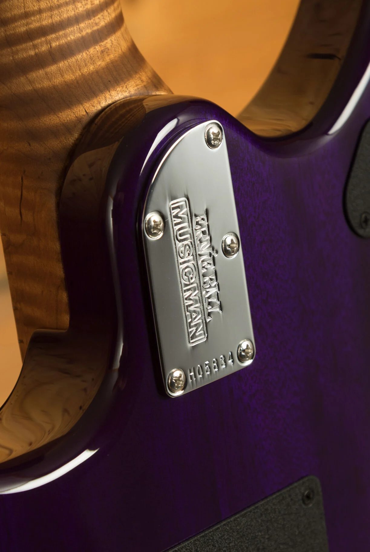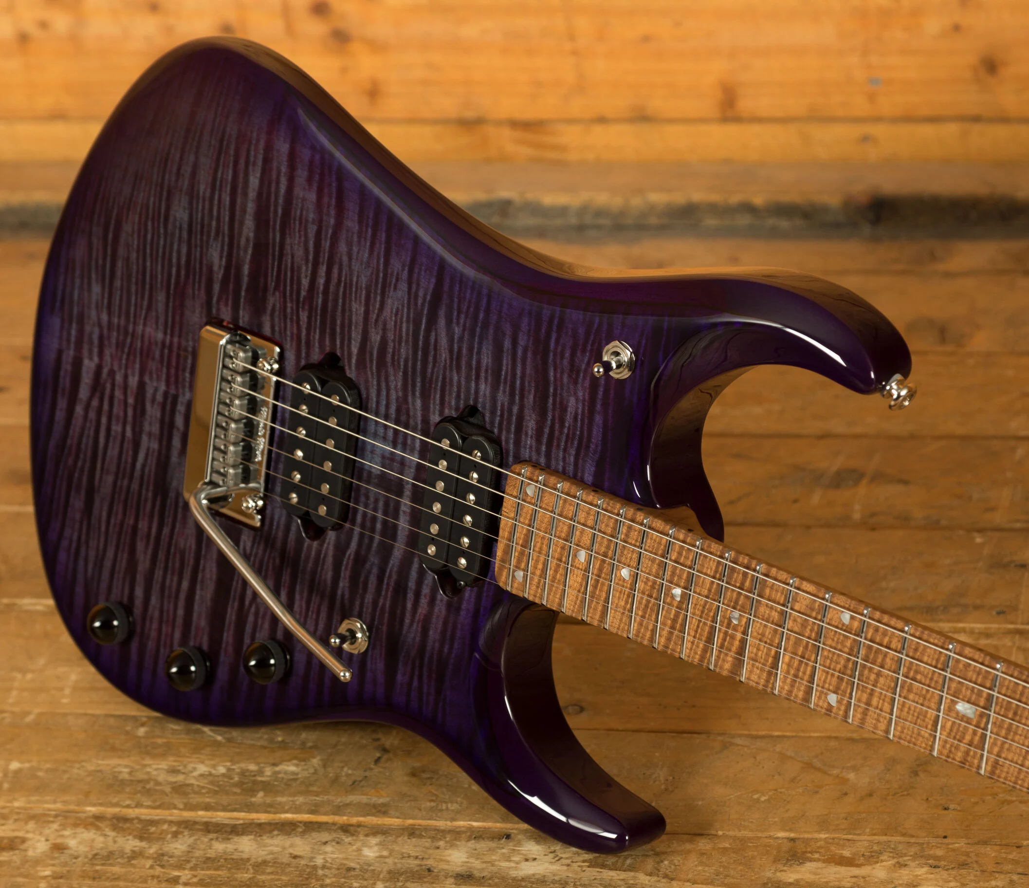 The Music Man JP15 is a gem in the line-up of incredible JP signature models. The JP15 benefits from a strong and punchy Okoume body with a Flamed Maple Top finished in a stunning Purple Nebula gloss. It is beautifully weighted and super well balanced. The ergonomic design is a real treat to play.