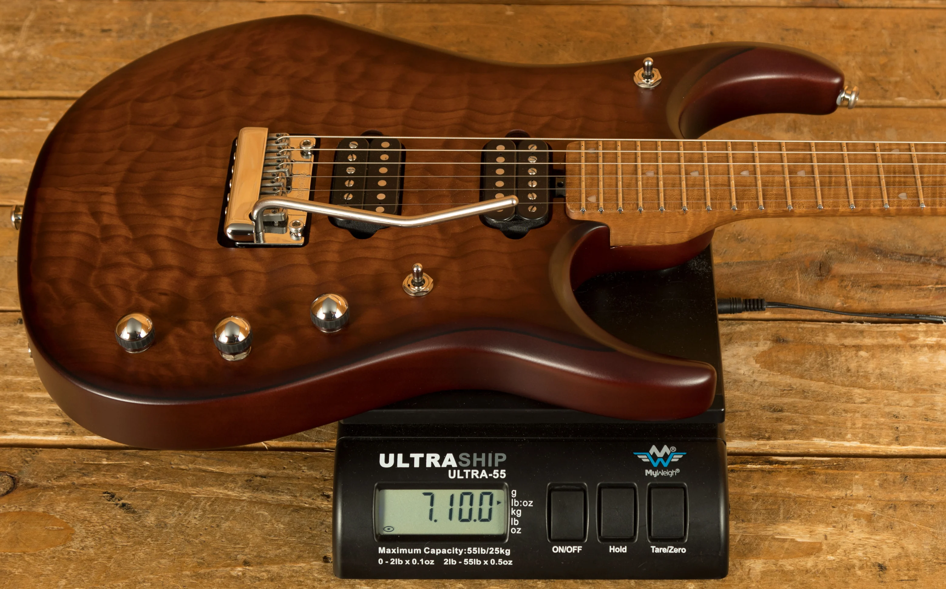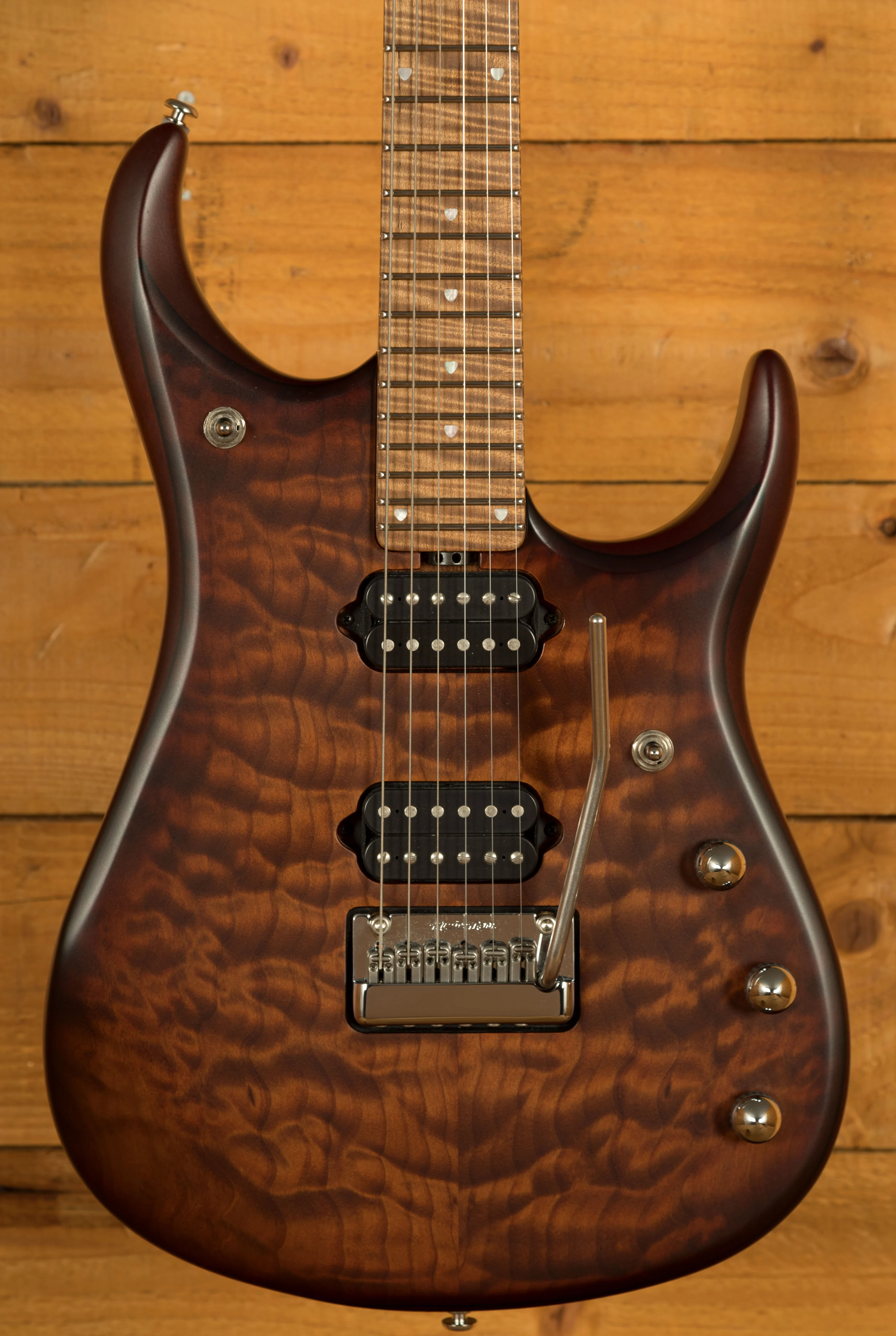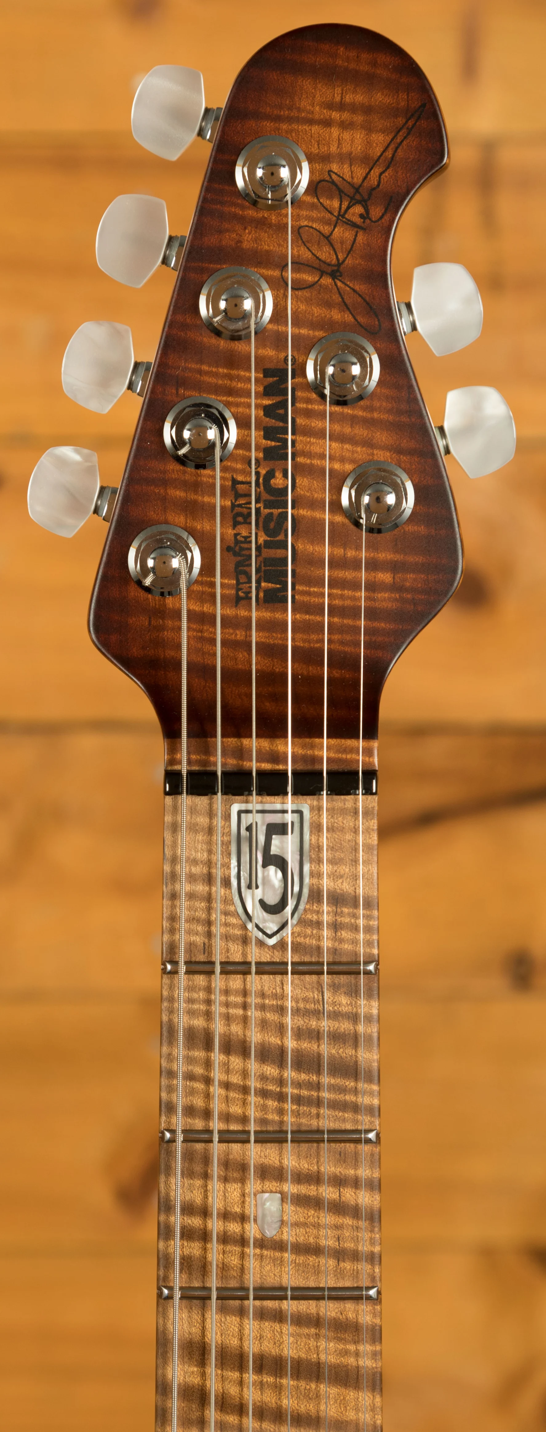 The Music Man JP15 is a gem in the line-up of incredible JP signature models. The JP15 benefits from a strong and punchy Okoume body with a Roasted Quilt Maple Top finished in a stunning Sahara Burst matte. It is beautifully weighted and super well balanced. The ergonomic design is a real treat to play.